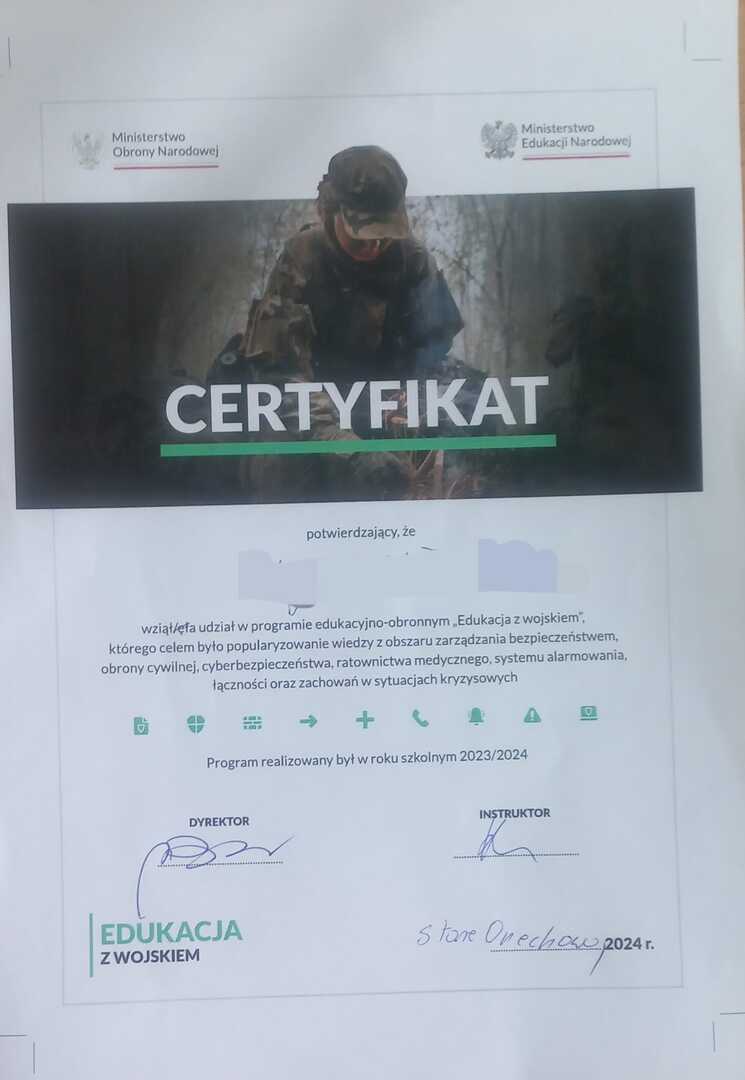 Dziś klasy 5- 8 wzięły udział w programie edukacyjno - obronnym "Edukacja z wojskiem". Nasi uczniowie dzięki zajęciom poszerzyli swoją wiedzę z obszaru zarządzania bezpieczeństwem, obrony cywilnej, cyberbezpieczeństwa, ratownictwa medycznego, systemu alarmowania, łączności oraz zachowań w sytuacjach kryzysowych. Przypomnieli sobie również zasady udzielania pierwszej pomocy oraz postępowania w razie ewakuacji.