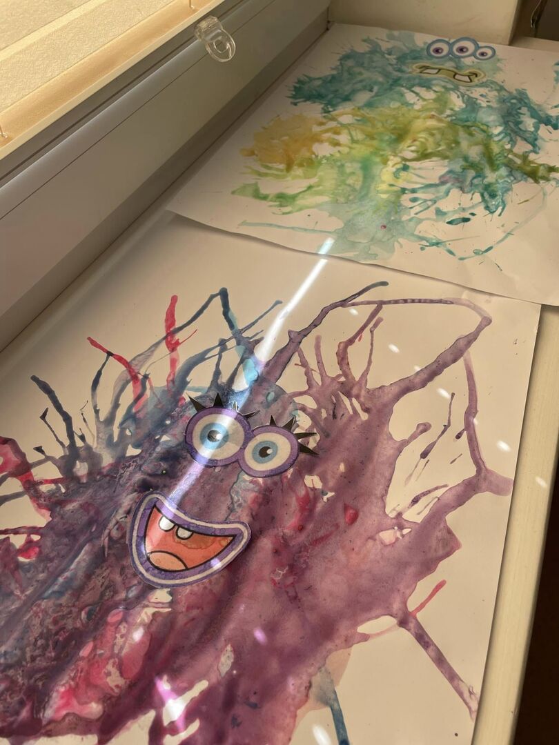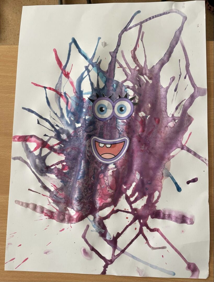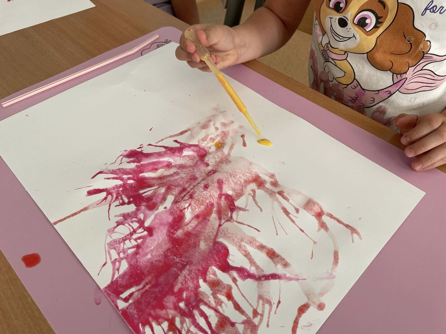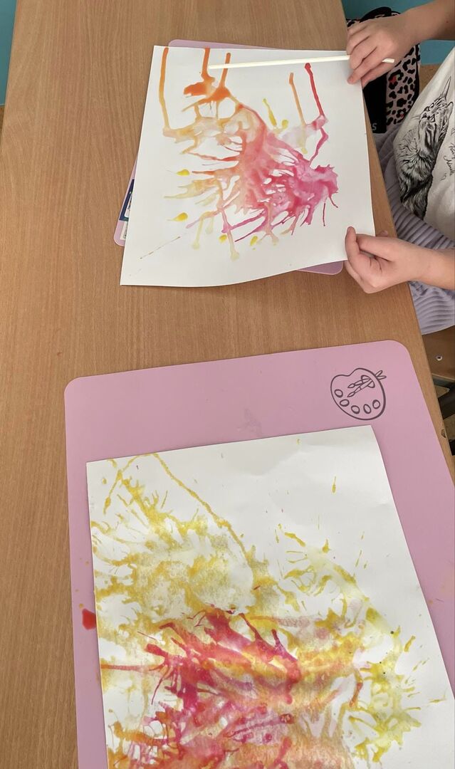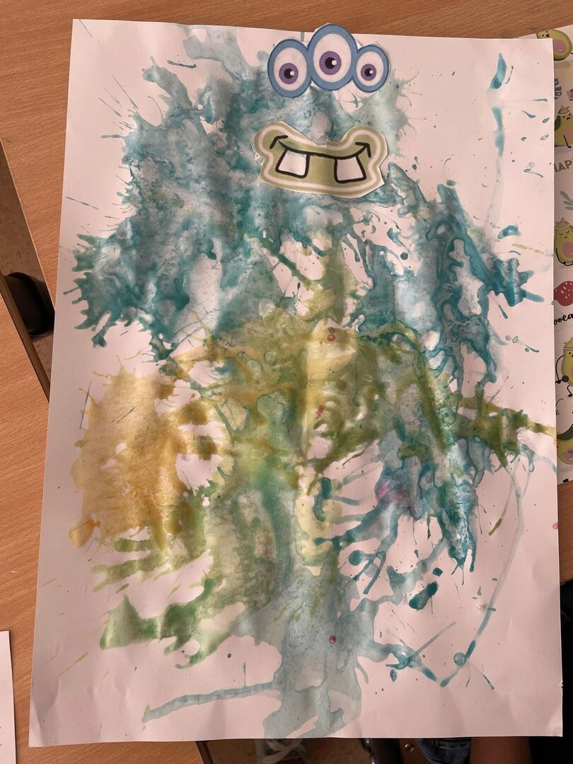 Zainteresowania wypływają pięknymi barwami- pozbywamy się strachu, strach może być kolorowy i niegroźny 😀 Właśnie tak rozwijamy kreatywność na poniedziałkowych zajęciach ☺️