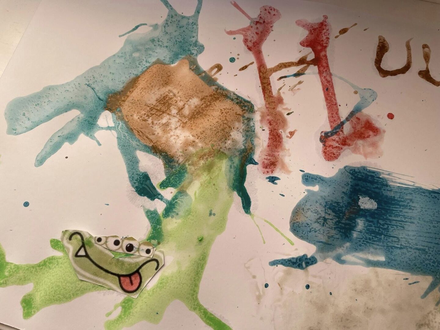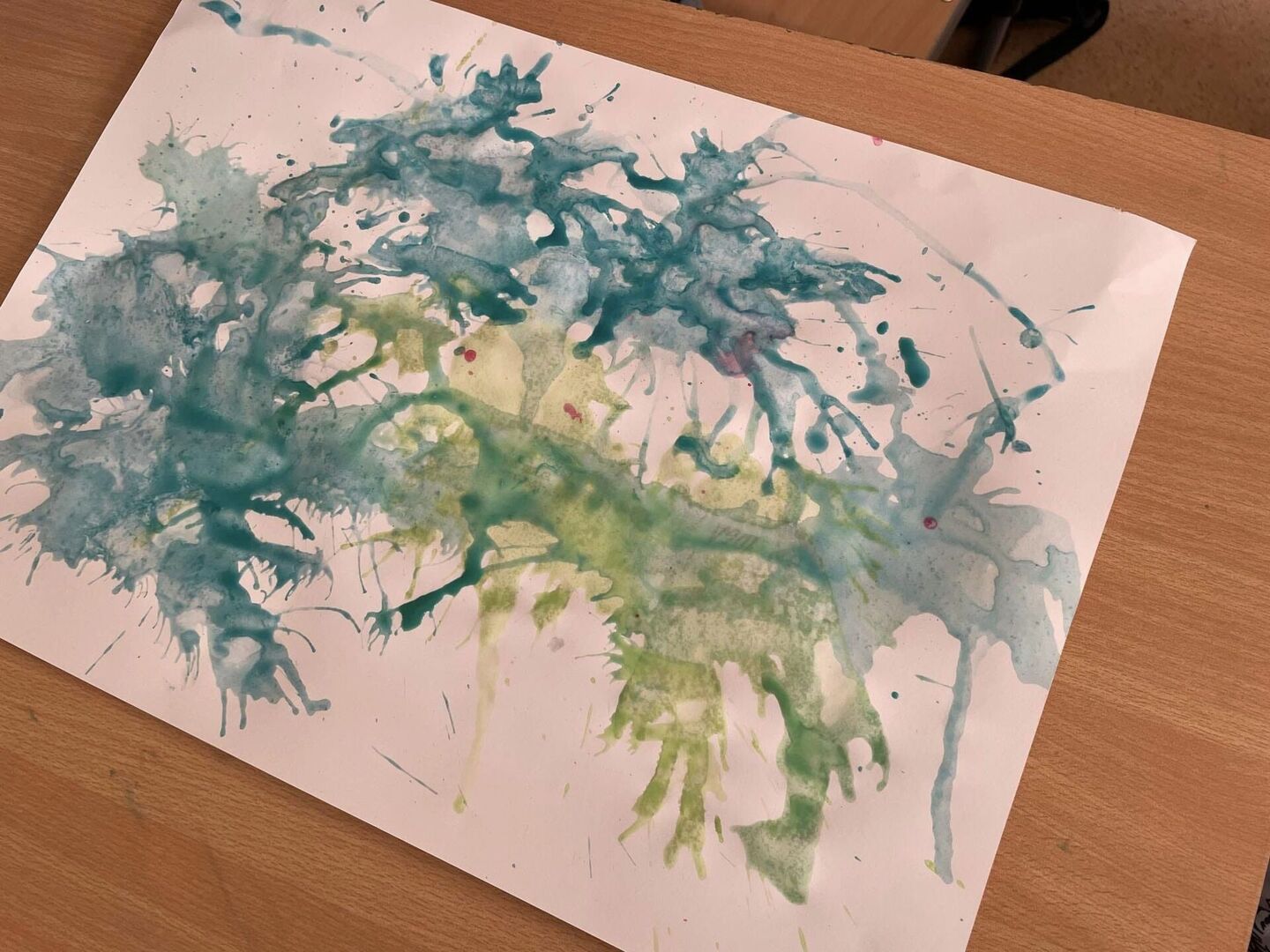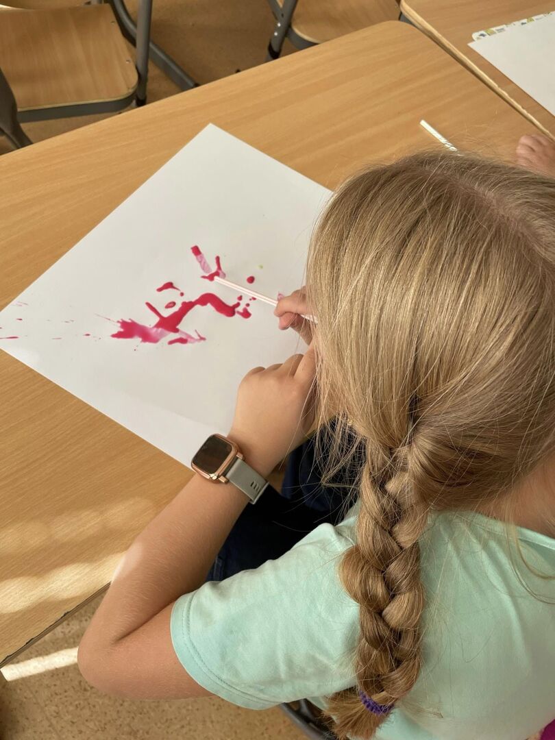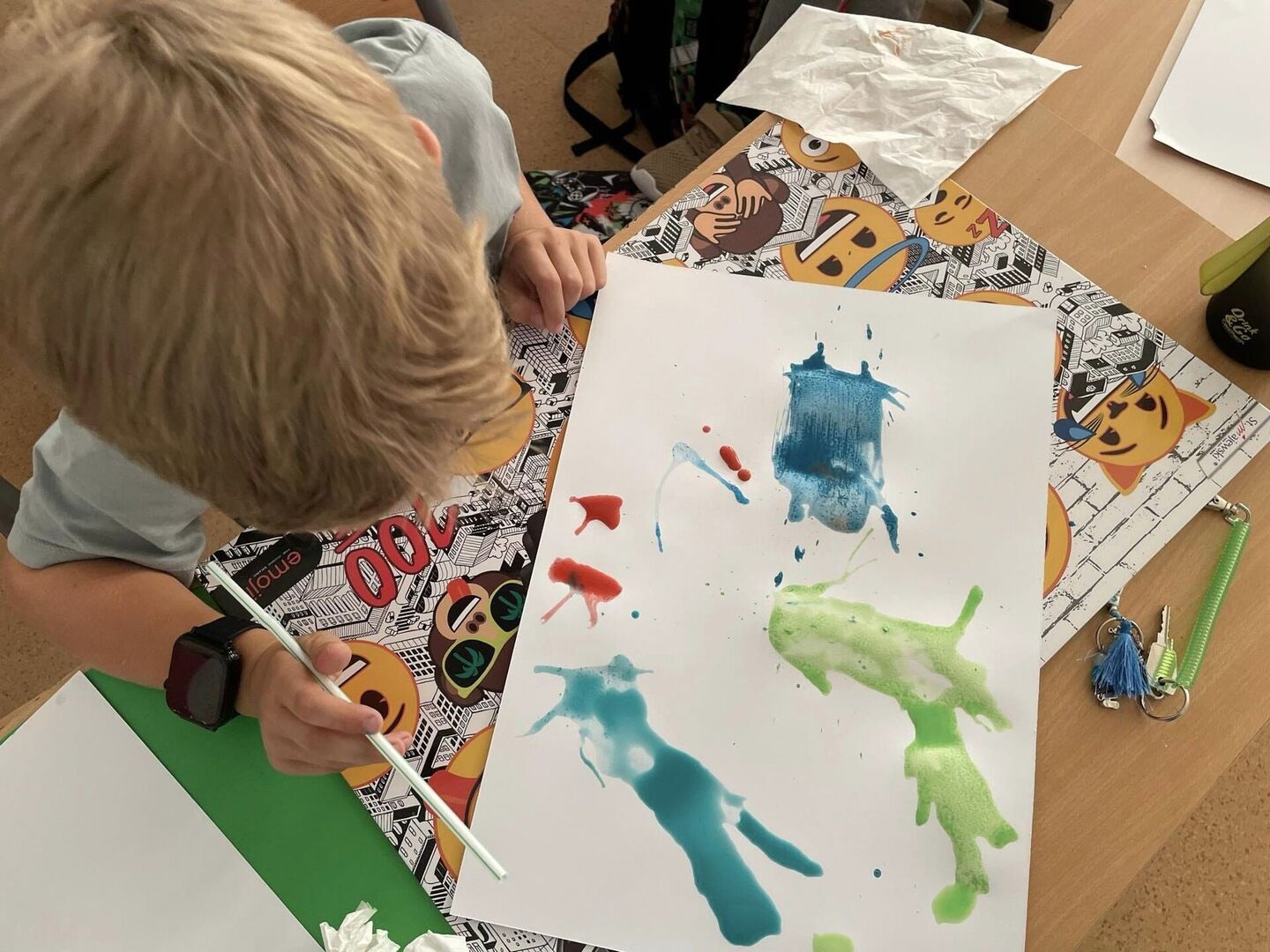 Zainteresowania wypływają pięknymi barwami- pozbywamy się strachu, strach może być kolorowy i niegroźny 😀 Właśnie tak rozwijamy kreatywność na poniedziałkowych zajęciach ☺️