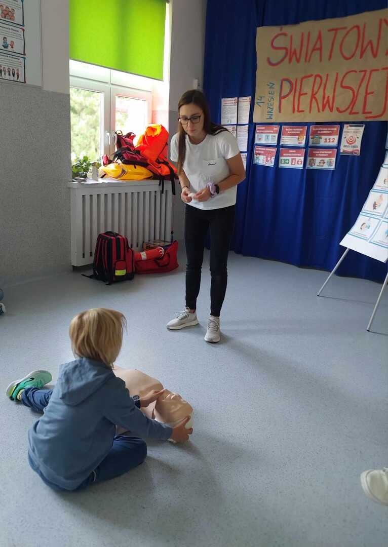 Klasy I-III dochodziły dziś Światowy Dzień Pierwszej Pomocy. Jest to coroczne święto przypadające na drugą sobotę września. Uczniowie rozpoczęli tydzień od warsztatów, które miały na celu promowanie zasad pierwszej pomocy. Warsztaty te będą miały charakter cykliczny, aby w ciągu całego roku przypominać uczniom o tym, jak ważna jest umiejętność odpowiedniego reagowania w sytuacji, gdy ktoś potrzebuje pomocy.