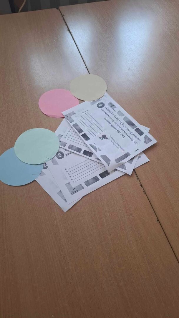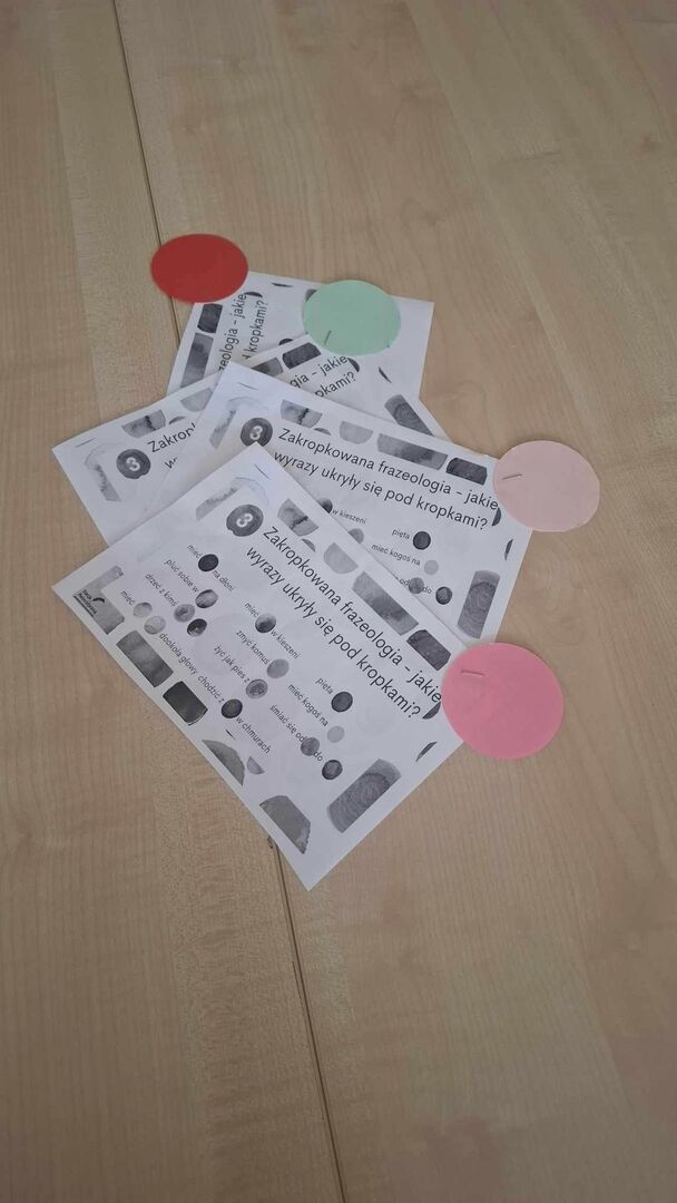 Dzień Kropki na języku polskim. Na szóstoklasistów czekały ciekawe stacje zadaniowe z kropkami w roli głównej. Kropka stała się bohaterką: związków frazeologicznych, tematem opowiadania i postaci stworzonych samodzielnie przez uczniów. Było kreatywnie, kolorowo, kulturalnie i twórczo.