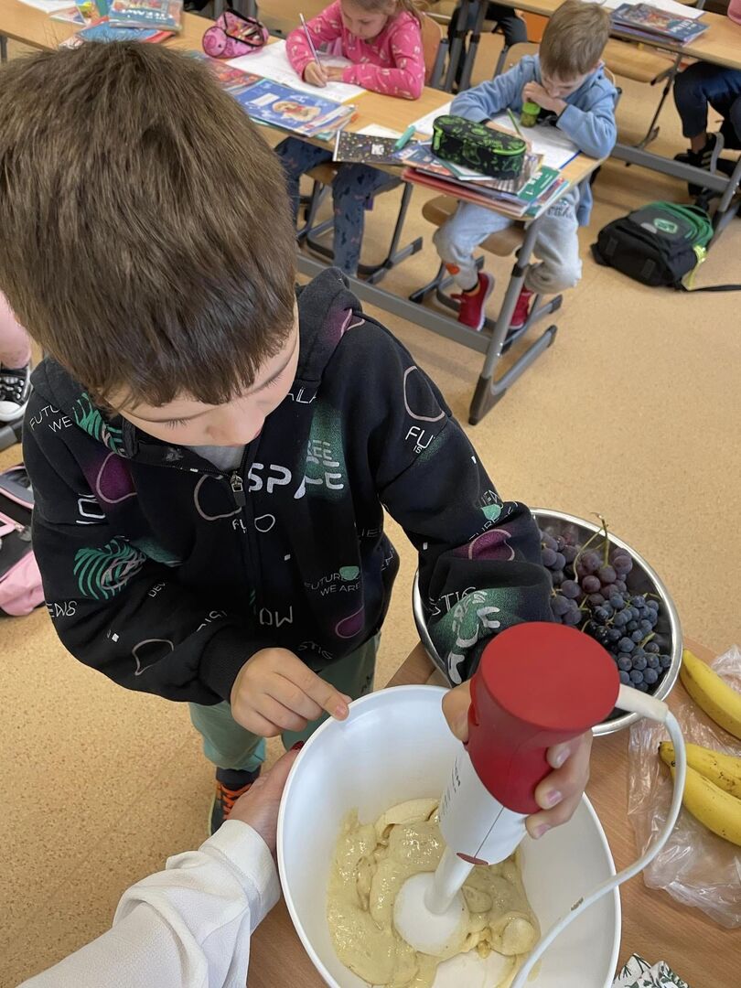 W ramach edukacji zdrowotnej, klasa 1 przygotowała dziś pyszne drugie śniadanko koktajlowe- bezcukrowe 😁