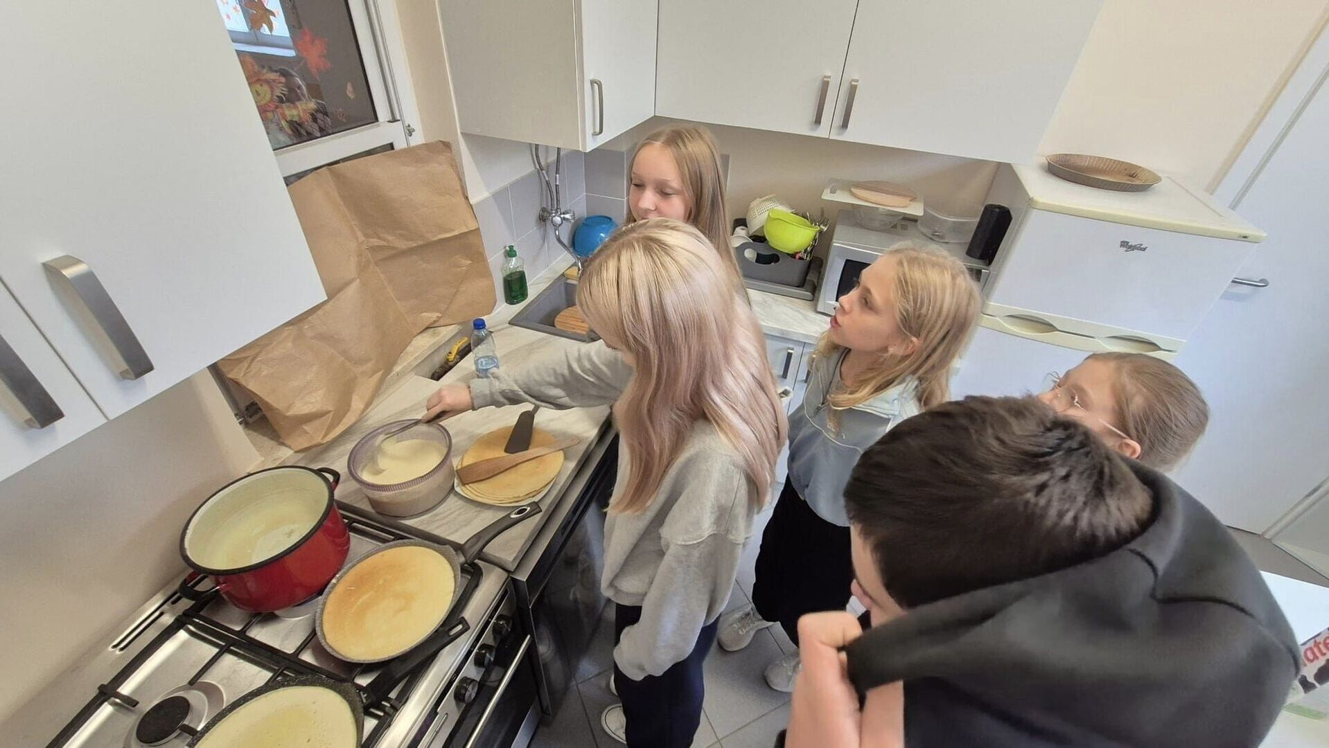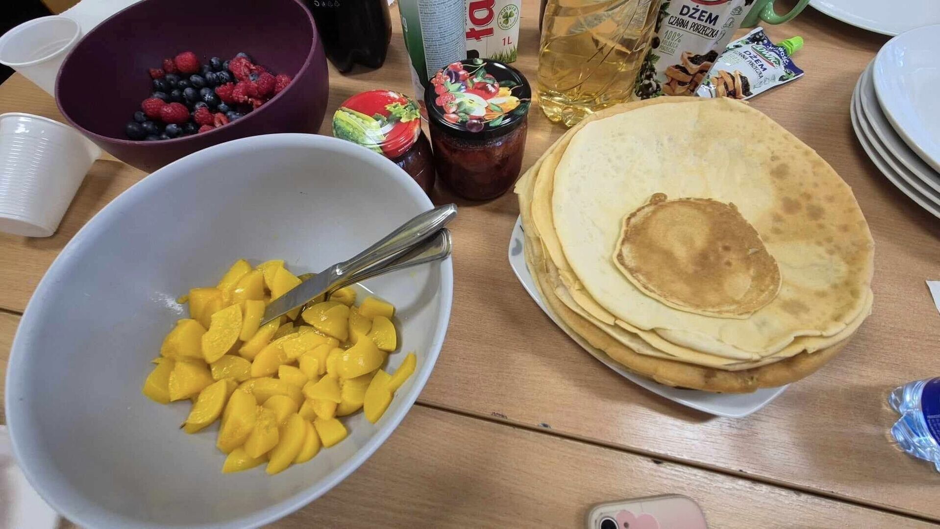 Grupa plastyczna w nagrodę za pięknie wykonane prace na konkurs ogólnopolski realizowała "lekcję na życzenie". Tym razem uczestnicy zajęć wybrali robienie naleśników. Było śmiesznie, smacznie i jak na plastyków przystało naleśniki były śliczne 😄