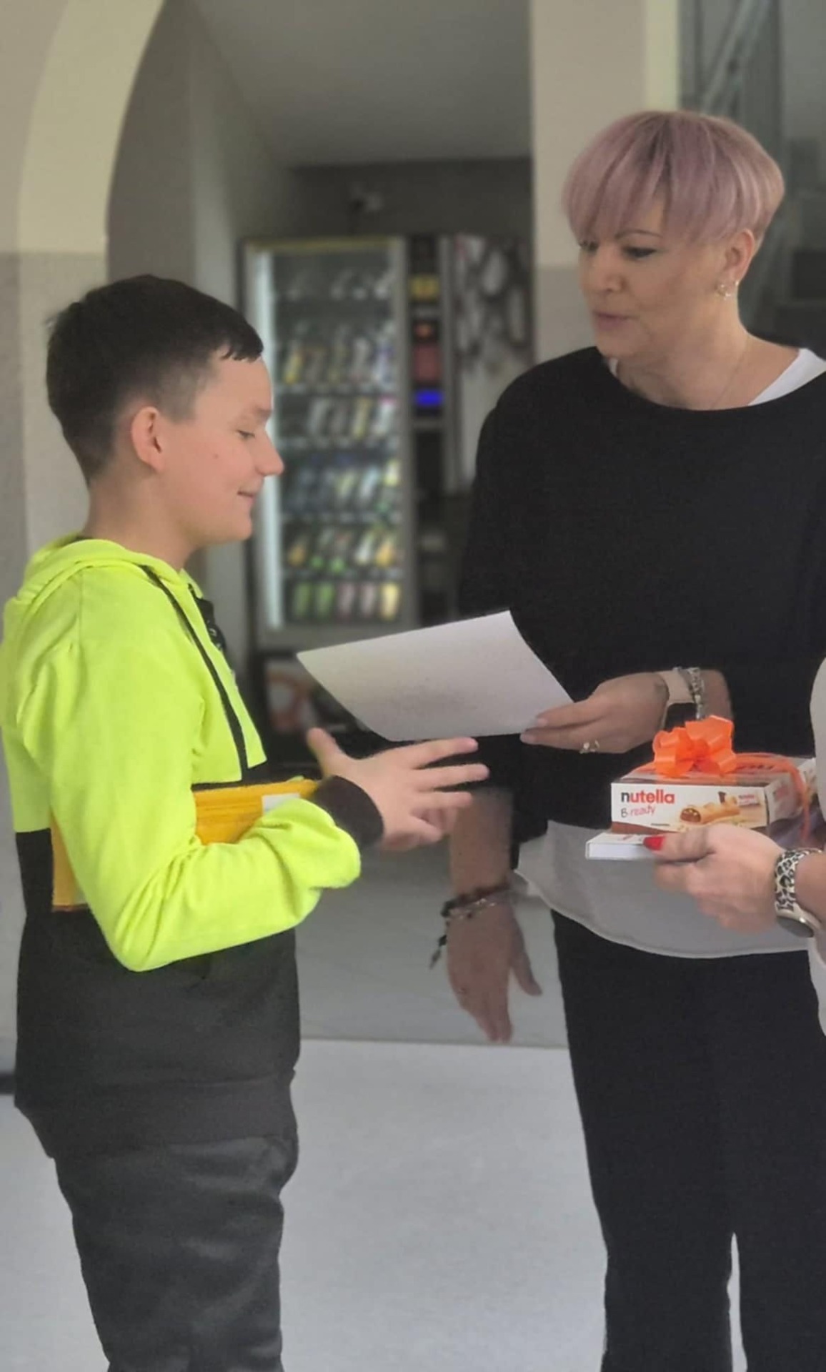 W naszej szkole odbyło się wręczenie nagród za konkurs plastyczny "Lampiony z dyni". Co roku konkurs cieszy się bardzo dużą popularnością a lampiony są coraz piękniejsze. Dzięki Radzie Rodziców mogliśmy nagrodzić wszystkich uczestników konkursu. W każdej kategorii wiekowej zostały przyznane trzy miejsca oraz wyróżnienie. W bardzo uroczystej atmosferze, nagrody i gratulacje złożyła pani dyrektor Marzena Bryjak.