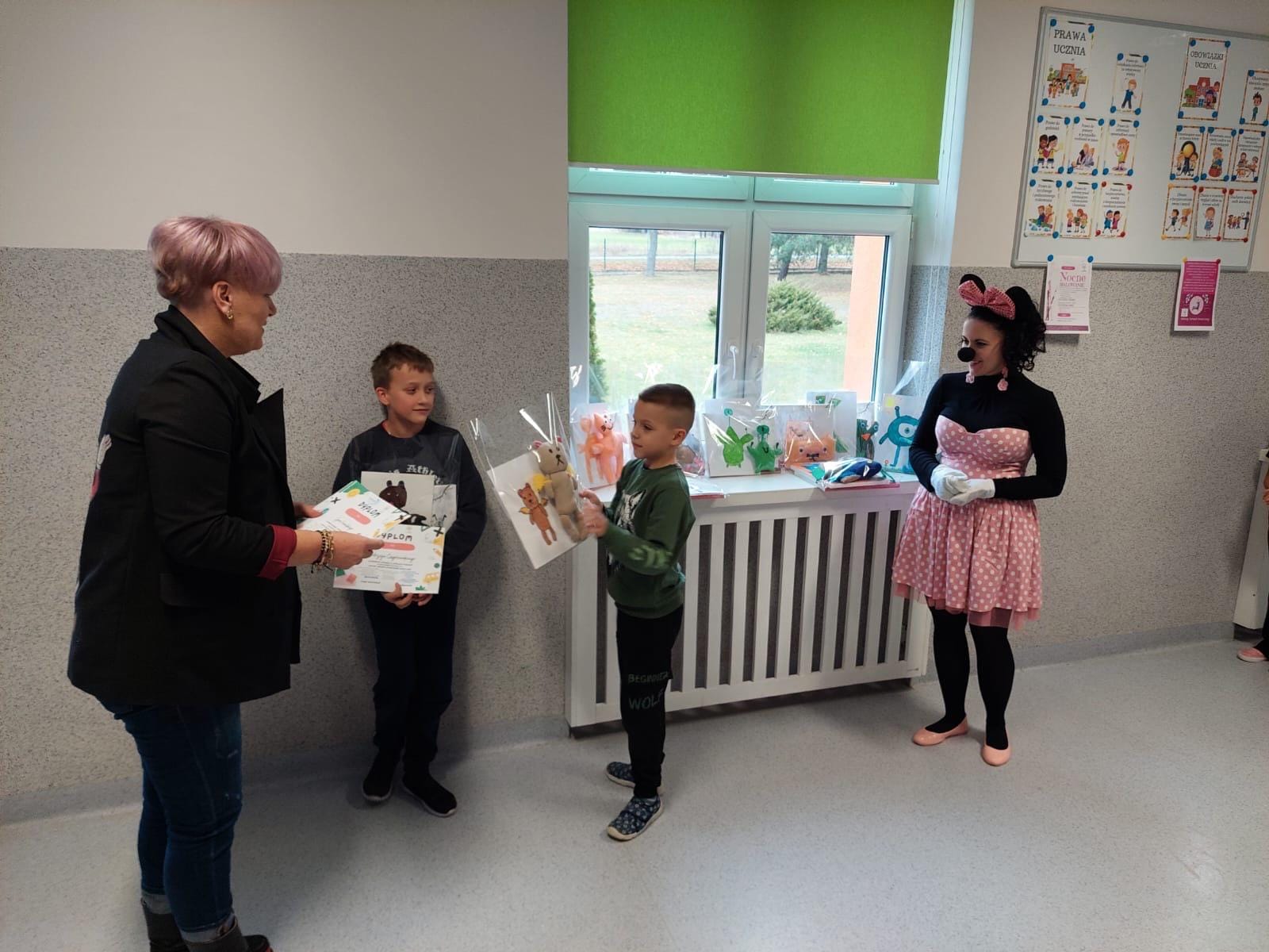 W piątkowe przedpołudnie, w bajkowym nastroju nastąpiło rozstrzygnięcie maskotkowego konkursu. Bajeczne pluszaki z rysunków dzieci (uszyte przez panią Kasię) jak to w bajkach bywa - ożyły! Radość była ogromna, zaskoczenie jeszcze większe!😃 Aby bajek w naszym życiu było jak najwięcej! Bajeczna Myszka Minnie poczęstowała też, wszystkich upieczonymi domowymi ciasteczkami 😋 Wszystkim uczestnikom serdecznie gratulujemy 👏 Konkurs był przeprowadzany w klasach 1-3 na terenie naszej szkoły. Wpłynęło 28 prac, 10 z nich wygrało! Zwycięzcy otrzymali uszyte maskotki z projektu własnego rysunku. Jeszcze raz wielkie brawa dla wygranych i dla wszystkich pozostałych uczestników w podziękowaniu za zaangażowanie 👏 Gratulujemy 😊