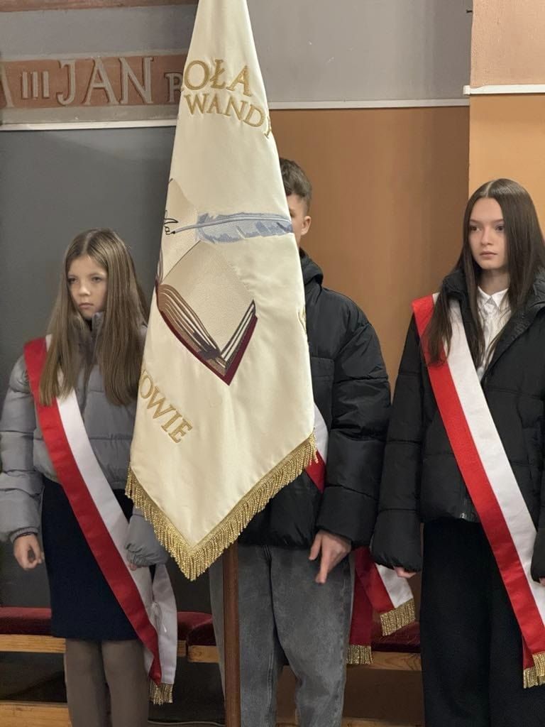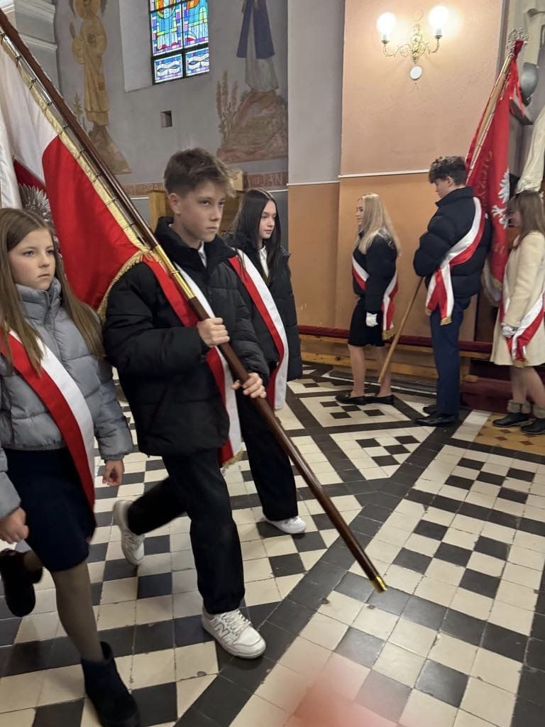 Rezprezentacja naszej szkoły w obchodach Narodowego Święta Niepodległości w kościele parafialnym w Pomiechowie. Dziękujemy uczniom za godne reprezentowanie oraz p. Rucińskiemu za opiekę nad pocztem.