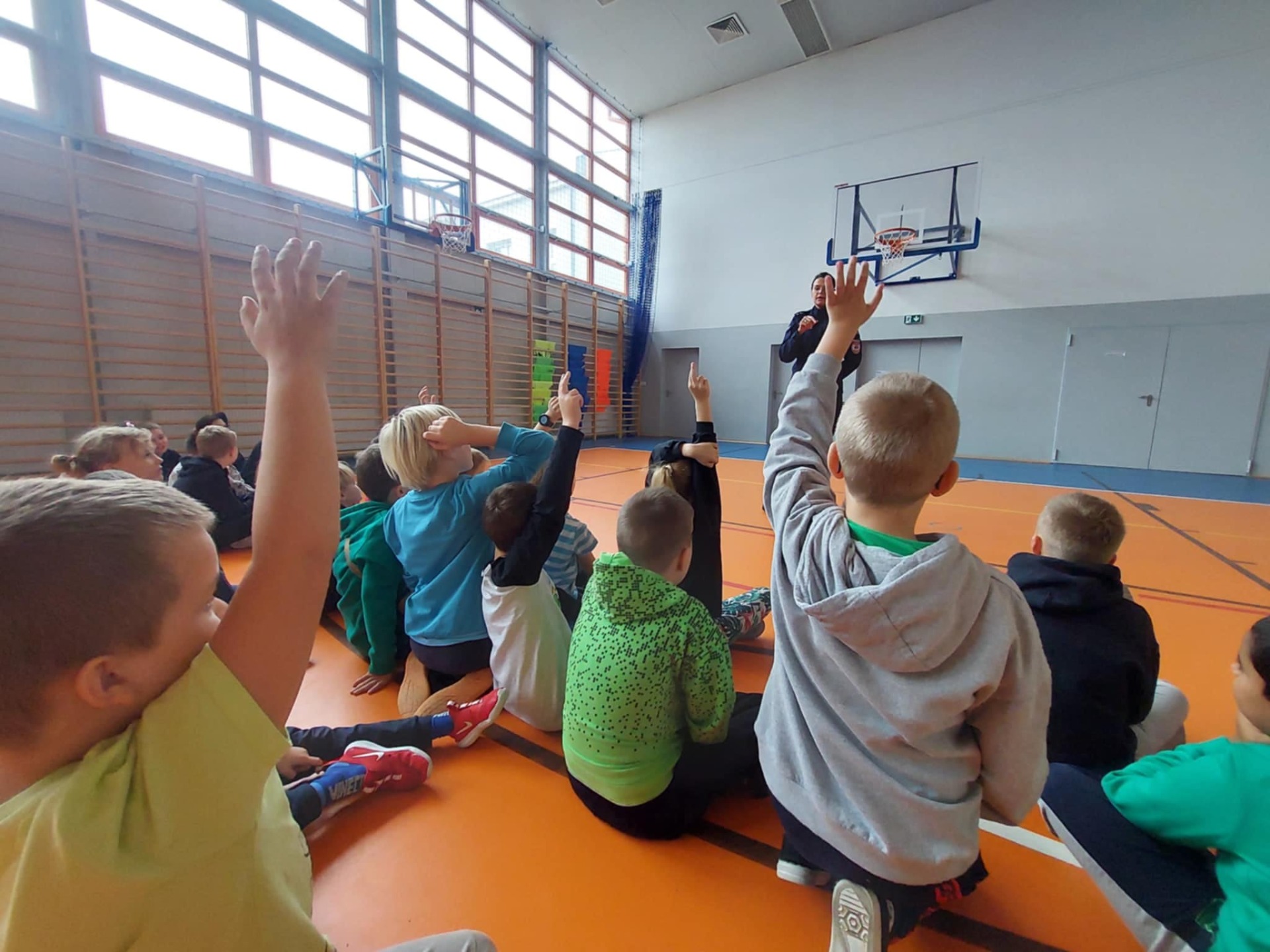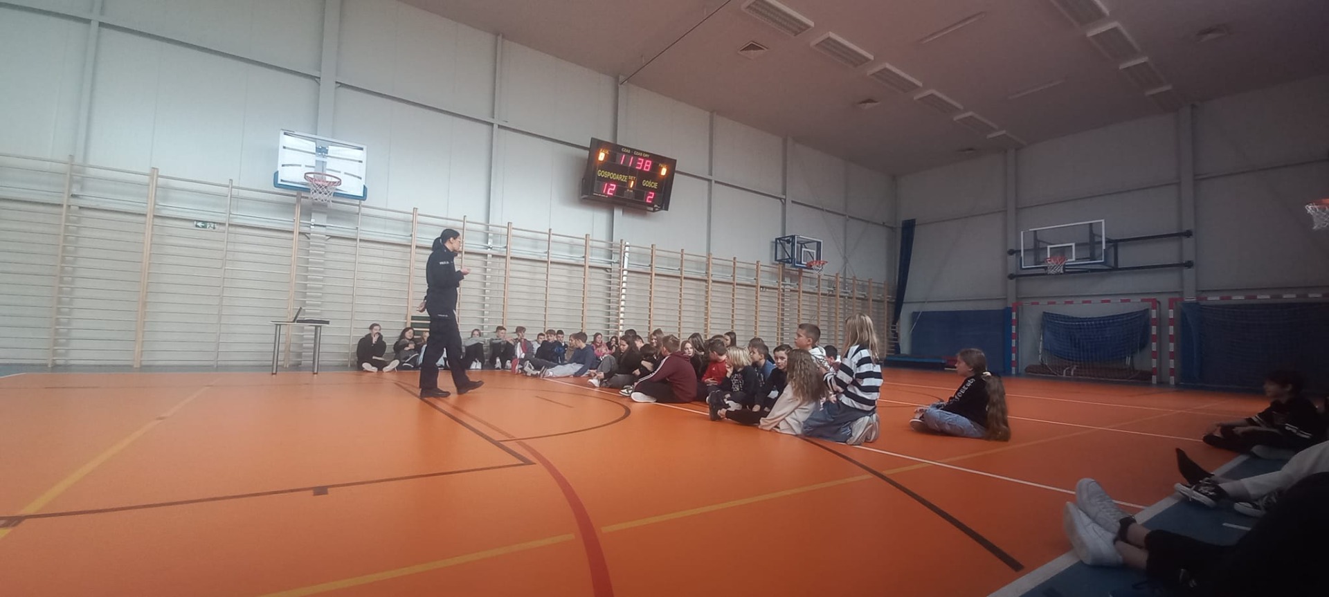 Odbyło się ono w dwóch grupach , uczniowie klas : 2,3,4 i klasy: 5,6,7,8. Zjawisko cyberprzemocy zostało omówione przez osobę prowadzącą obszernie i wnikliwie. Uczniowie zostali poinformowani o konsekwencjach czynów karalnych w obszarze cyberprzemocy adekwatnie do ich wieku. Ich udział był aktywny , zadawali ważne dla siebie pytania, szczególnie w grupie młodszej.