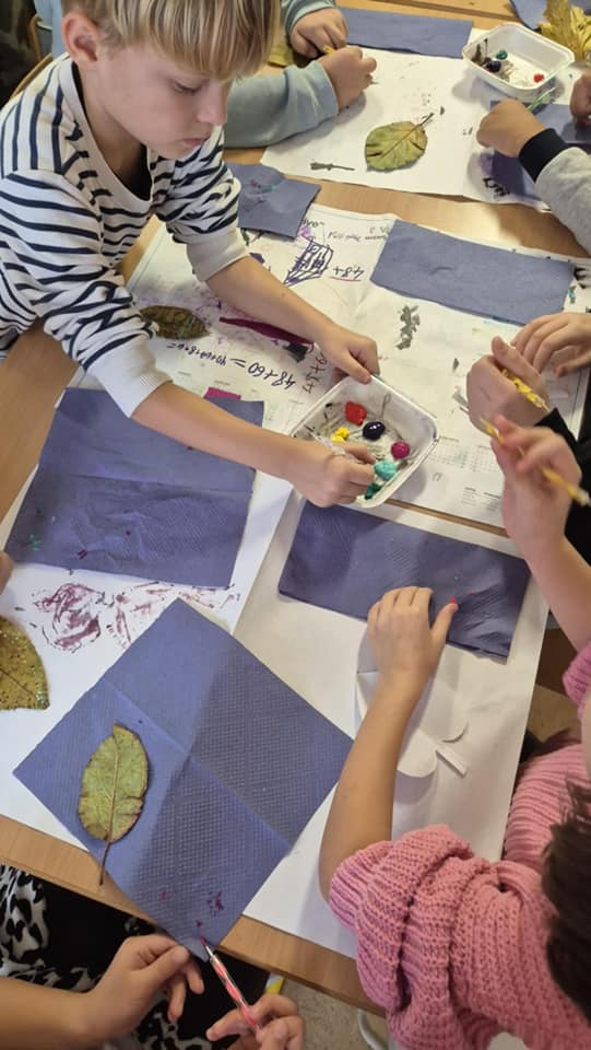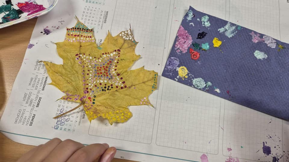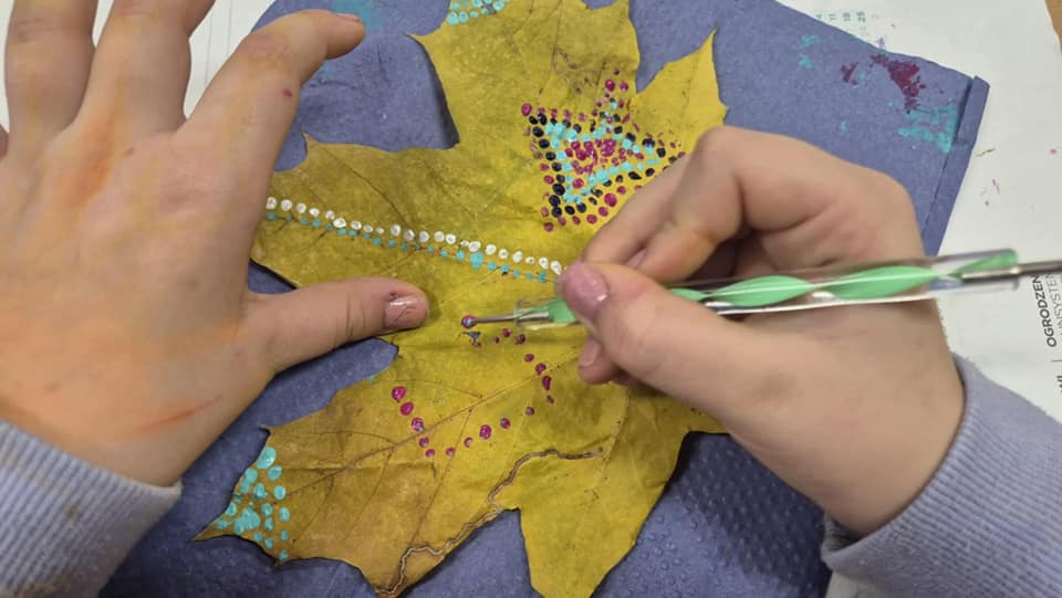 A gdyby świat był w kropki? Choć jesienne barwy są piękne, to na świetlicowych zajęciach plastycznych spróbowaliśmy pokolorować liście zupełnie nowymi barwami. Wyobraźcie sobie takie drzewa. Byłoby ciekawie😄