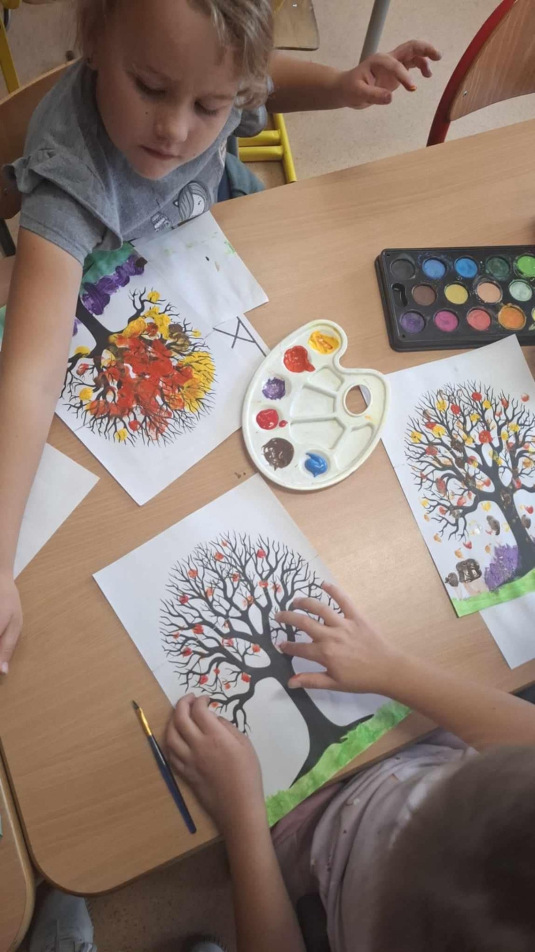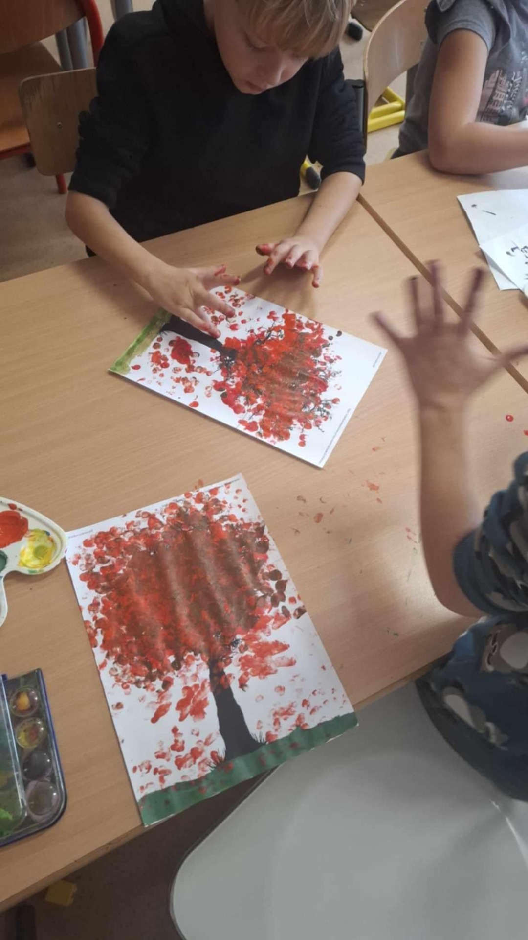 Już pierwszy śnieg za nami, ale świetliczaki jeszcze wspominają piękną, złotą jesień. Stała się ona dla nich inspiracją do wykonania zwierzaczków - cudaczków oraz jesiennych drzew z liśćmi, które były namalowane palcami. Malowanie palcami może być naprawdę przyjemne, twórcze i zabawne.