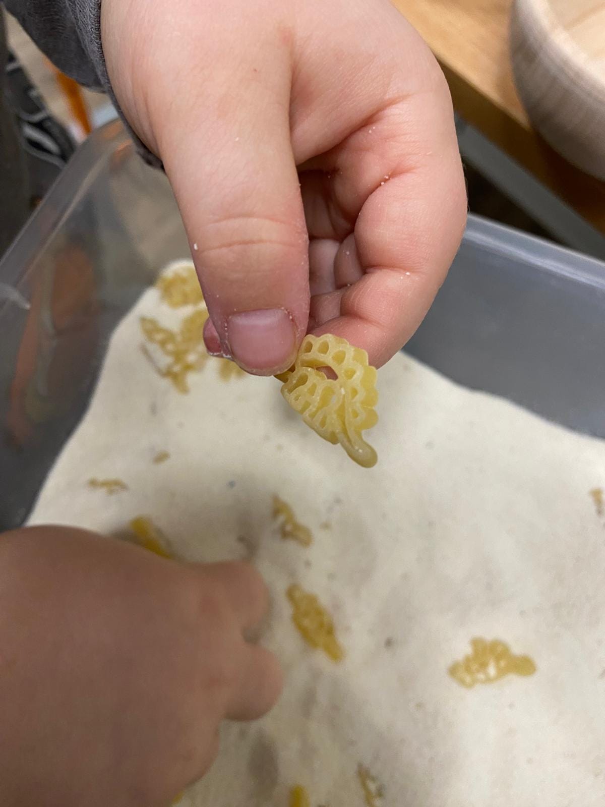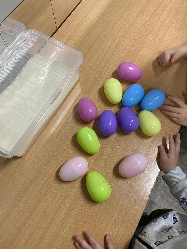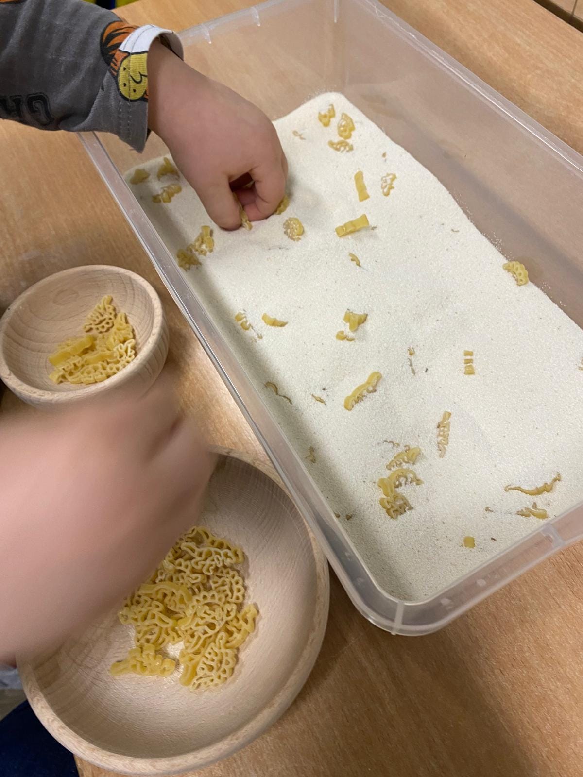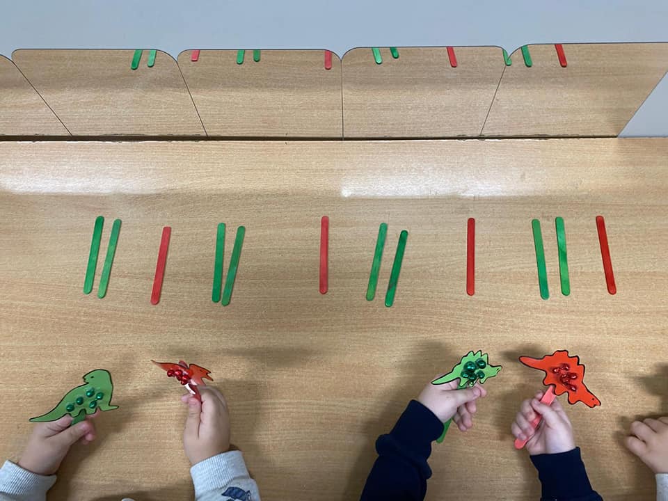 Dinozaury pomagały dziś przedszkolakom ćwiczyć język i buzię, nazywać kolory, liczyć. Grały z nimi na grzechotkach, uważnie patrząc na ułożony rytm śpiewały samogłoski, powtarzały sylaby. Dzieci szukały ukrytych jajek, dobierały je w pary i sprawdzały co jest w środku. Odkrywały też dinozaury ukryte w piasku!