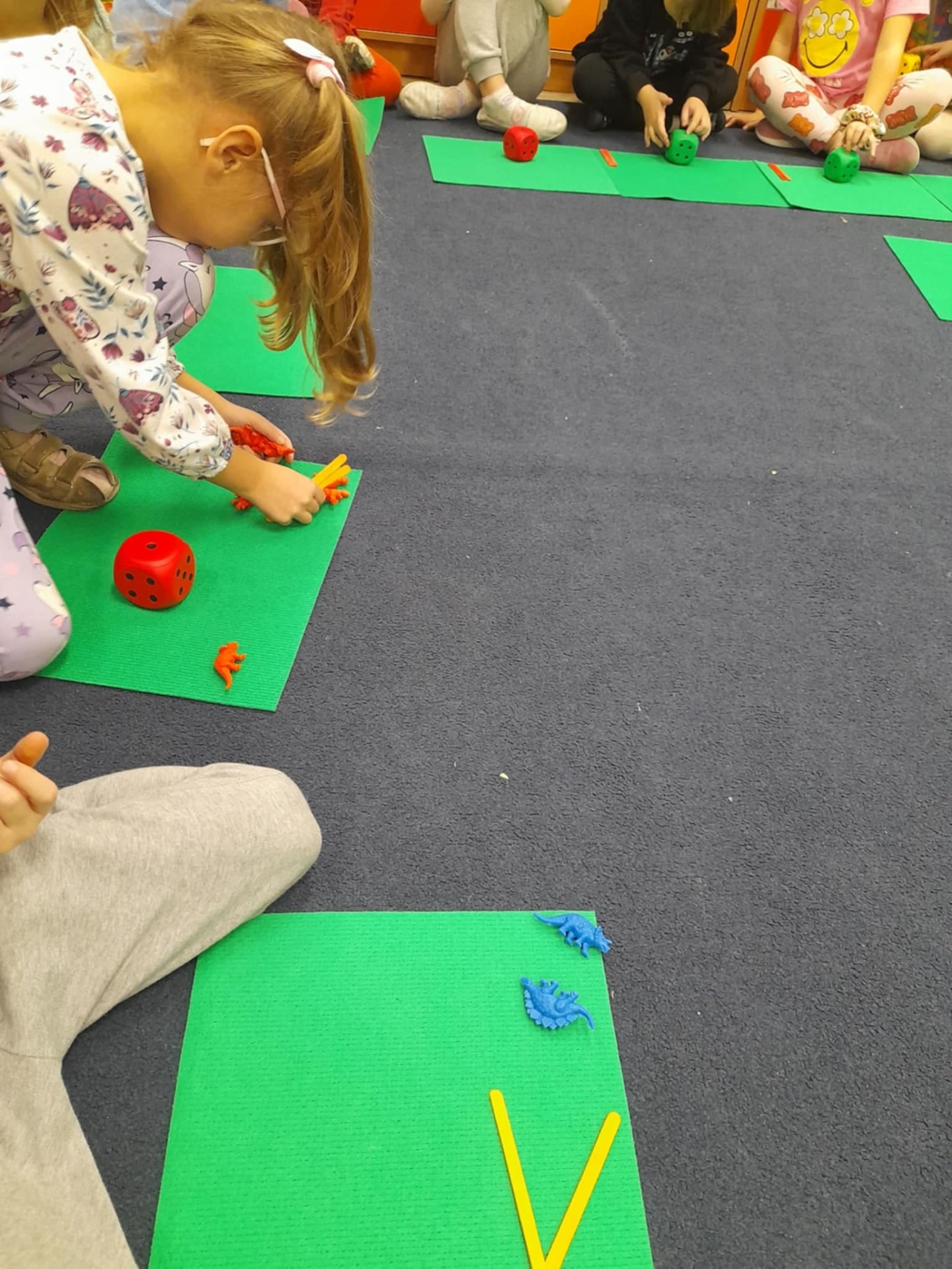 W trakcie zajęć edukacyjnych przedszkolaki poznawały litery i cyfry, doskonaliły umiejętności klasyfikowania, przeliczania i tworzenia zbiorów, a także uczyły się korzystać ze znaków <, >, =.