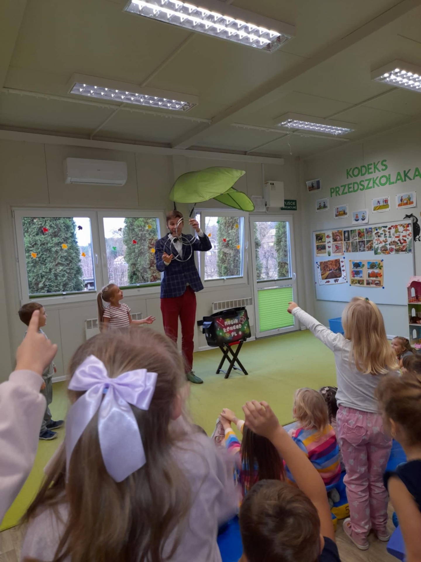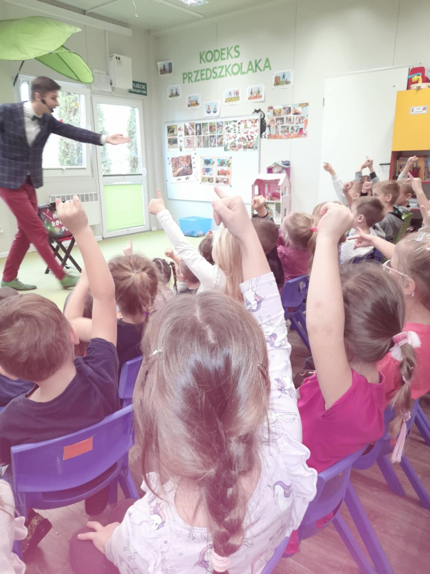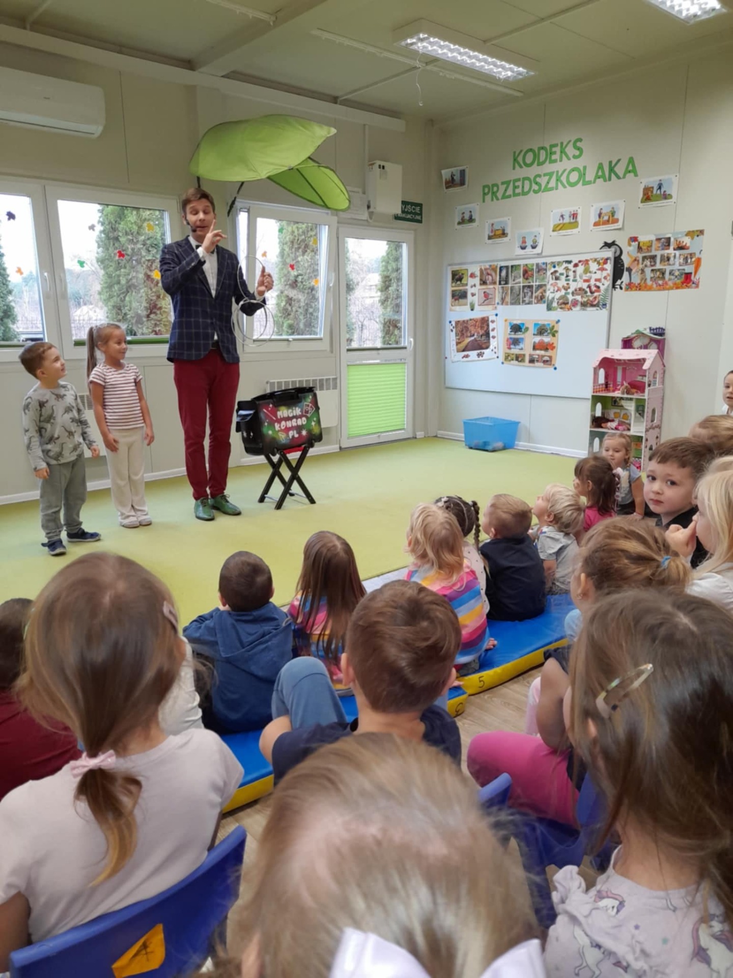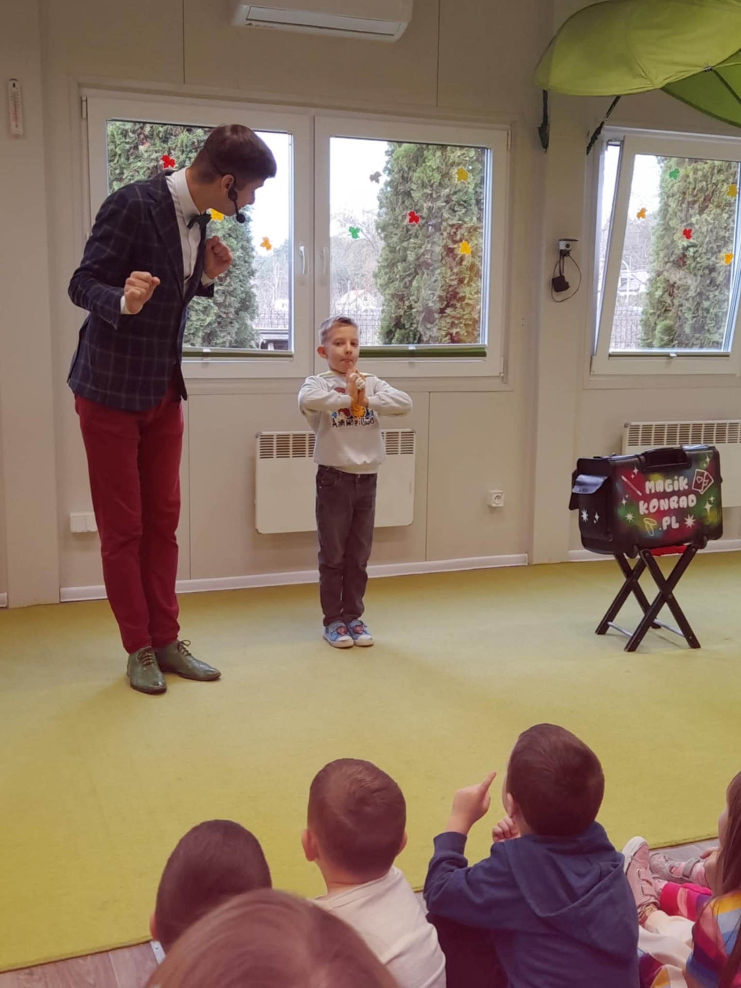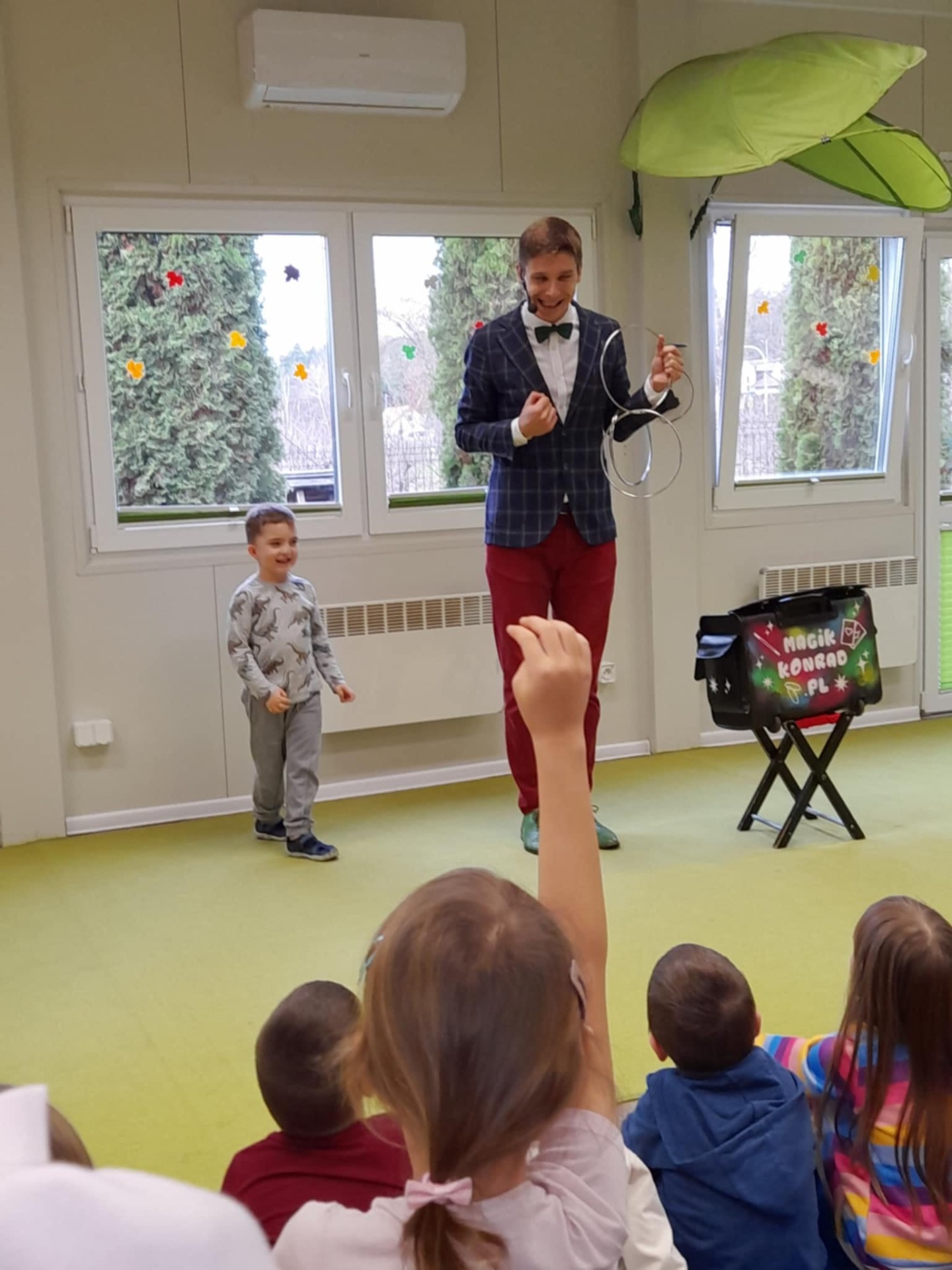 Co to był za dzień! Nasze przedszkole odwiedził magik Konrad, który w kilka chwil zamienił salę w prawdziwą krainę magii. Dzieci przecierały oczy ze zdumienia, gdy przedmioty znikały, pojawiały się w magicznych miejscach, a niektóre z nich... wydawały się latać!