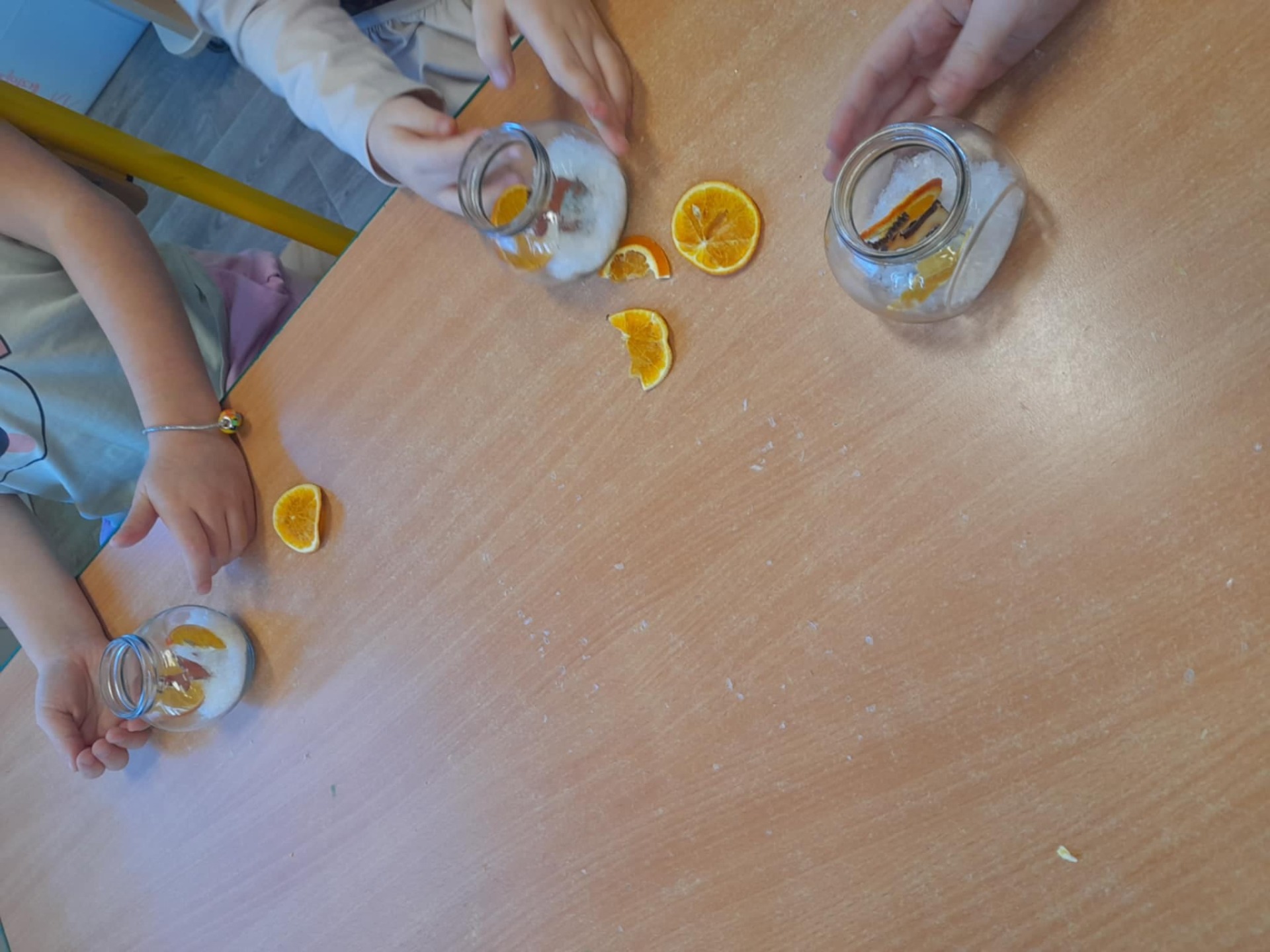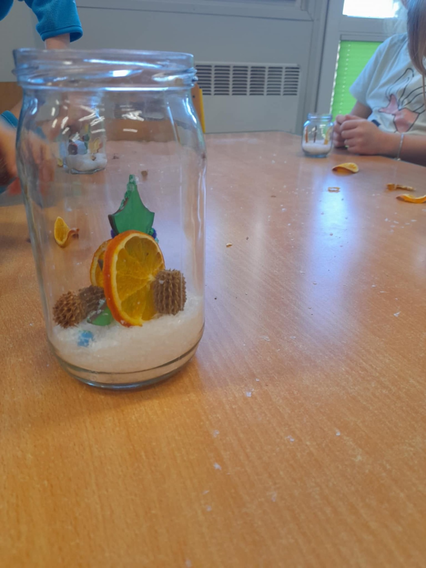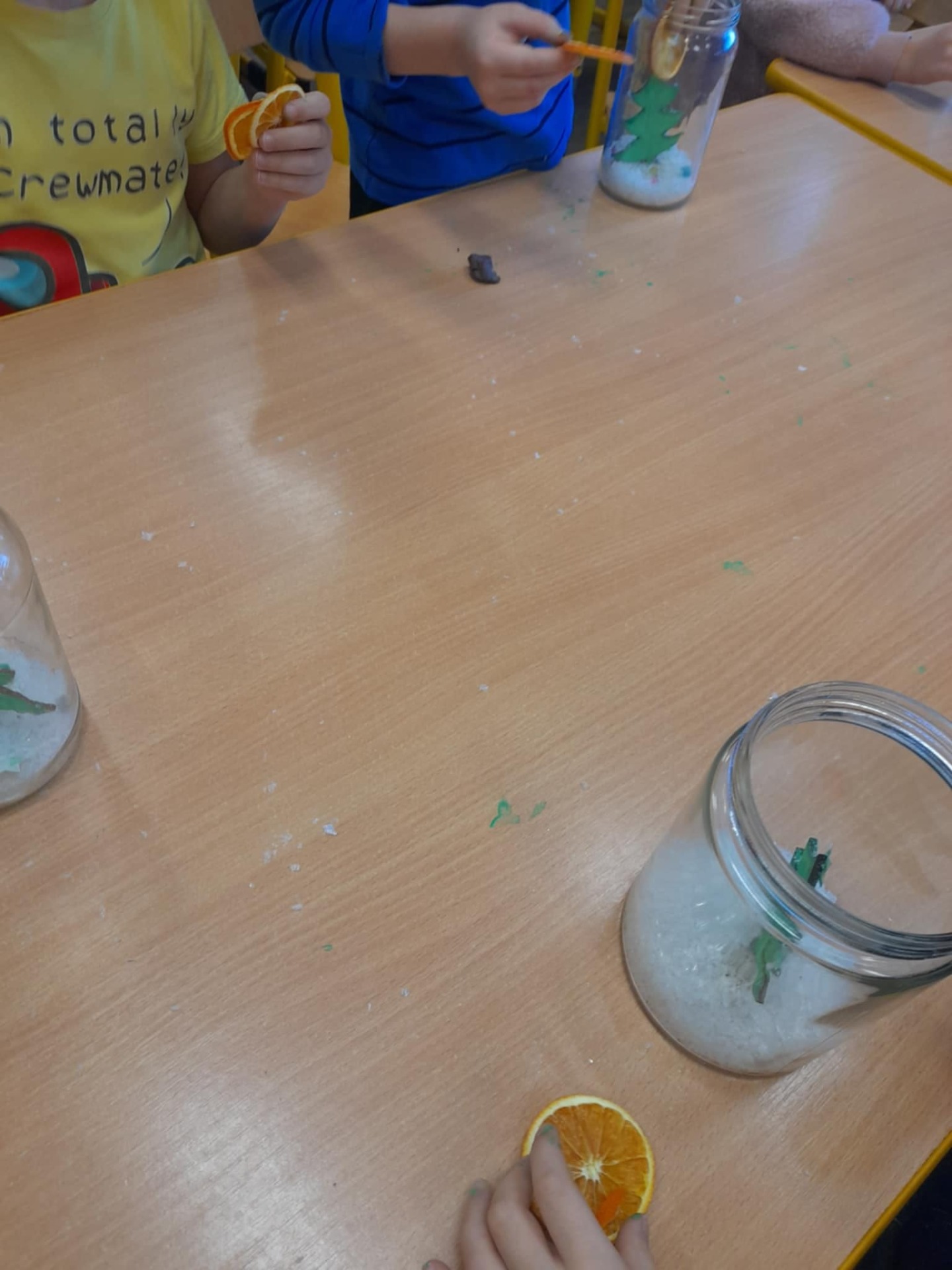 W naszym przedszkolu odbyły się magiczne warsztaty świąteczne, podczas których dzieci własnoręcznie przygotowywały wyjątkowe lampiony, W wykorzystując słoiki oraz naturalne materiały, takie jak gałązki choinkowe, suszona cytryna i drewniane ozdoby w kształcie choinek. Przedszkolaki stworzyły małe dzieła sztuki!