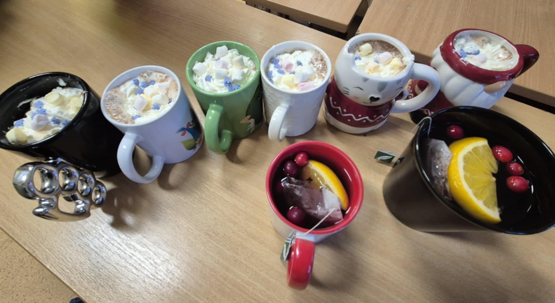 Mikołajkowe zajęcia plastyczne w najstarszej grupie upłynęły przy tworzeniu pięknych choinek. Żeby było uroczyście i nastrojowo, to pracowaliśmy przy gorącej czekoladzie z bitą śmietaną i piankami i przy świątecznej herbatce.