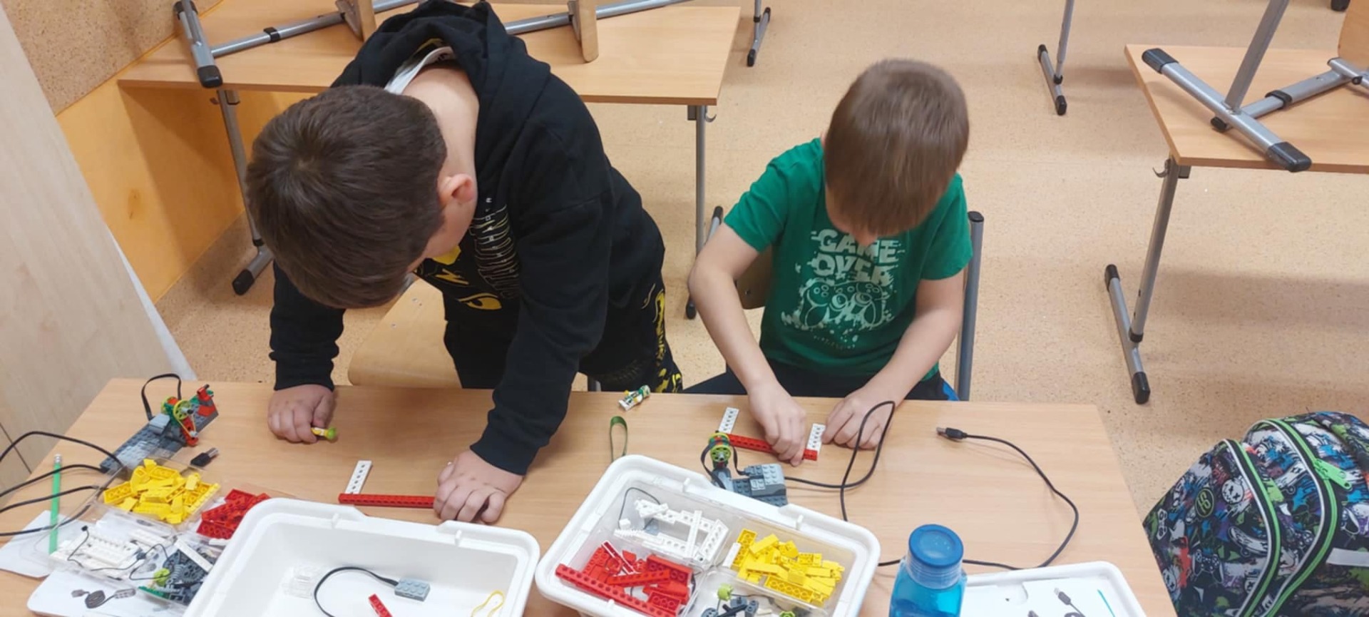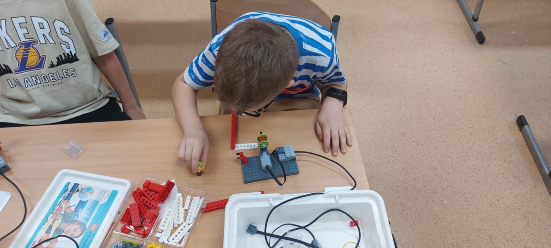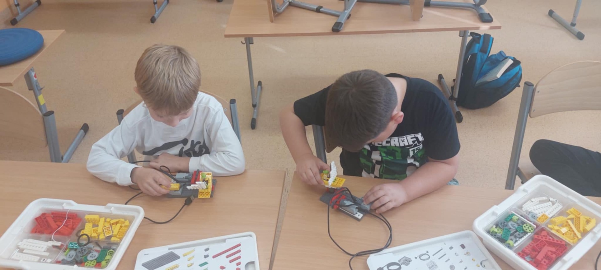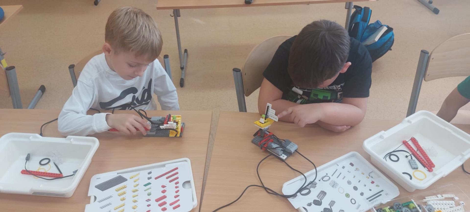 Podczas zajęć rozwijających uczniowie klasy 1 z użyciem klocków Lego WeDo uczą się programowania a jednocześnie rozwijają swoje zdolności motoryczne i umiejętności poznawcze. Dzięki użyciu klocków nauka w naszej szkole staje się kreatywną zabawą.