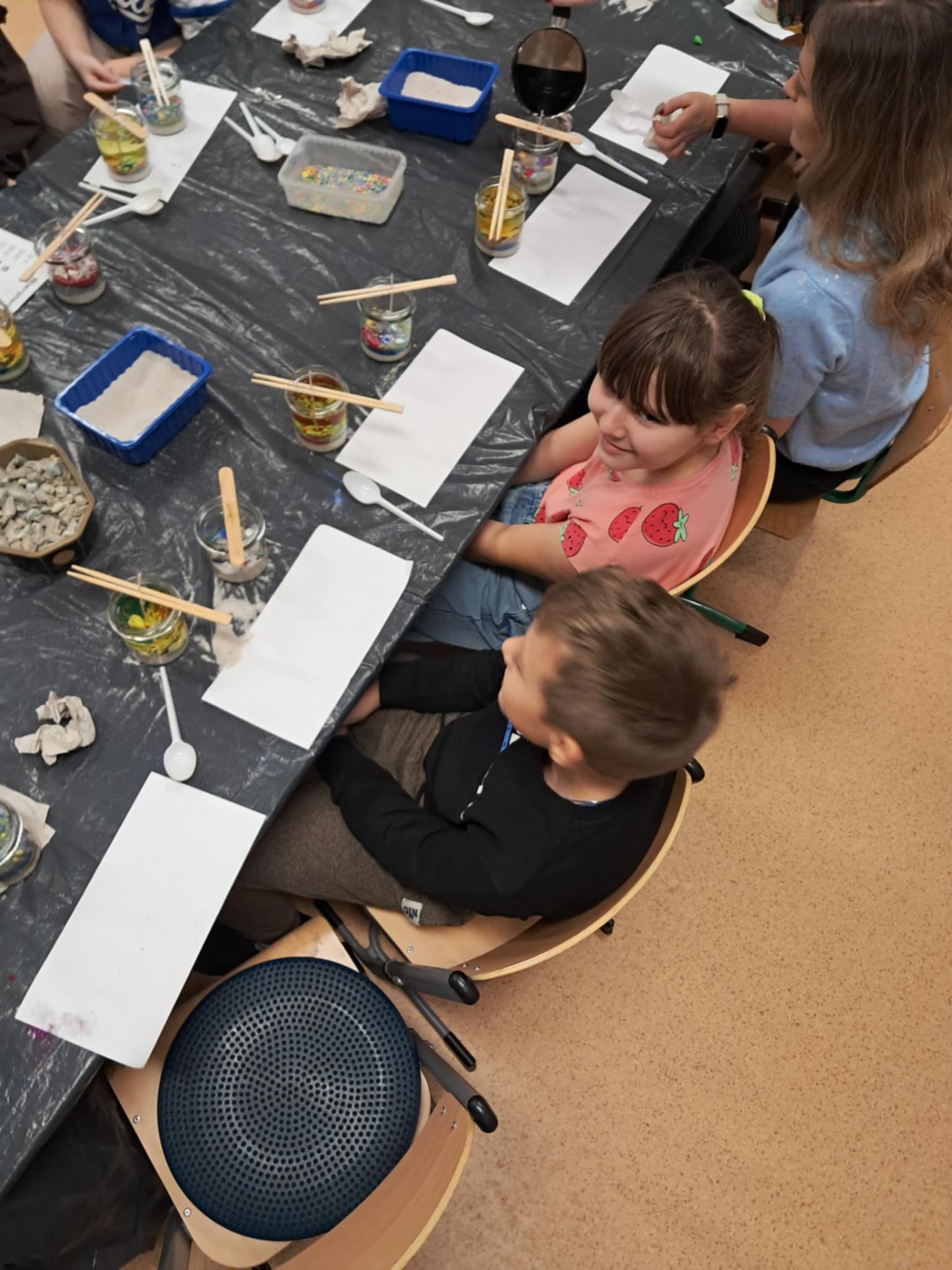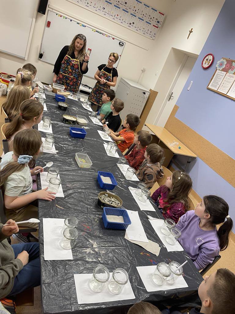 W klasach I-III odbyły się wyjątkowe warsztaty, podczas których uczniowie mieli okazję stworzyć kolorowe świece. Te piękne upominki będą doskonałym prezentem z okazji zbliżającego się święta Babć i Dziadków. Dzieci z zaangażowaniem i radością uczestniczyły w zajęciach, rozwijając swoją kreatywność oraz umiejętności manualne. Jesteśmy pewni, że te ręcznie wykonane świeczki przyniosą wiele radości naszym dziadkom!