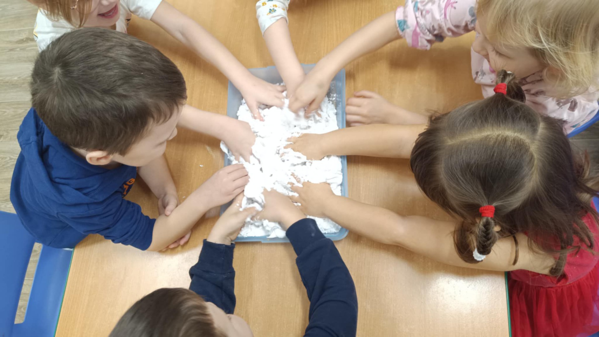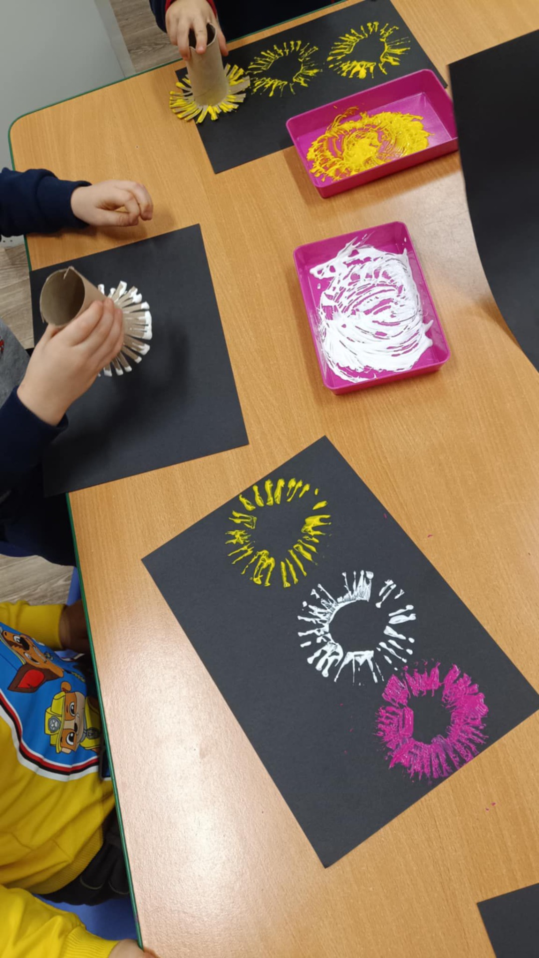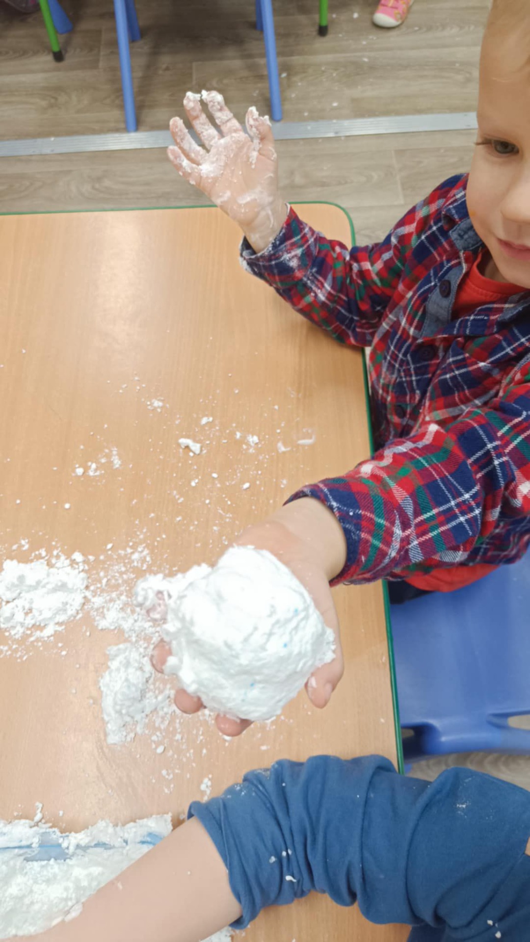 Początek stycznia w grupie Misie upłynął pod znakiem kreatywności i zimowej zabawy! Rozpoczęliśmy od efektownej pracy plastycznej – tworzenia kolorowych fajerwerków. Następnie, przeprowadziliśmy fascynujący eksperyment malowania po mleku, obserwując magiczne efekty. Sami stworzyliśmy puszysty, sztuczny śnieg, a potem zbudowaliśmy karmnik dla ptaków utrwalając figury geometryczne. Dzieci poznały tajniki zegara, ucząc się odmierzać czas. Nie zabrakło też zabaw na świeżym powietrzu . Byliśmy także na koncercie piosenek Disneya, a dzień Kubusia Puchatka był pełen atrakcji: zabawy z chustą animacyjną, odbijanie pszczółek, przeliczanie miodku i szukanie zadań ukrytych w sali, zgodnie ze wskazówkami pozostawionymi przez samego Kubusia!