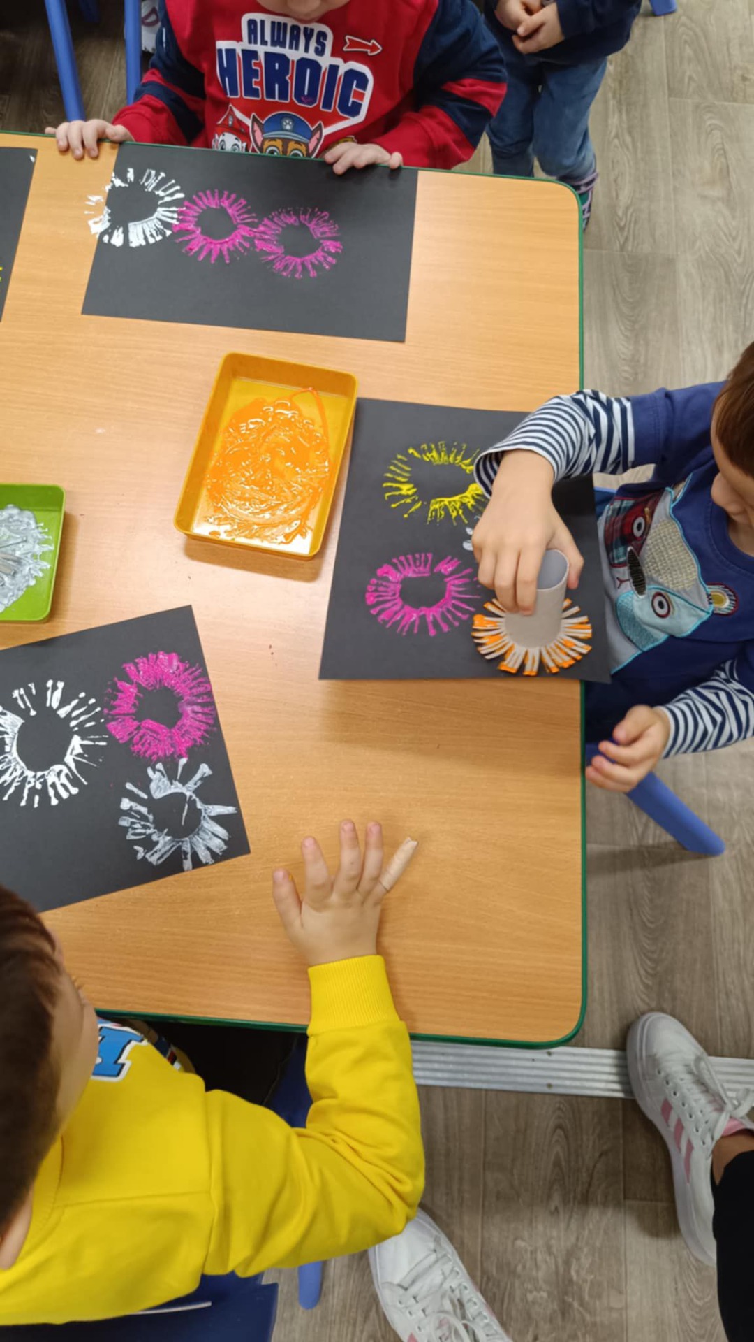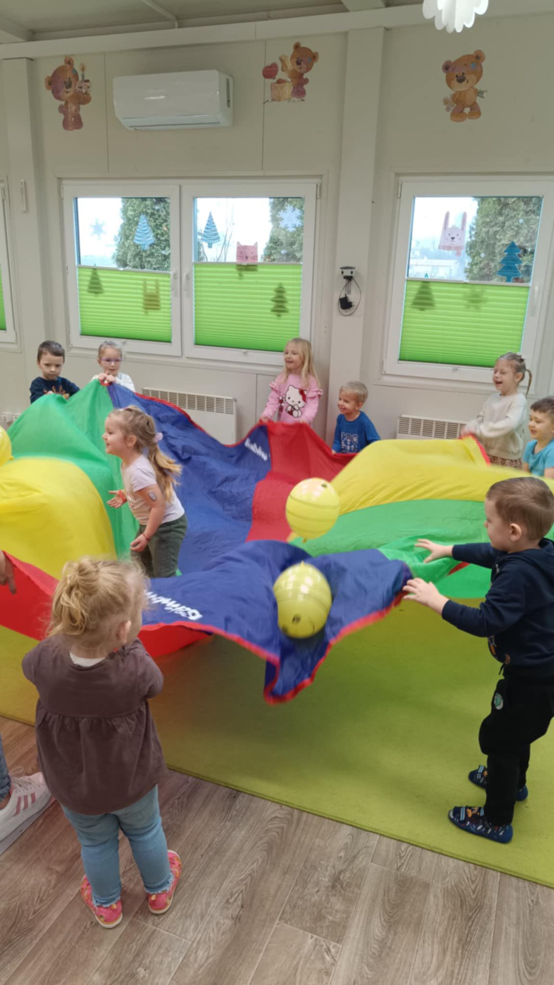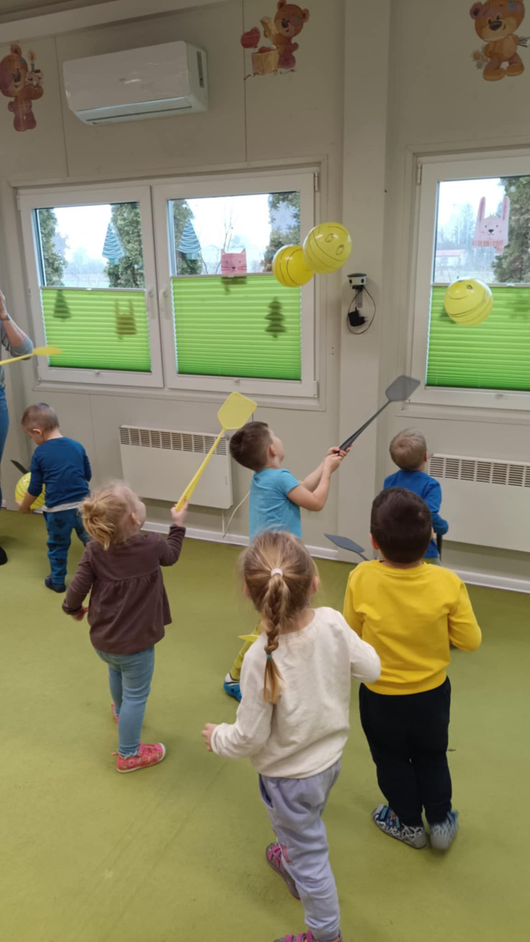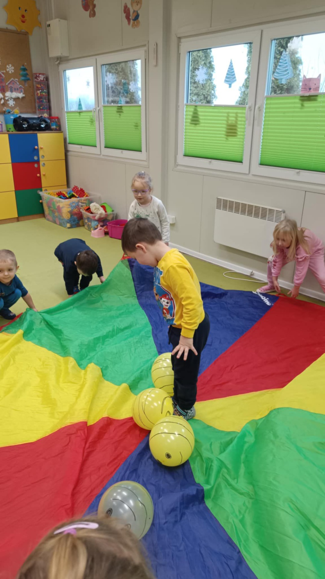 Początek stycznia w grupie Misie upłynął pod znakiem kreatywności i zimowej zabawy! Rozpoczęliśmy od efektownej pracy plastycznej – tworzenia kolorowych fajerwerków. Następnie, przeprowadziliśmy fascynujący eksperyment malowania po mleku, obserwując magiczne efekty. Sami stworzyliśmy puszysty, sztuczny śnieg, a potem zbudowaliśmy karmnik dla ptaków utrwalając figury geometryczne. Dzieci poznały tajniki zegara, ucząc się odmierzać czas. Nie zabrakło też zabaw na świeżym powietrzu . Byliśmy także na koncercie piosenek Disneya, a dzień Kubusia Puchatka był pełen atrakcji: zabawy z chustą animacyjną, odbijanie pszczółek, przeliczanie miodku i szukanie zadań ukrytych w sali, zgodnie ze wskazówkami pozostawionymi przez samego Kubusia!