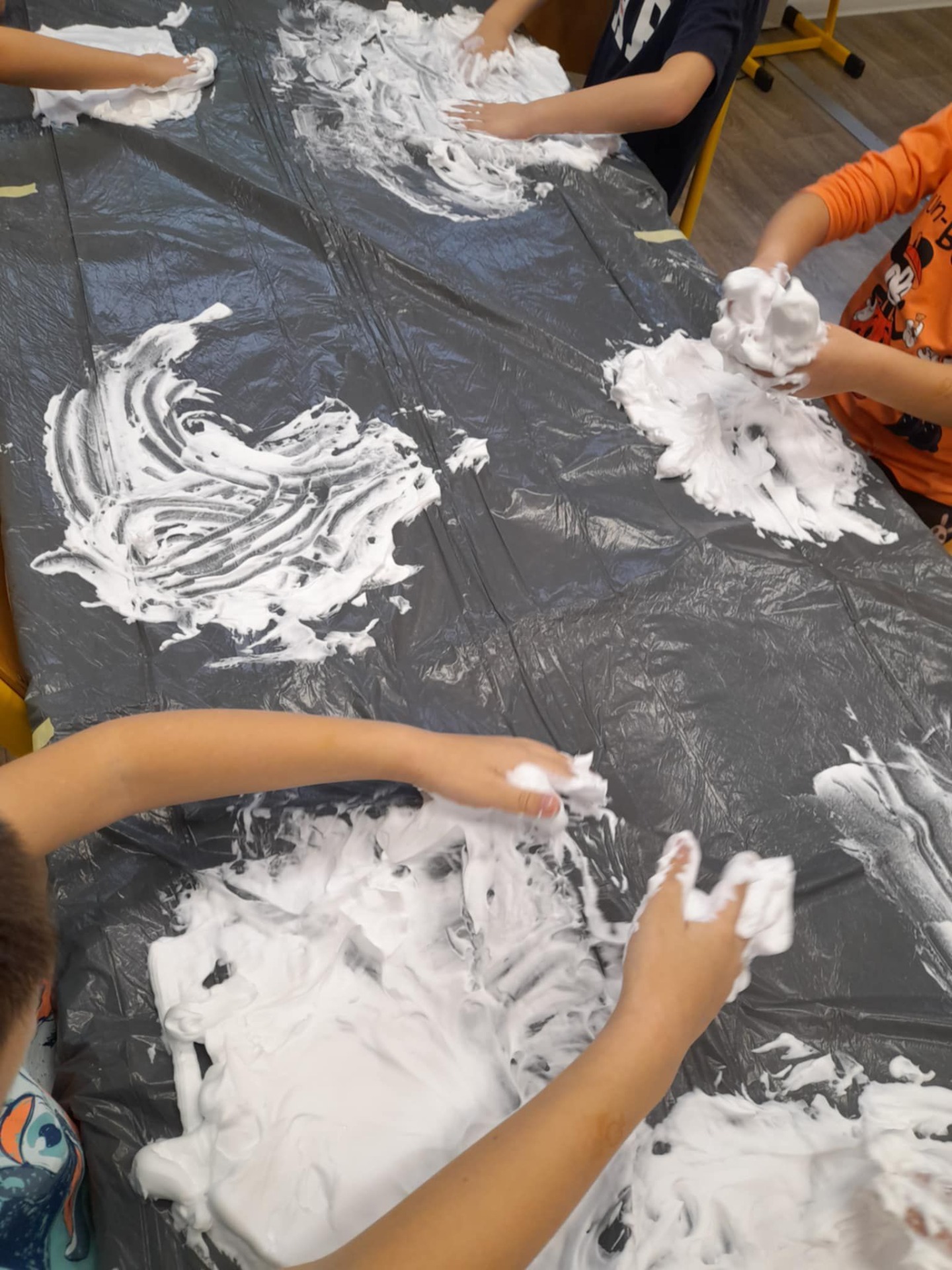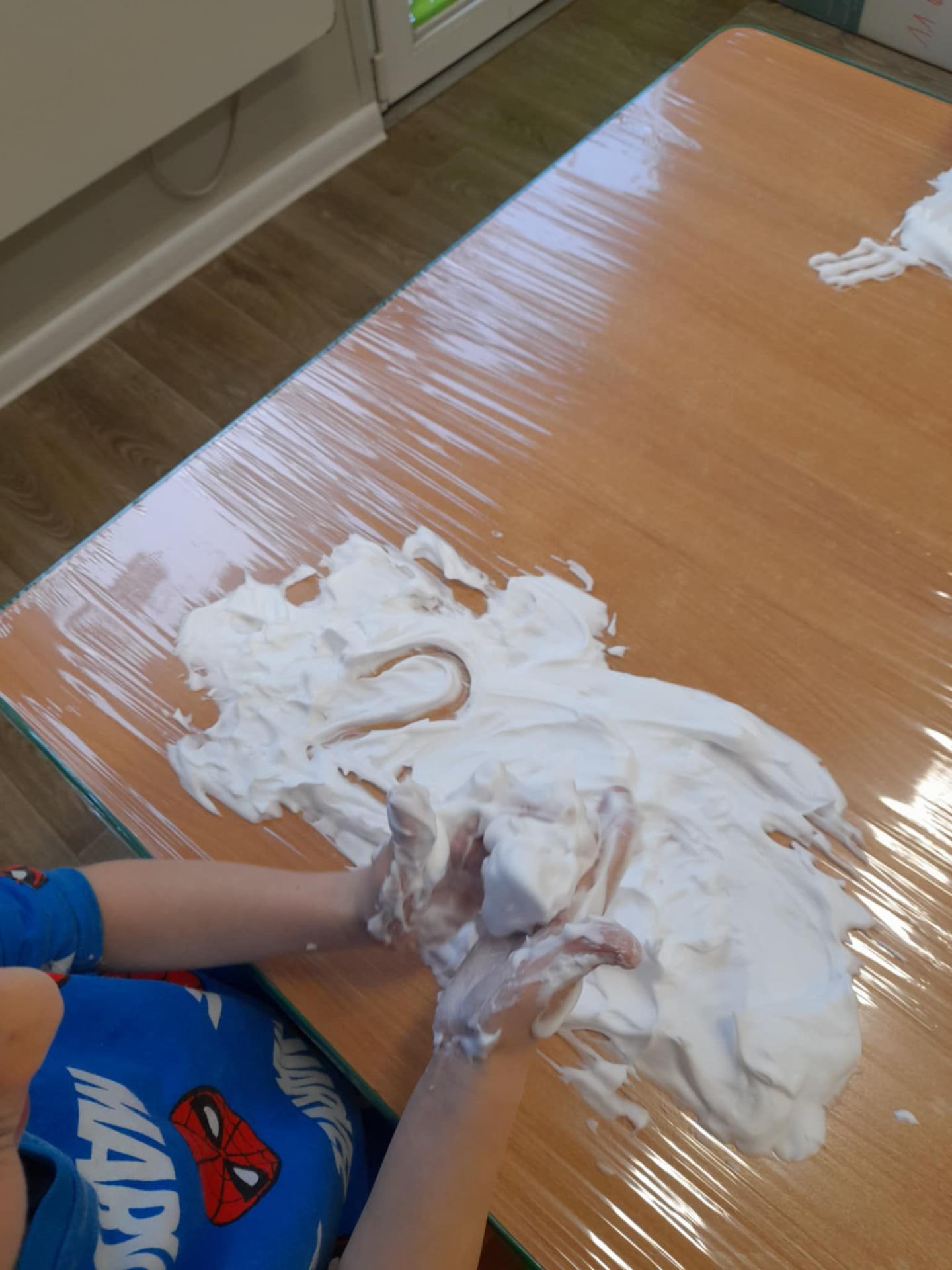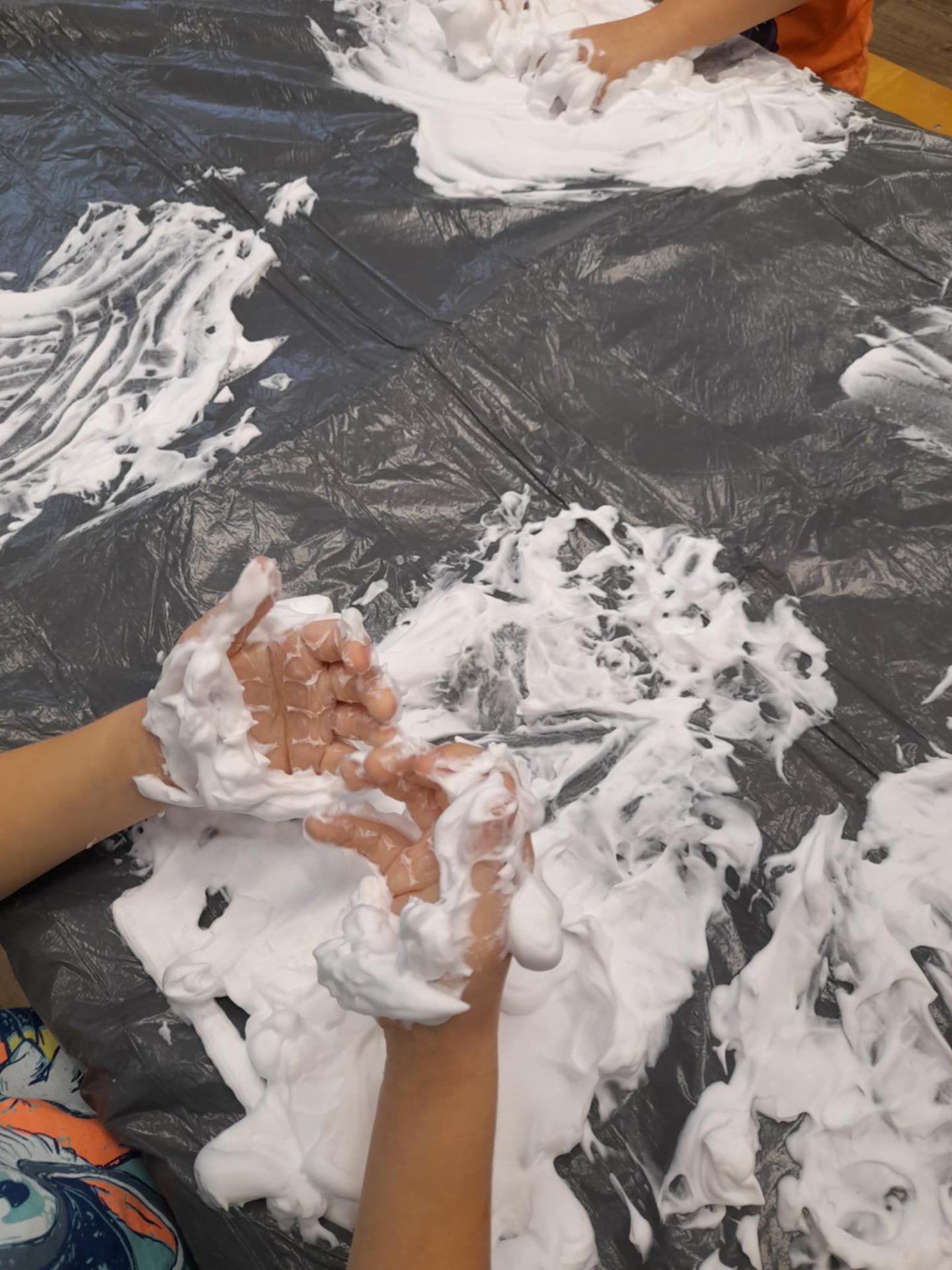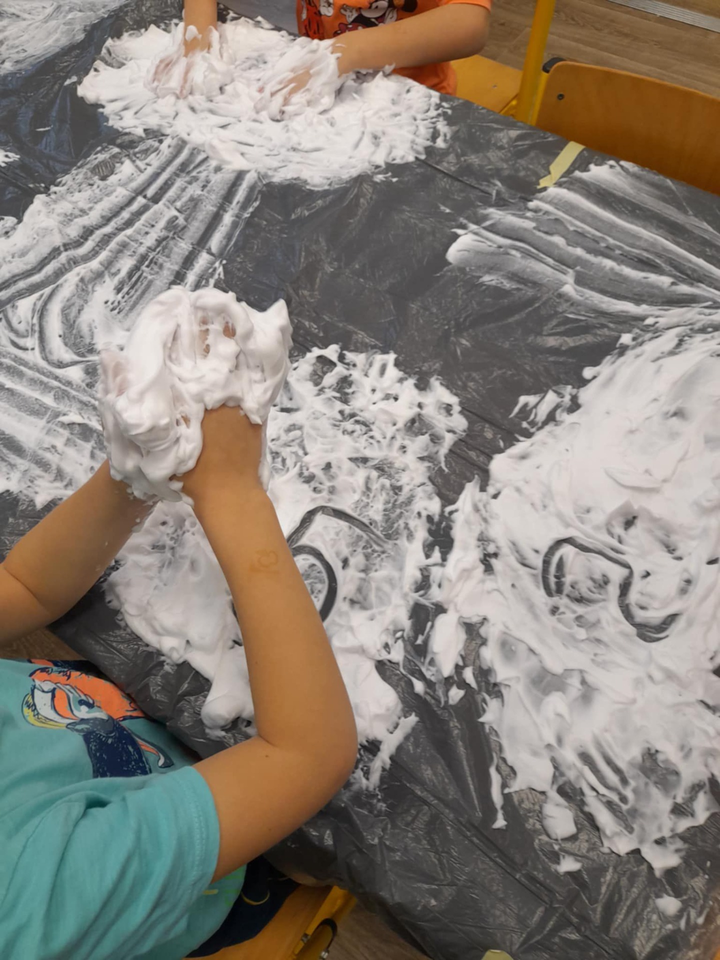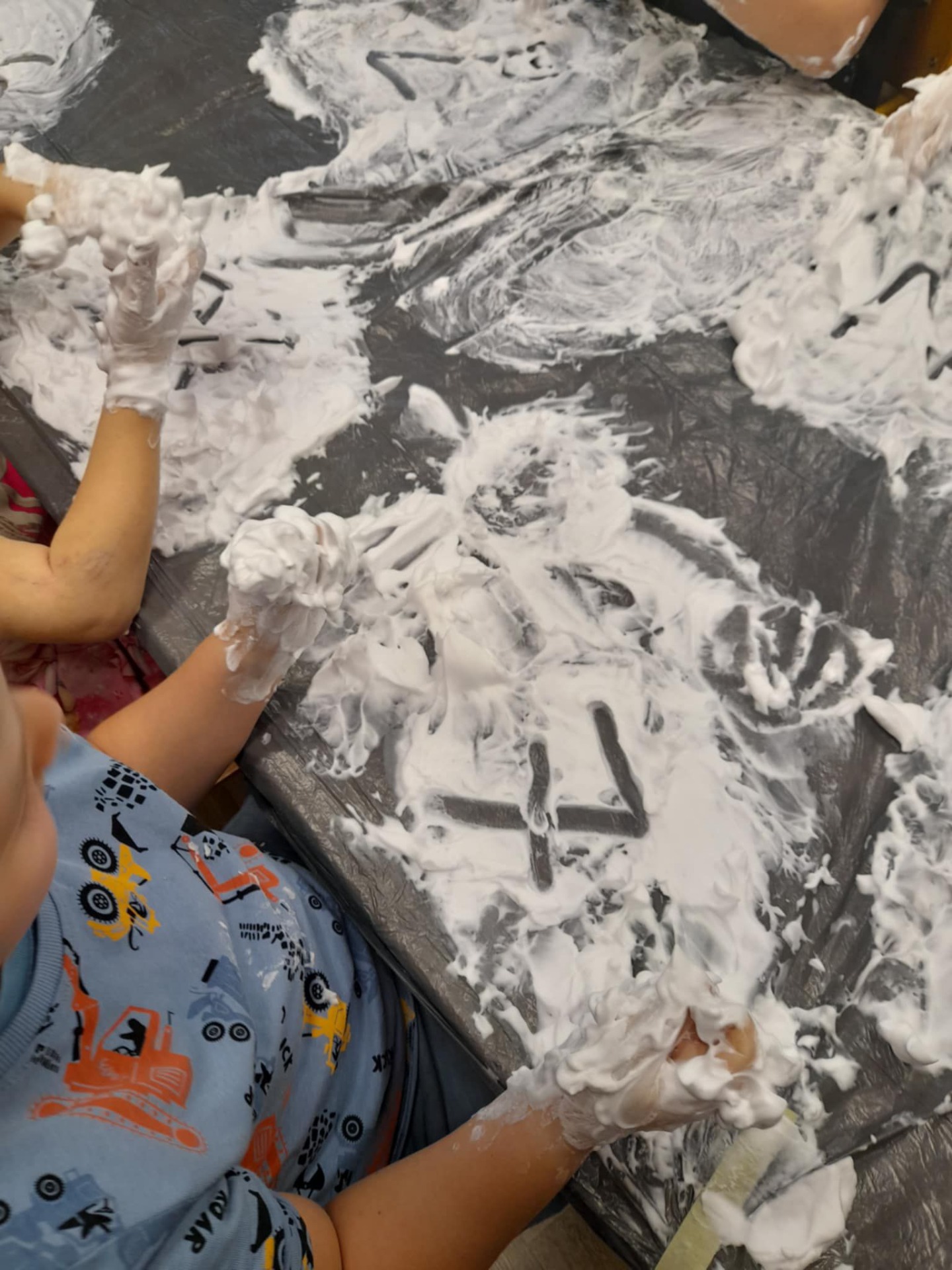 W naszej grupie odbyła się wyjątkowa, pachnąca i bardzo kreatywna zabawa sensoryczna z... pianką do golenia! 😊 Dzieci z radością i zaangażowaniem utrwalały poznane cyfry, kształty oraz szlaczki, tworząc je według własnych pomysłów w miękkiej i puszystej pianie. To nie tylko świetna zabawa, ale też doskonały trening dla małych dłoni – każdy ruch to krok w stronę usprawniania małej motoryki, która przyda się w nauce pisania. Zabawa wywołała mnóstwo uśmiechu, a dłonie dzieci, oprócz ćwiczeń, zyskały dodatkowy trening sensoryczny. Pszczółki naprawdę zasłużyły na miano kreatywnych artystów!