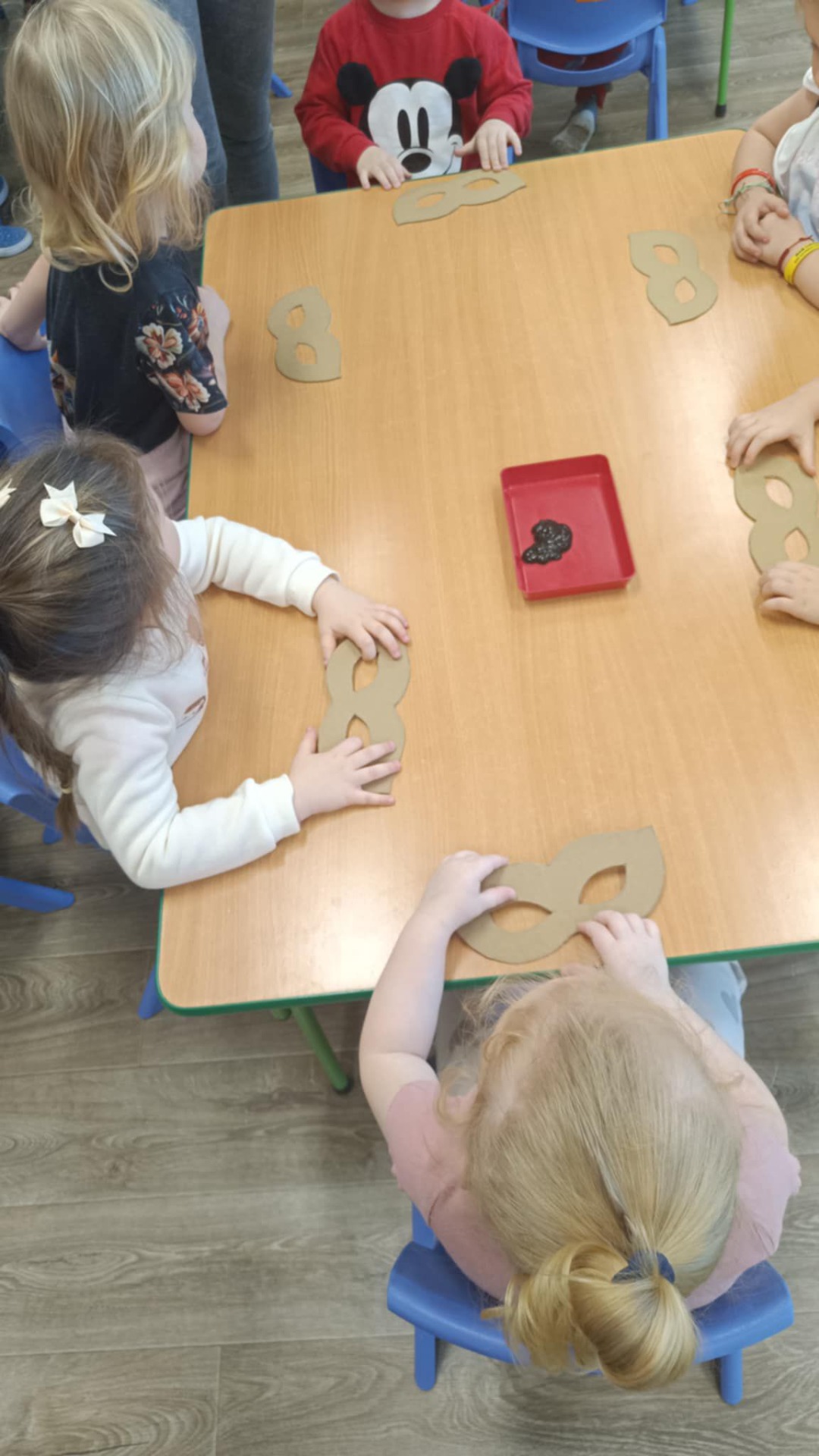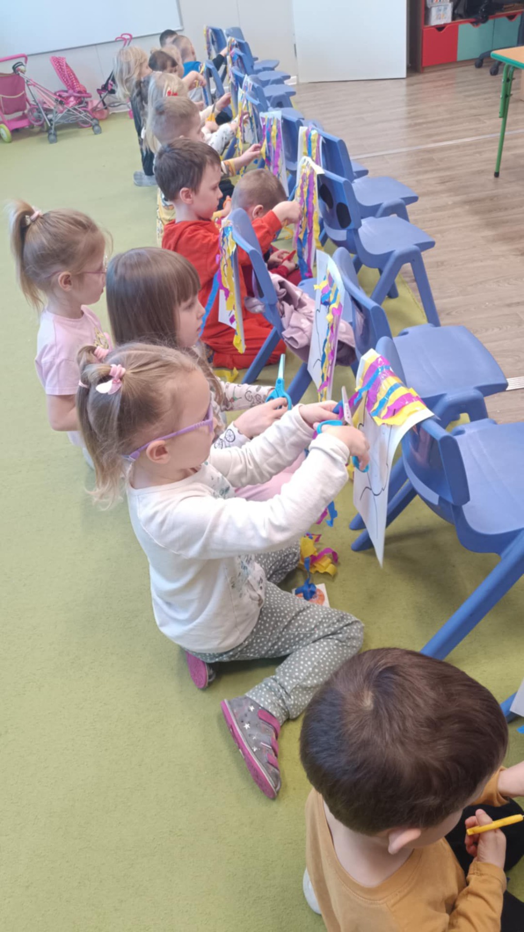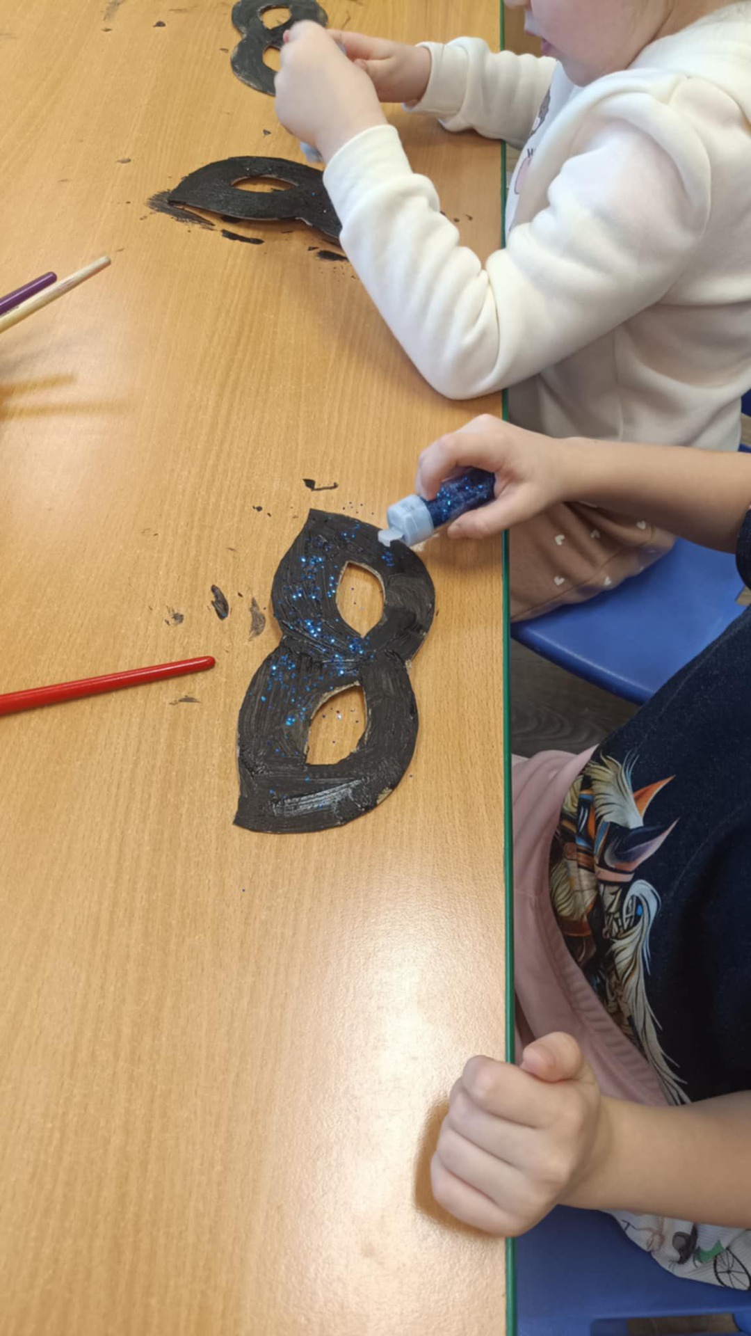 Dzień w grupie Misiów był dziś wyjątkowo kolorowy i pełen zabawy. Dzieci wykazały się ogromną kreatywnością, tworząc własnoręcznie piękne i oryginalne maski karnawałowe rozwijając tym samym zdolności manualne oraz wyobraźnię przestrzenną. Potem przyszła pora na karnawałowe fryzury ☺️ Doskonaliliśmy tym samym koordynację oko- ręka. Na koniec nie mogło zabraknąć odrobiny szaleństwa!😉 Możemy śmiało potwierdzić, że Misie są gotowe na jutrzejszy bal karnawałowy !