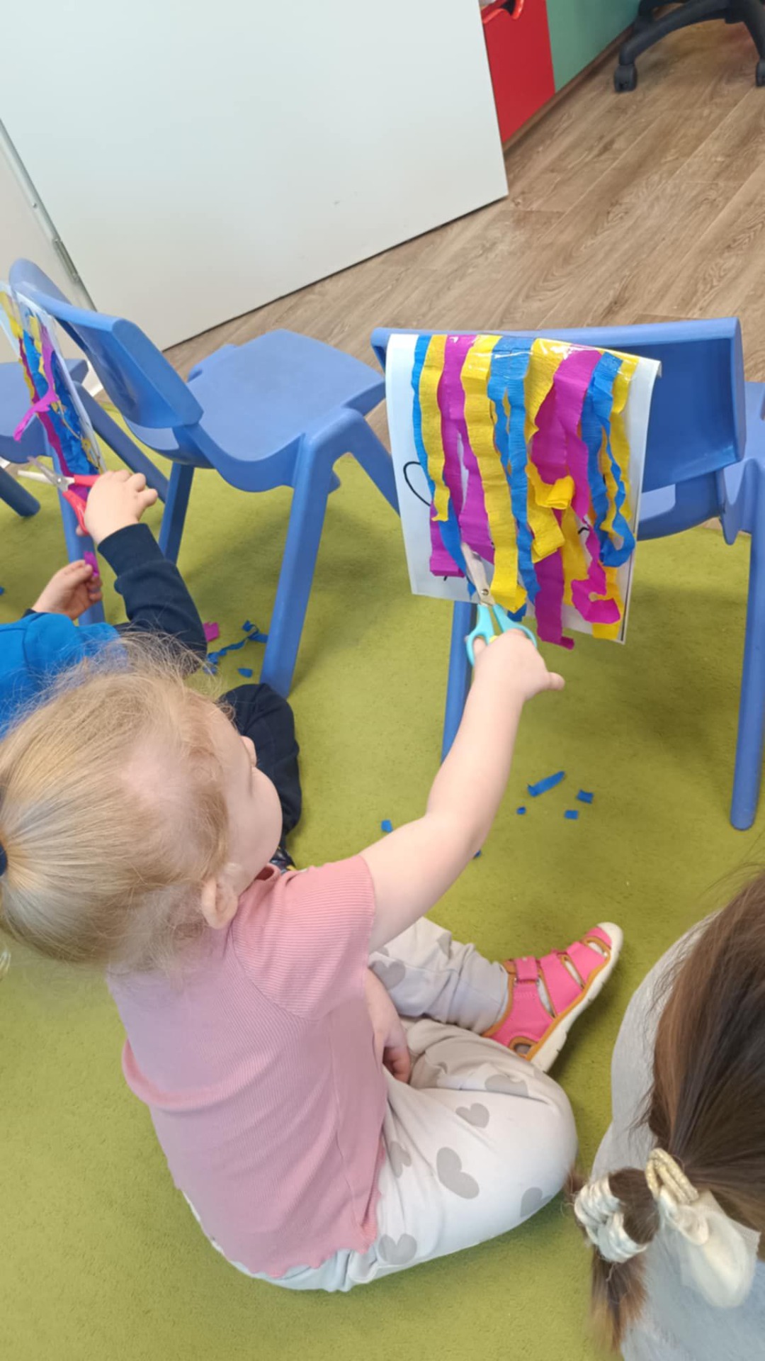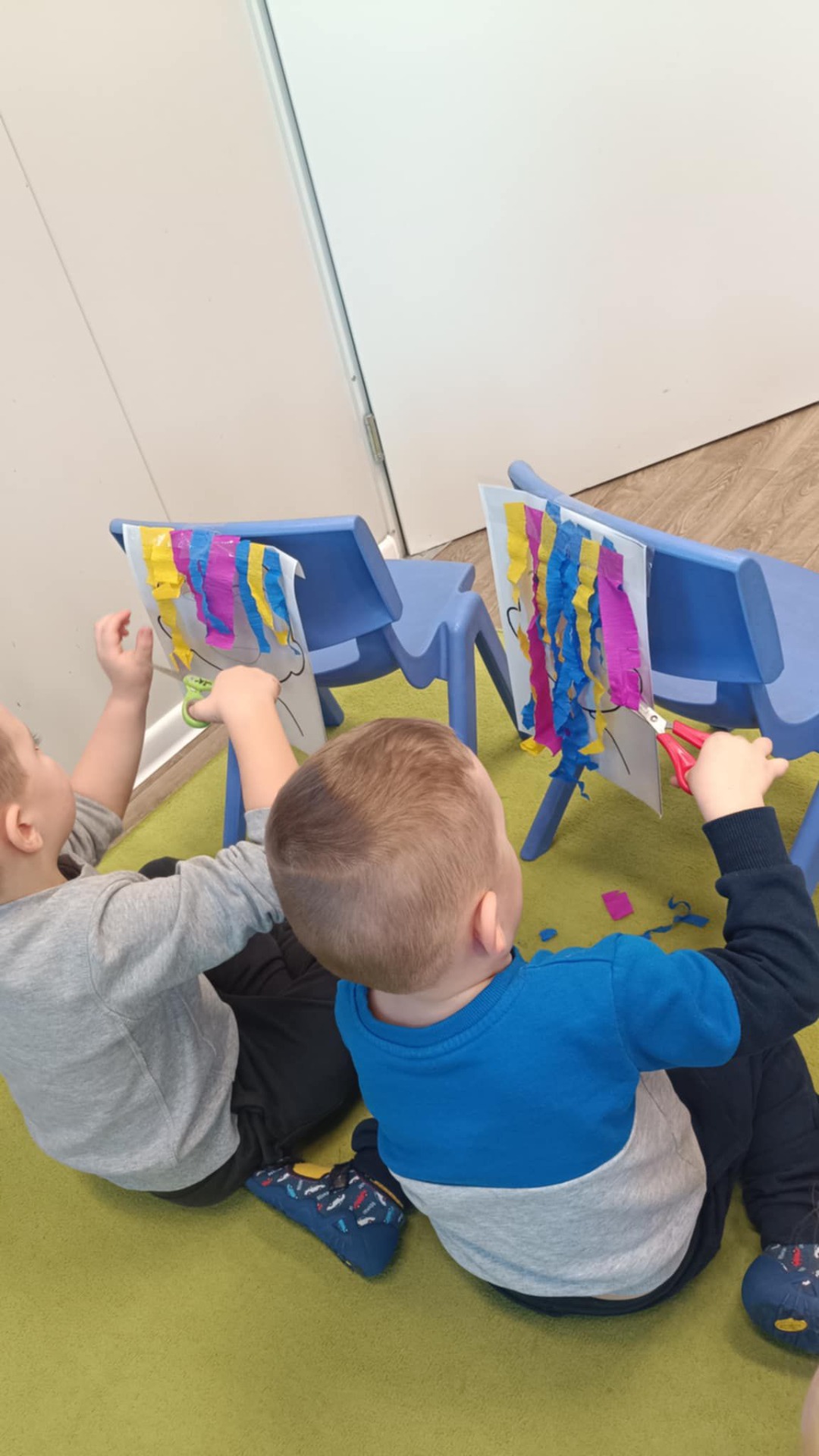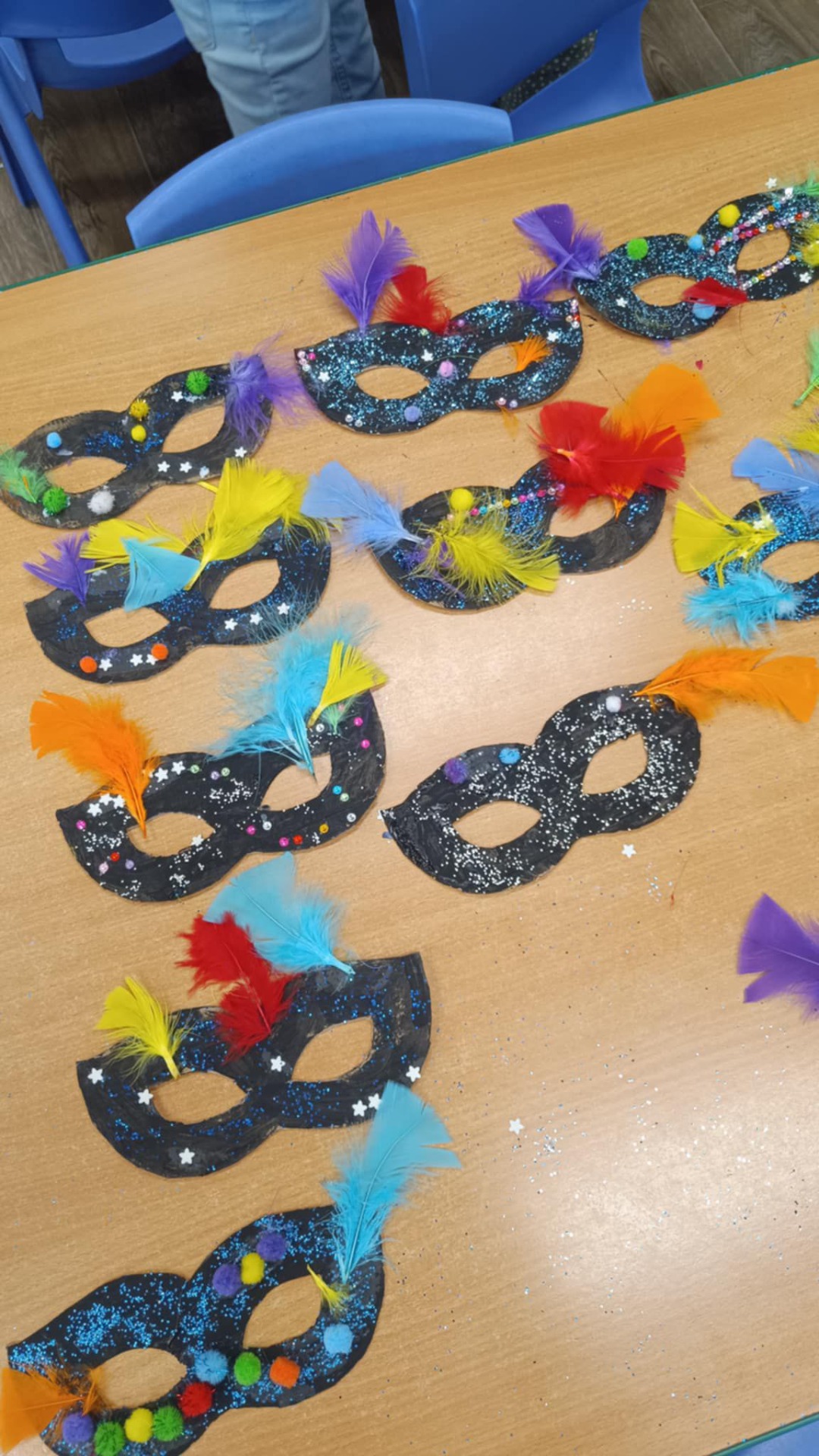 Dzień w grupie Misiów był dziś wyjątkowo kolorowy i pełen zabawy. Dzieci wykazały się ogromną kreatywnością, tworząc własnoręcznie piękne i oryginalne maski karnawałowe rozwijając tym samym zdolności manualne oraz wyobraźnię przestrzenną. Potem przyszła pora na karnawałowe fryzury ☺️ Doskonaliliśmy tym samym koordynację oko- ręka. Na koniec nie mogło zabraknąć odrobiny szaleństwa!😉 Możemy śmiało potwierdzić, że Misie są gotowe na jutrzejszy bal karnawałowy !