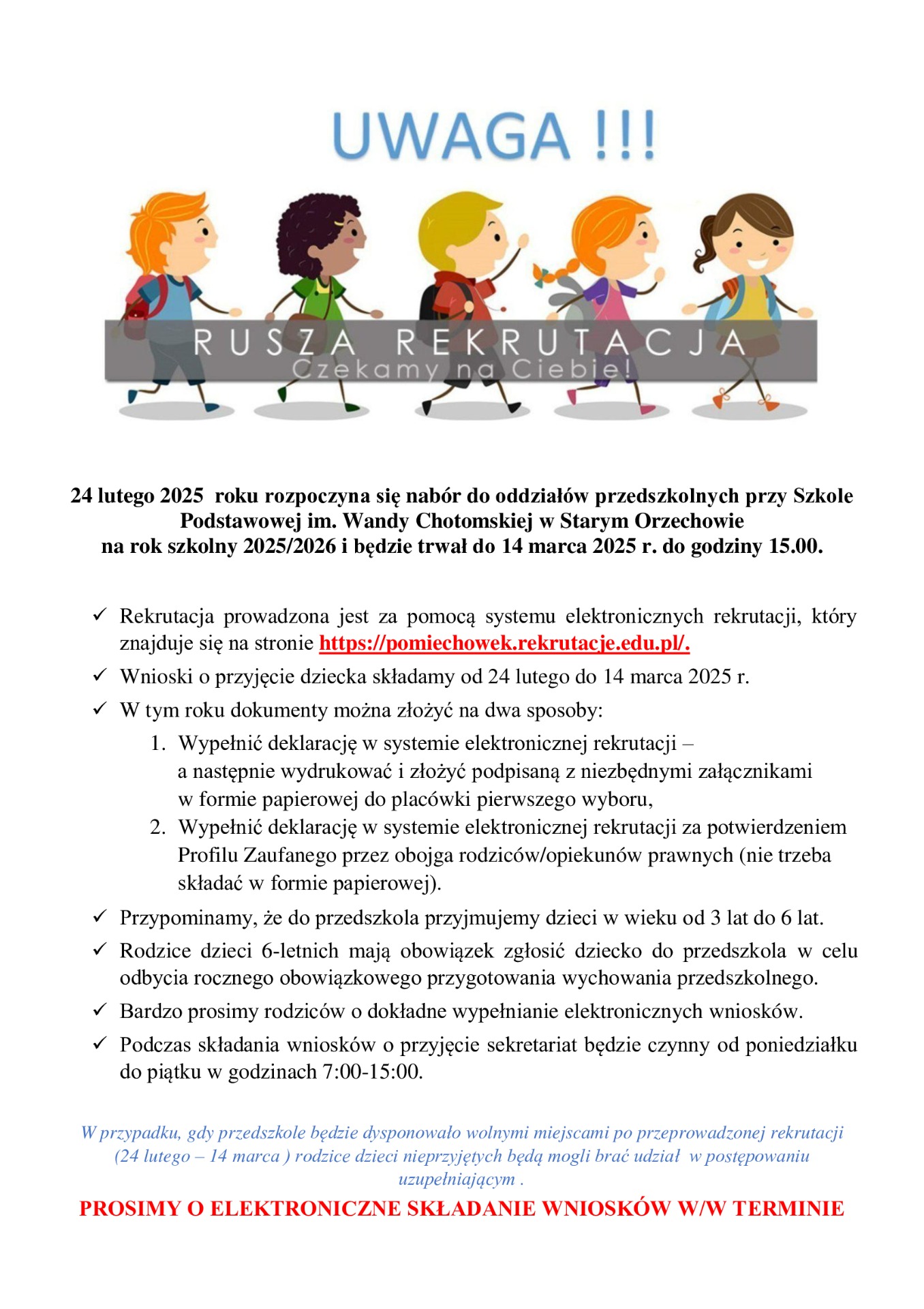 • Rekrutacja do oddziałów przedszkolnych na rok...