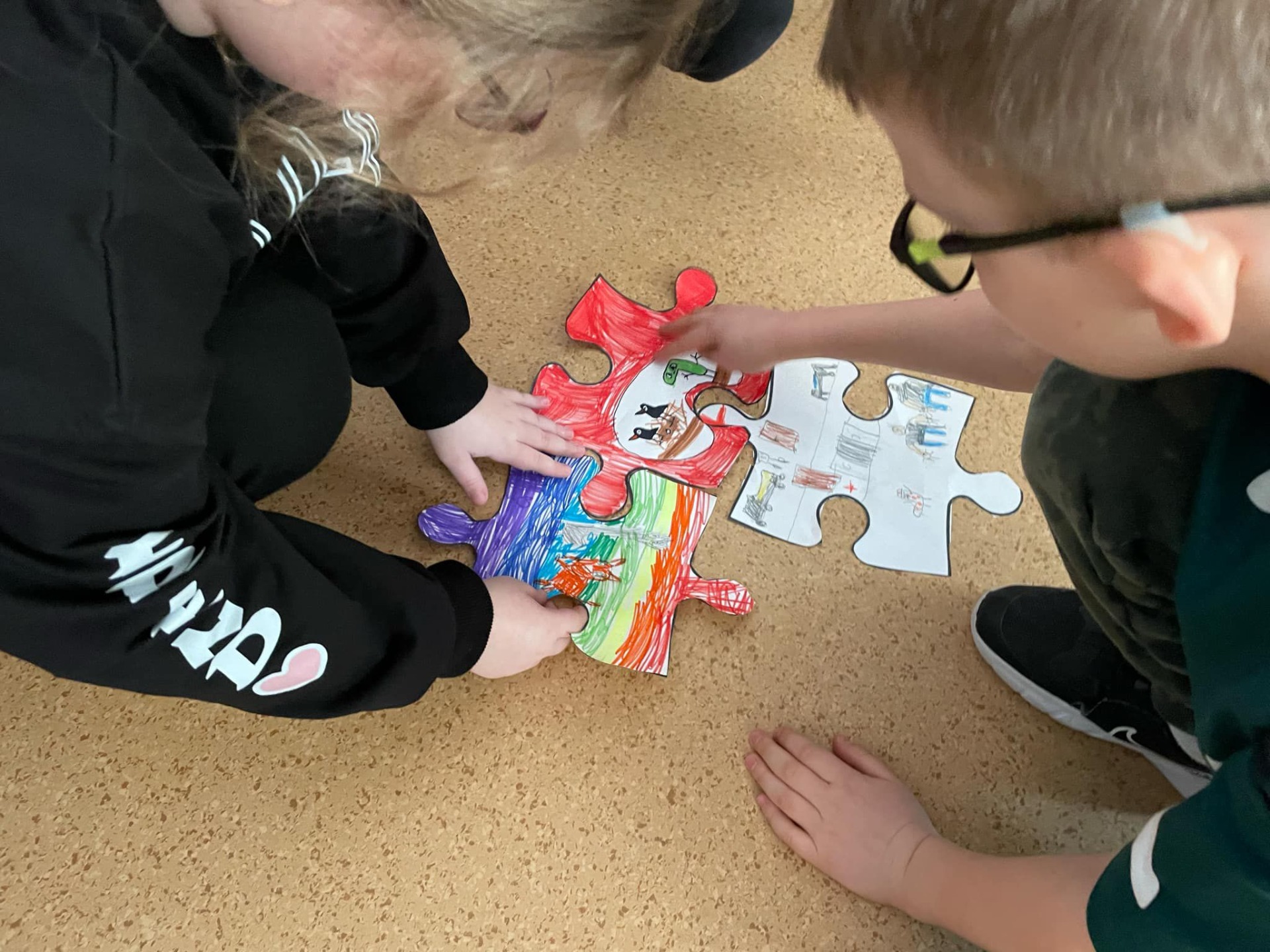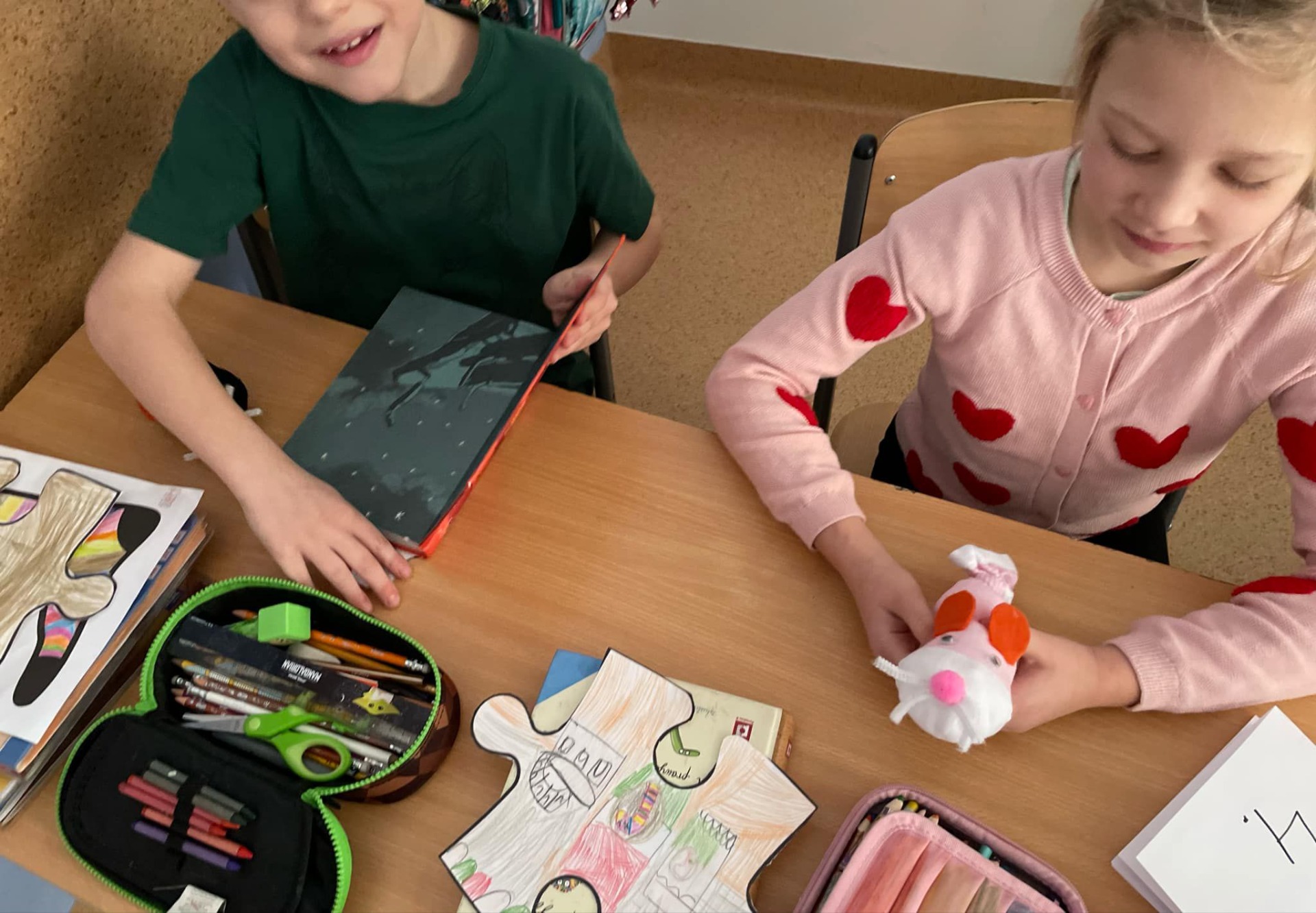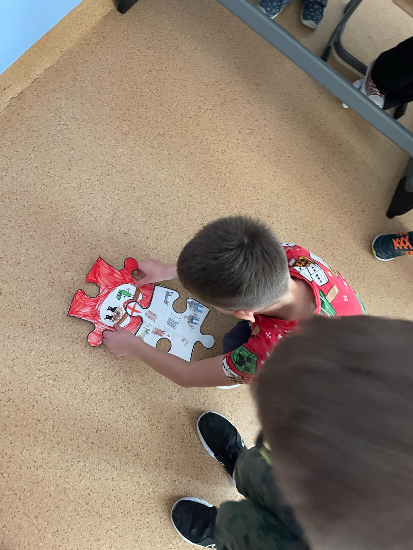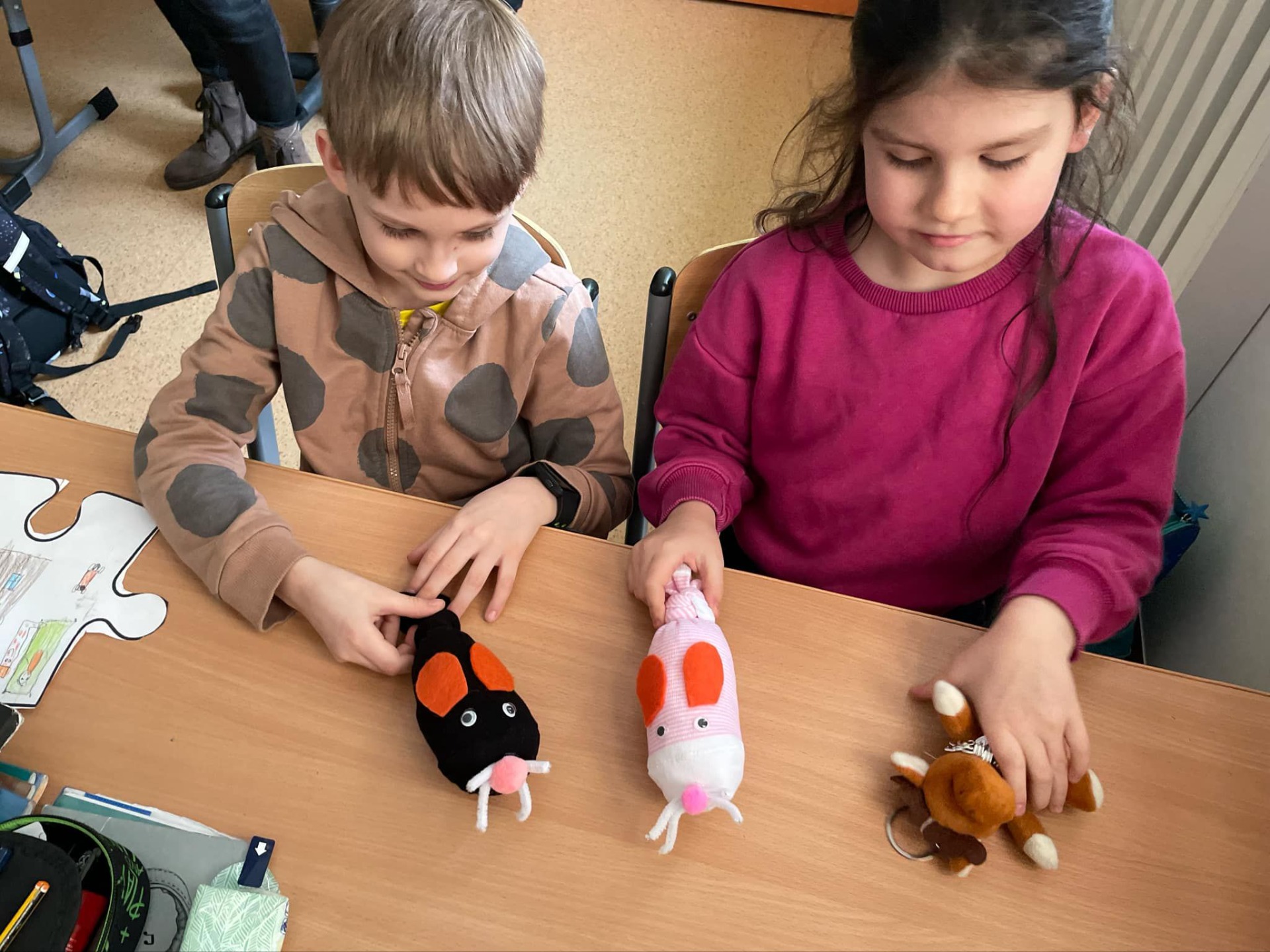 Po feriach klasa I rozpoczęła prace z lekturą w bardzo kreatywny sposób! Poniedziałkowy poranek okazał się dużym zaskoczeniem (po wejściu do klasy oczom uczniów ukazały się rozwieszone na sznurkach skarpetki! Było ich aż sto!) Wywołało to wiele zdziwienia, zaskoczenia i radości, a przede wszystkim znakomicie wprowadziło nas w nastrój czytanej lektury „Niesamowite przygody dziesięciu skarpetek”. Następnego dnia z kolei czekał na uczniów Escape Room i intensywna praca podsumowująca wiadomości z lektury: była praca wspólna, praca w grupach, łączenie puzzli w klasową pracę i na koniec niespodzianka - przygotowane przez panią skarpetkowe maskotki myszki w prezencie dla każdego ucznia.