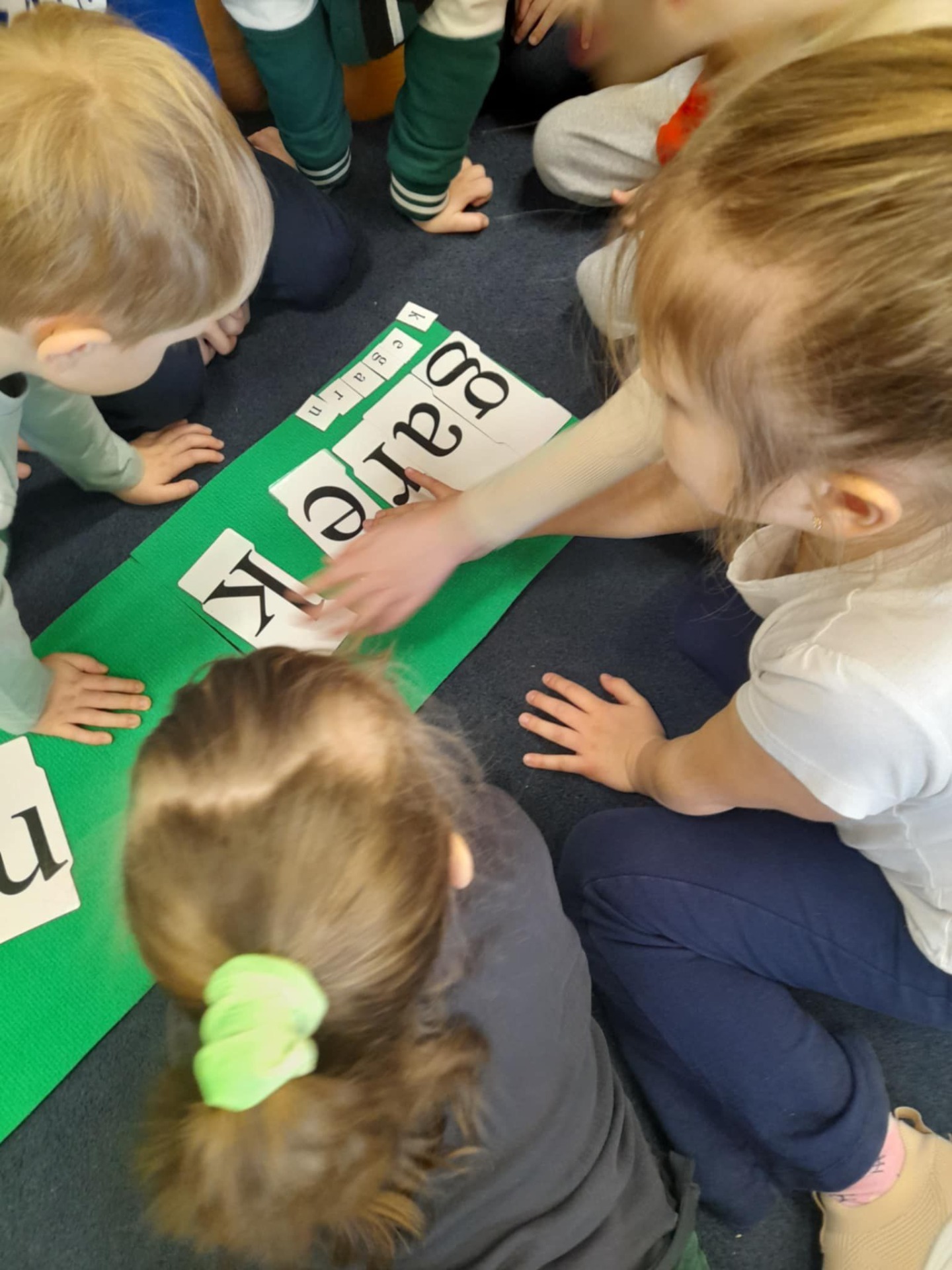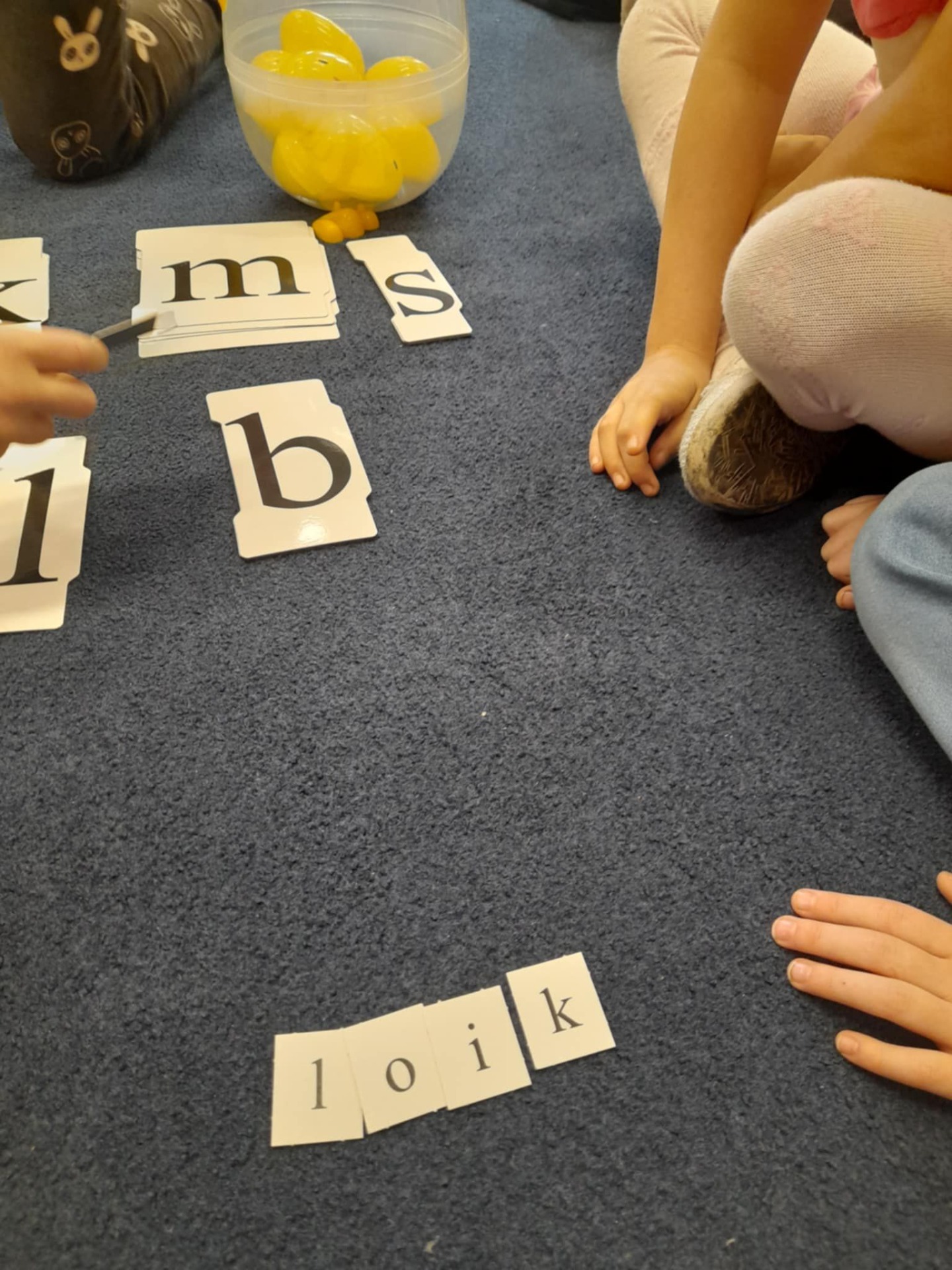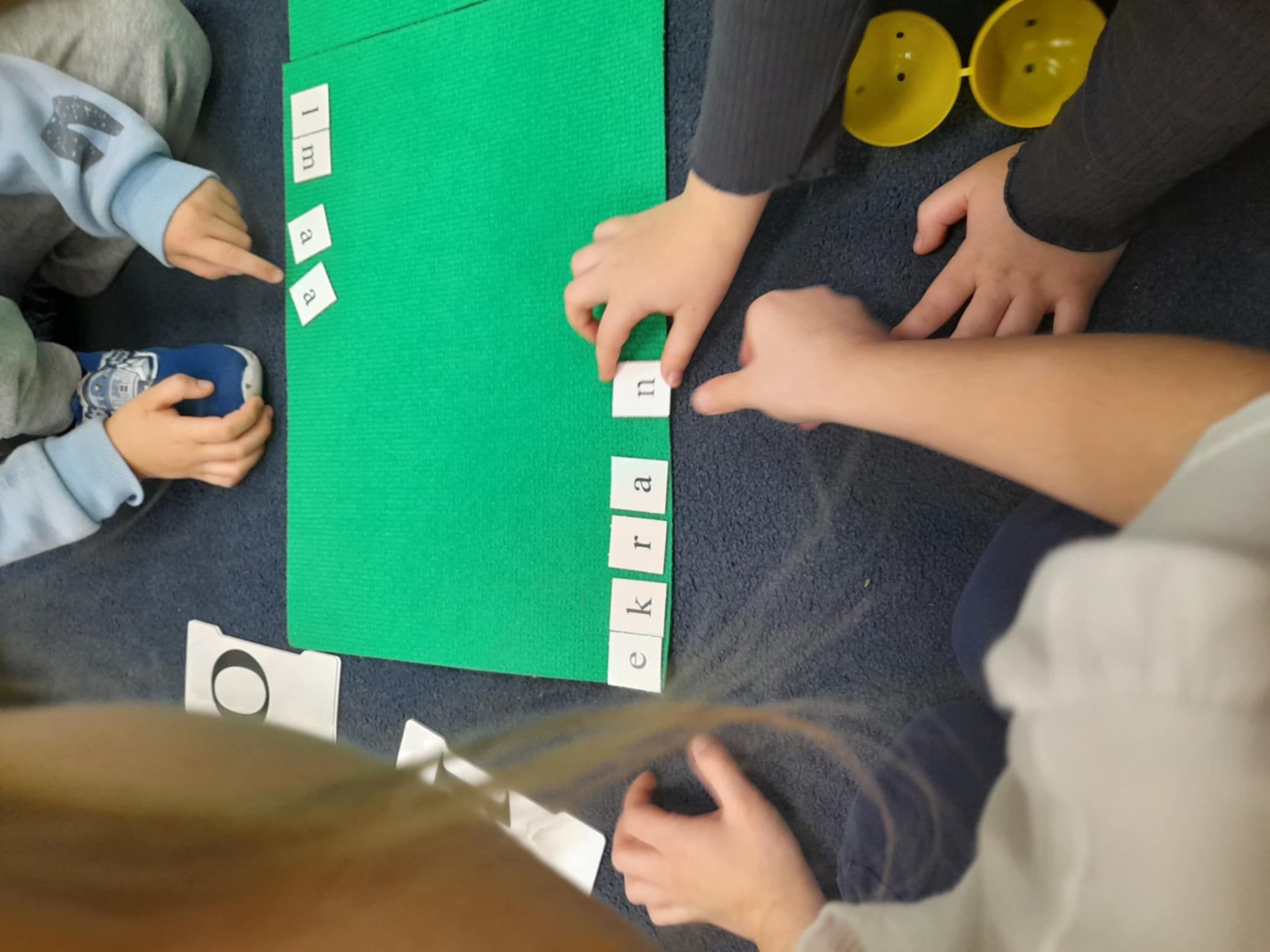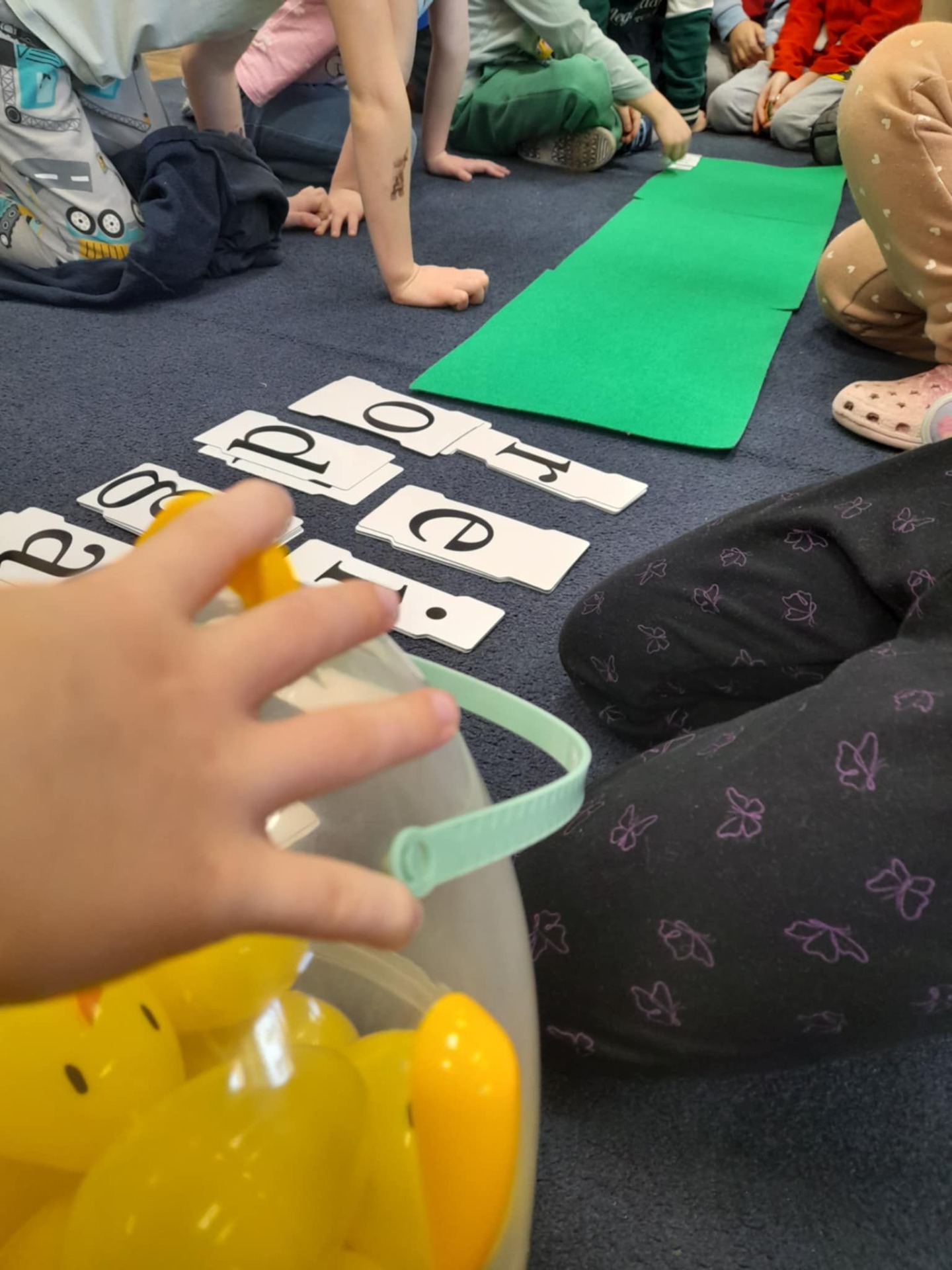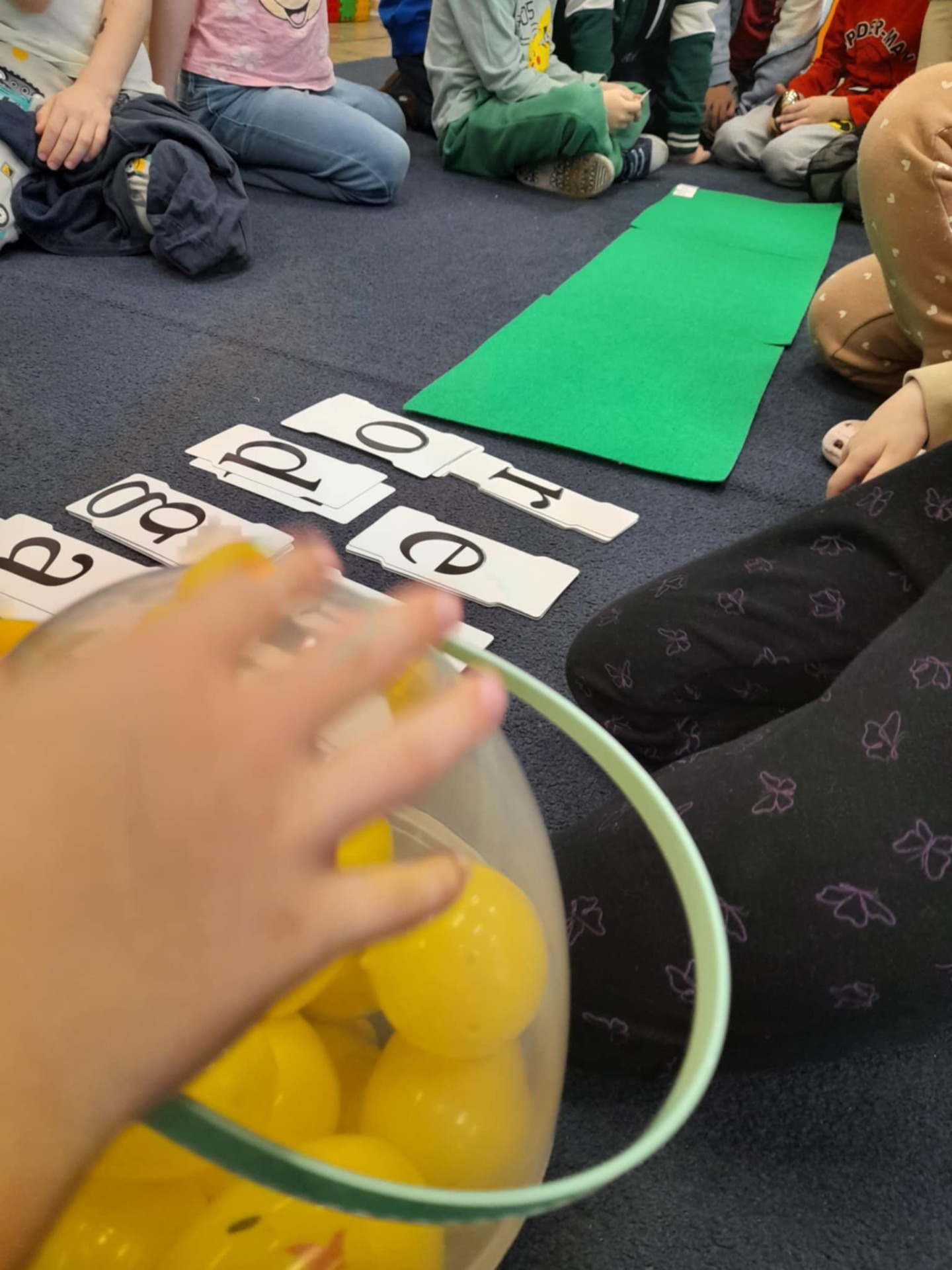 Pszczółki mają poważne zadanie, a jest nim literek rozpoznawanie. Nasze przedszkolaki nieustannie doskonalą swoje umiejętności, tym razem realizując temat: bajki, wspólnie odczarowały księgę zaklęć wróżki chrzestnej. A wraz z brzydkim kaczątkiem tworzyły wyrazy z ukrytych w jajeczkach liter.