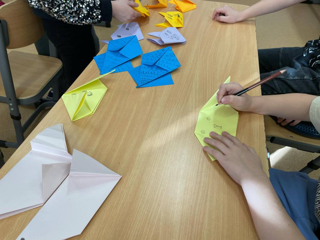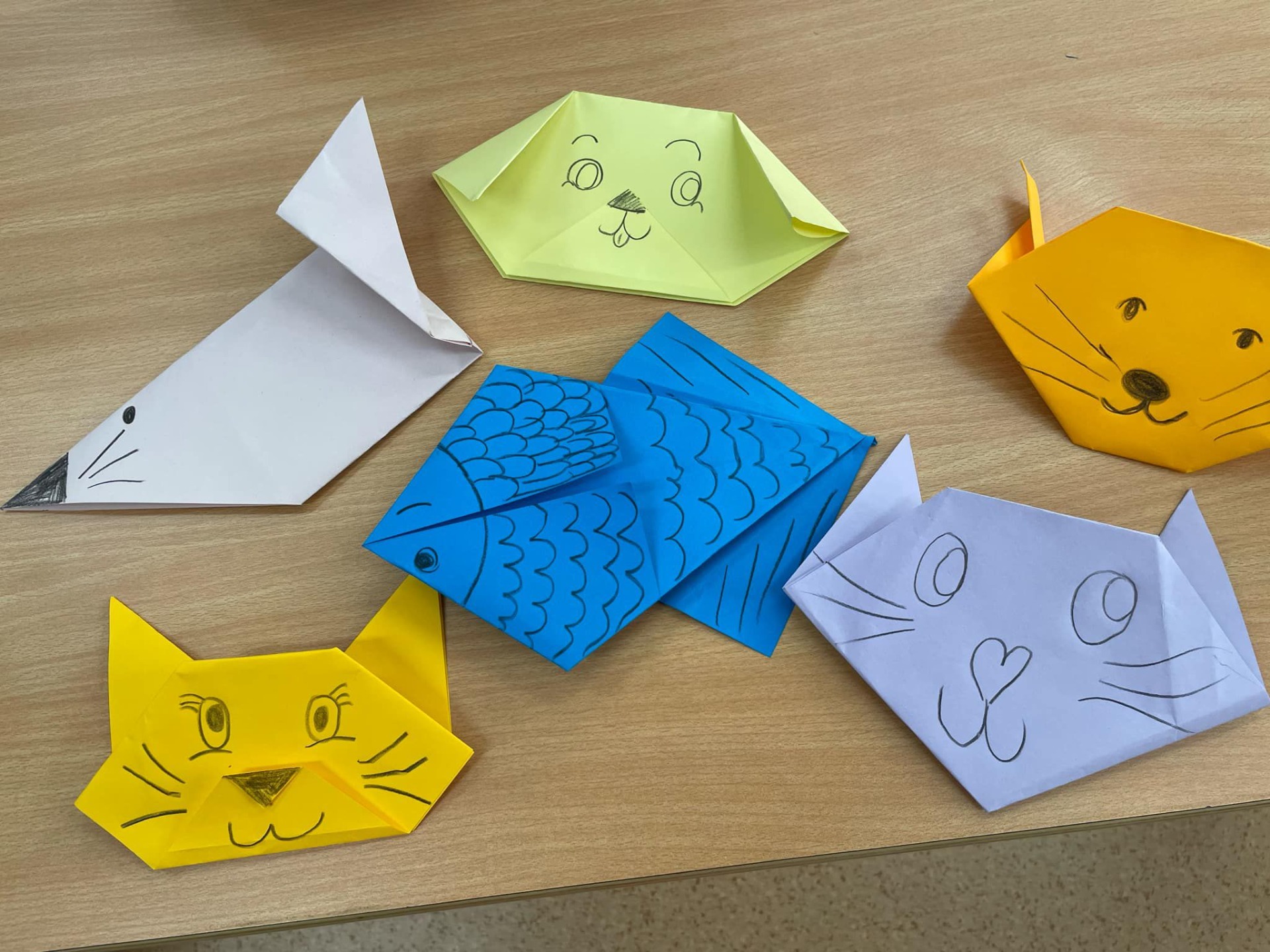 Na wtorkowych zajęciach plastycznych poznawaliśmy podstawowe techniki origami ćwicząc cierpliwość, precyzję i koncentrację. Pobudziliśmy wyobraźnię poprzez tworzenie zwierząt z papieru.