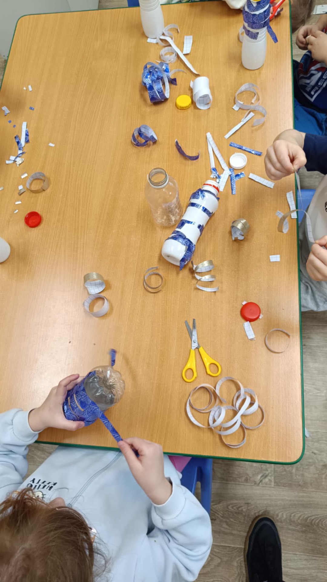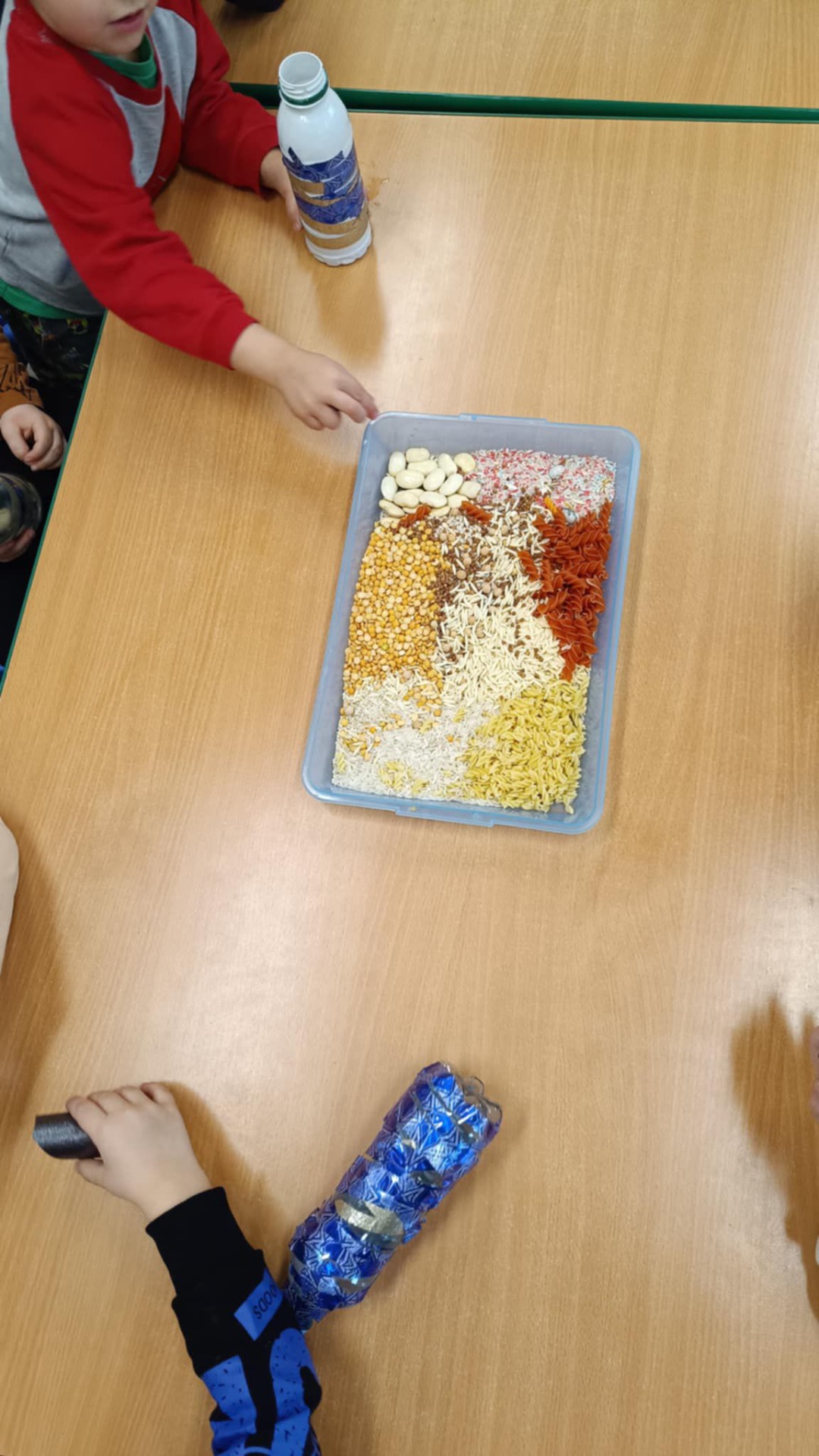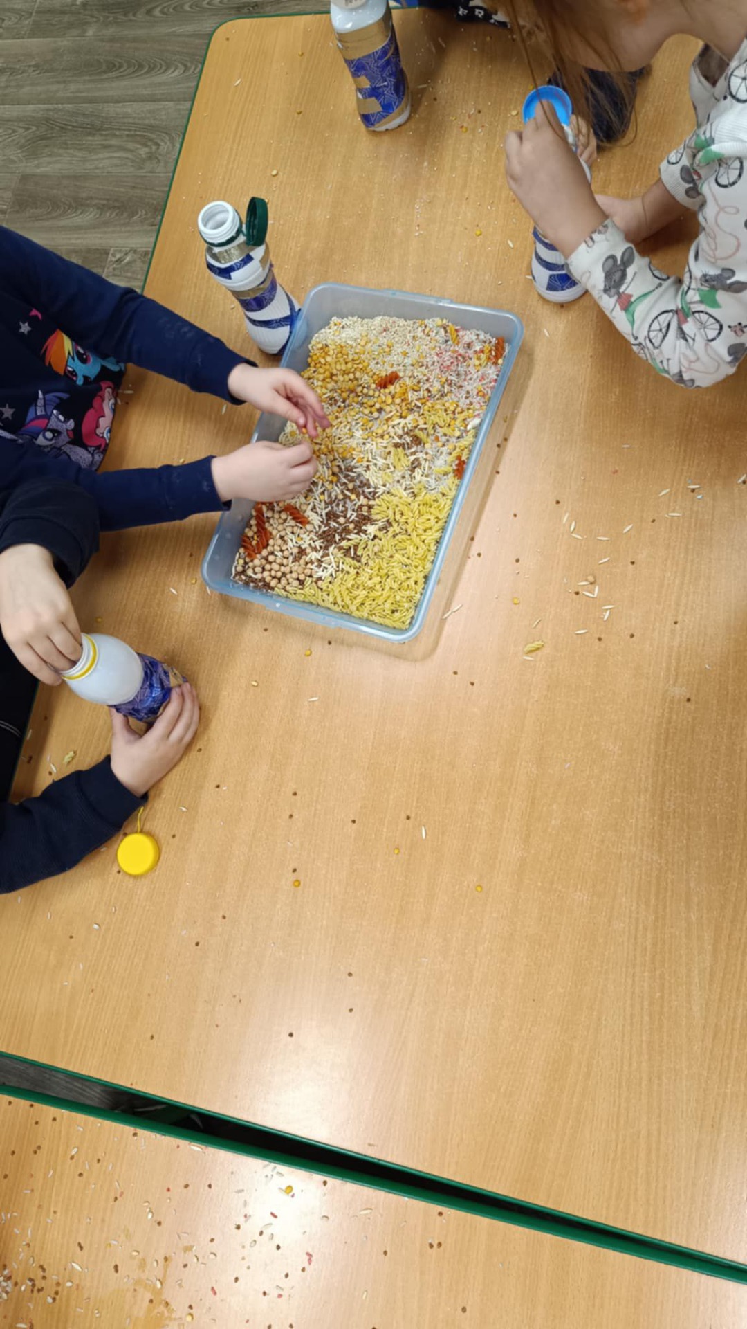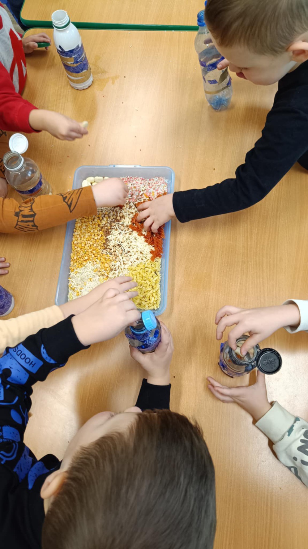 Wczoraj w grupie Misie dzieci miały okazję stworzyć własnoręcznie grzechotki. Najpierw maluchy zabrały się za ozdabianie pustych buteleczek. Po ozdobieniu grzechotek, dzieci przeszły do następnego etapu – napełniania buteleczek różnymi materiałami, takimi jak kasza, fasola, ryż i inne drobne produkty. Maluchy eksperymentowały z ilościami napełnienia, sprawdzając, jak różne materiały wpływają na dźwięk ich instrumentów.