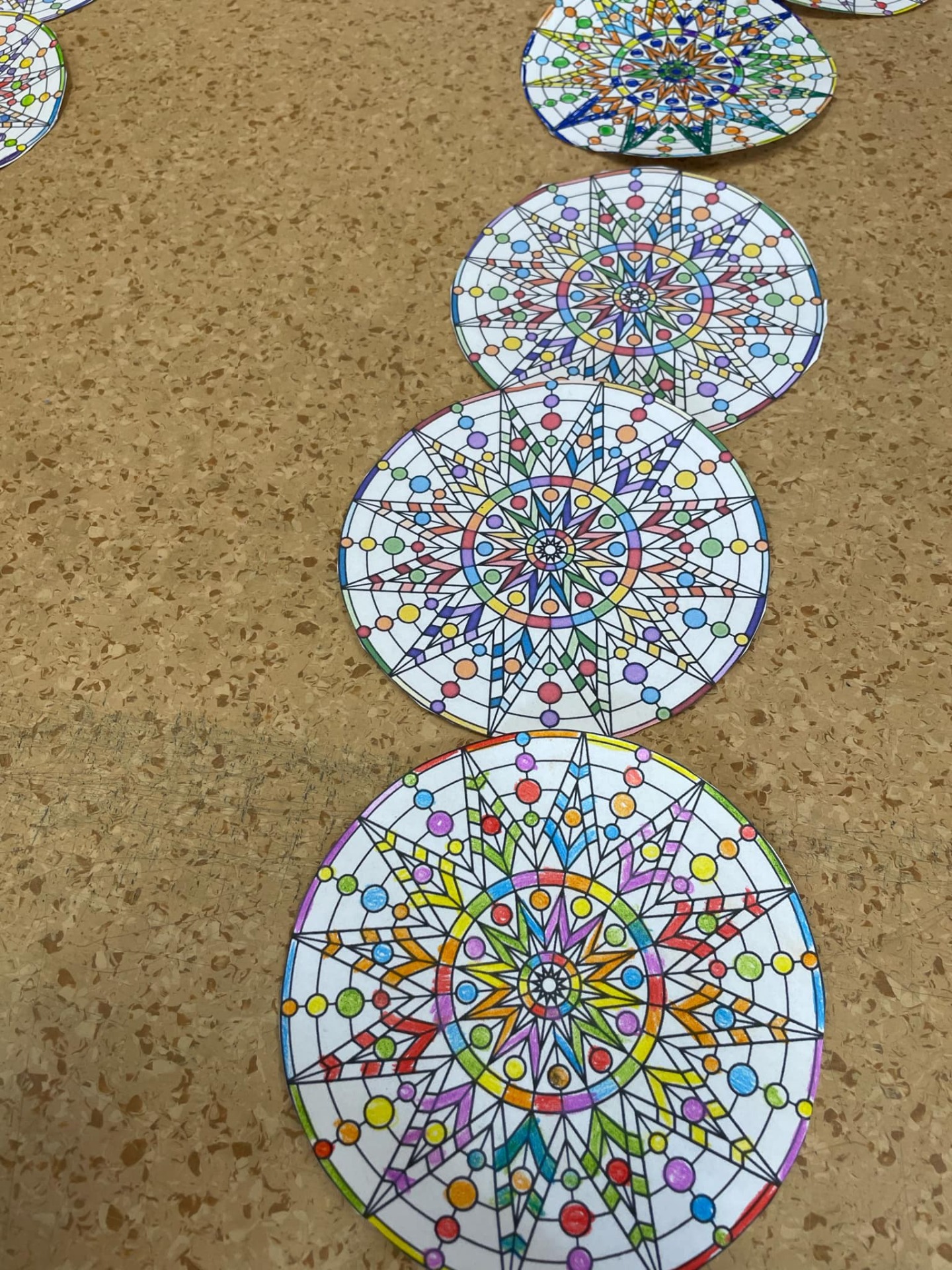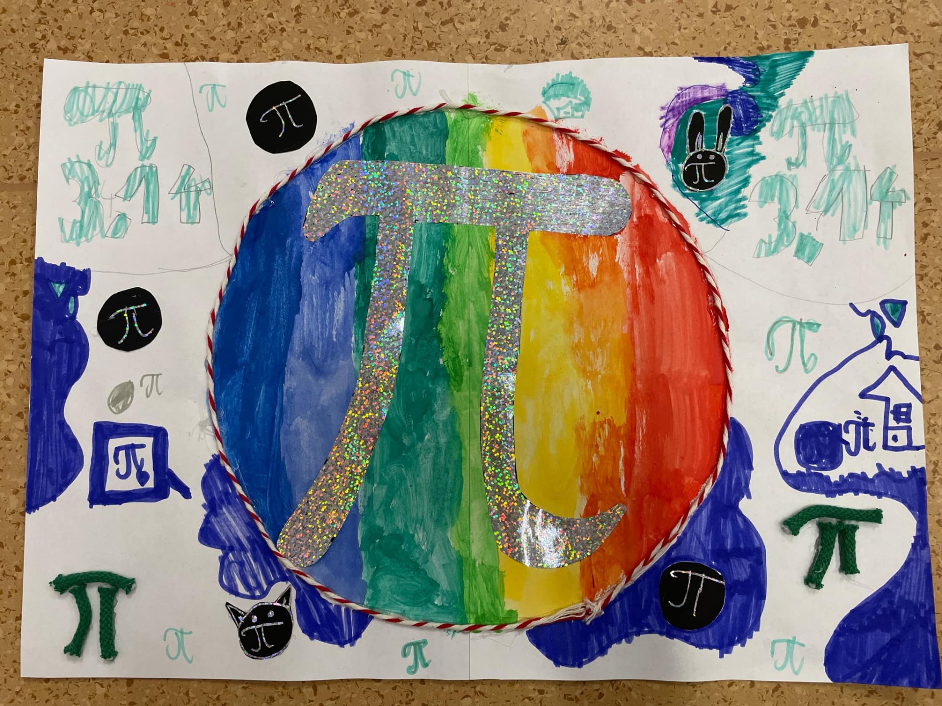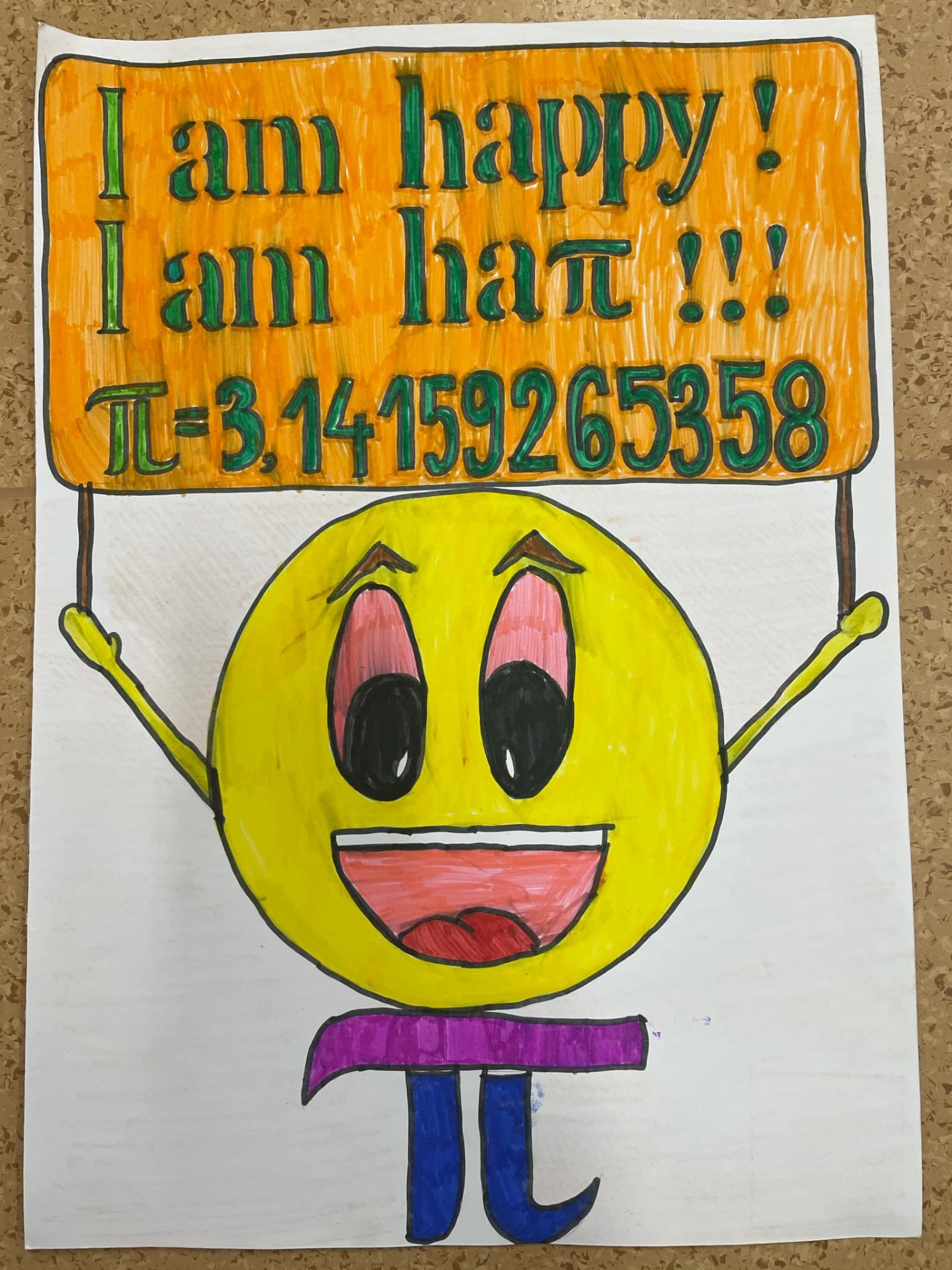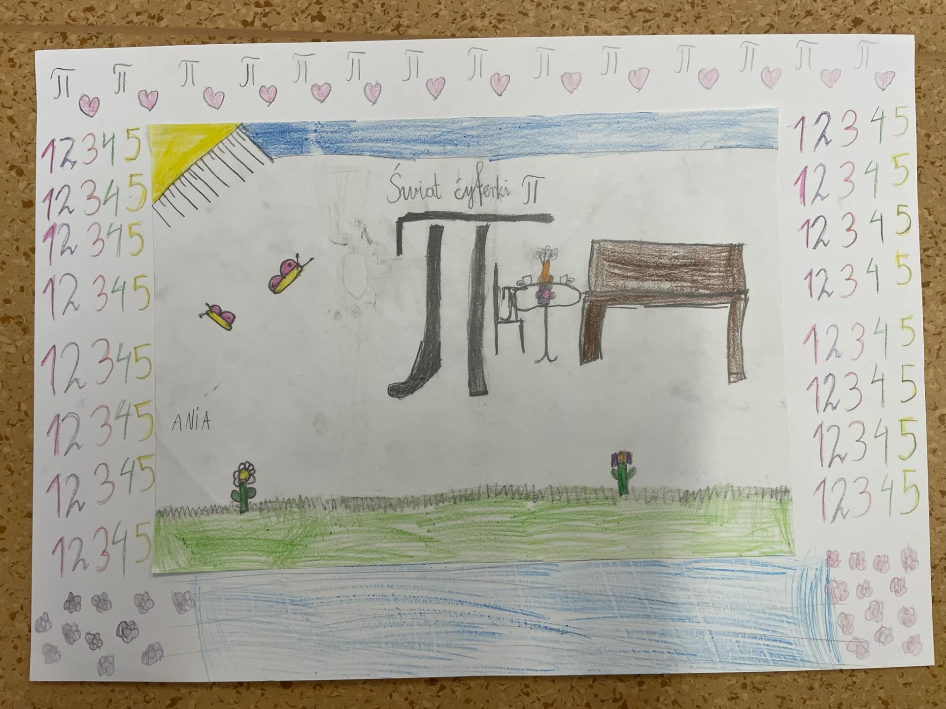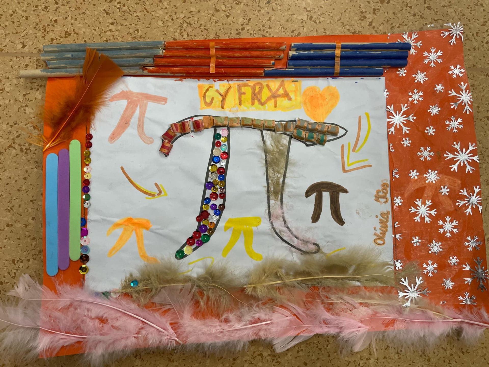 Uczniowie, którzy wzięli udział w konkursie, zaprezentowali swoje prace plastyczne inspirowane liczbą Pi.
