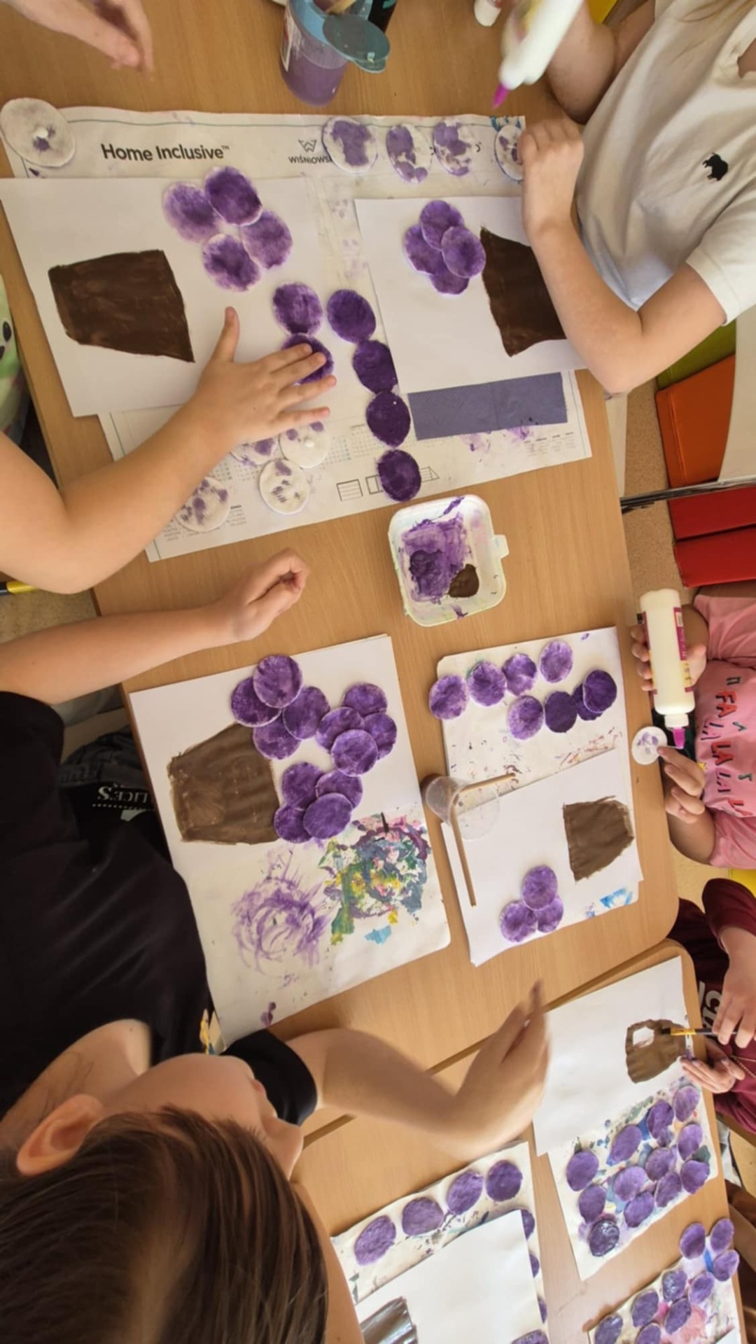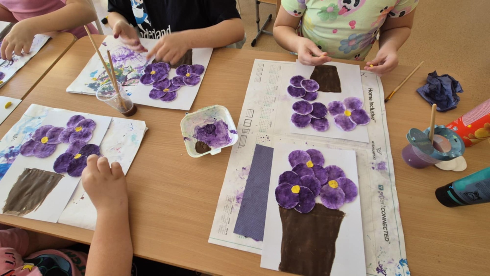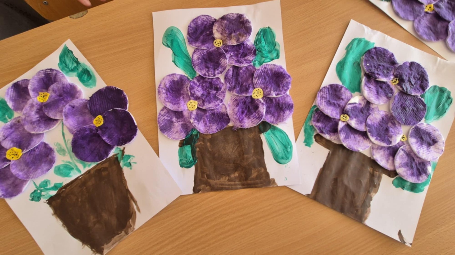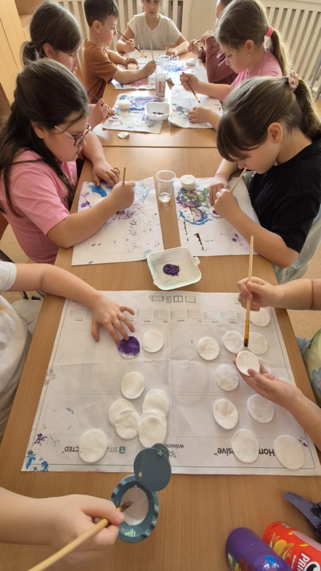 Na świetlicowych zajęciach plastycznych pracowaliśmy dziś techniką mieszaną. Stworzyliśmy fiołki z wacików kosmetycznych, plasteliny oraz przy pomocy farb. Zapraszamy do galerii.
