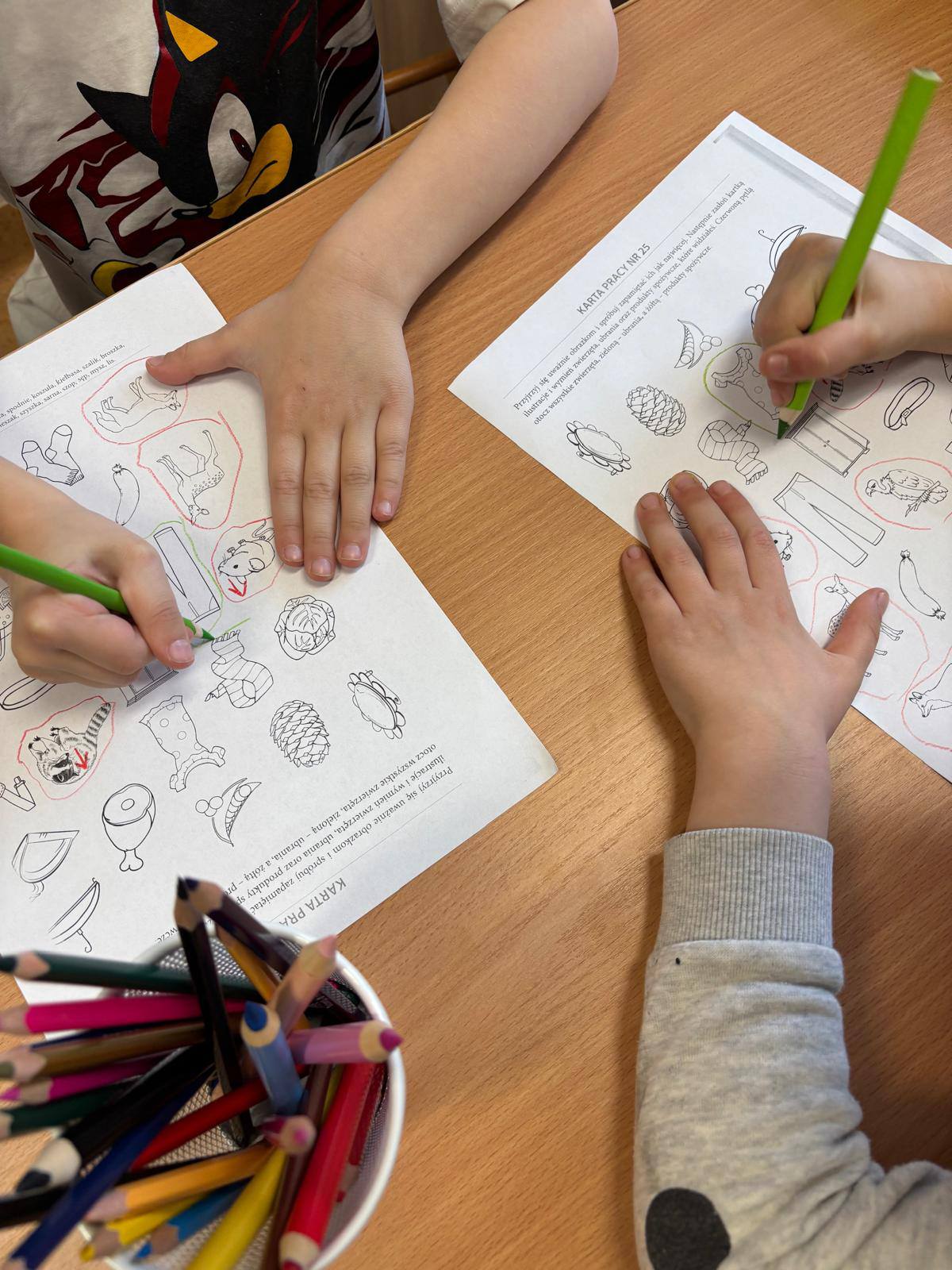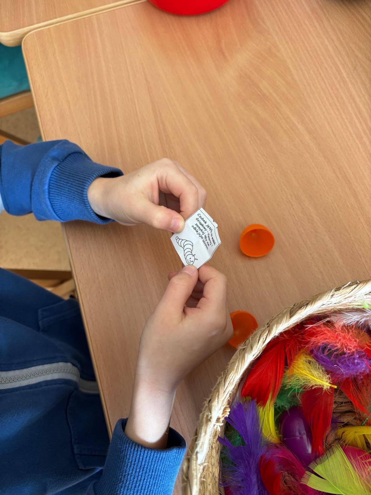 Uczniowie uczestniczyli w zajęciach logopedycznych o tematyce wiosennej. Podczas ćwiczeń dzieci nie tylko doskonaliły wymowę, ale także pracowały nad podstawowymi funkcjami wspierającymi rozwój mowy, takimi jak prawidłowe oddychanie, sprawność narządów artykulacyjnych, percepcja słuchowa oraz motoryka mała.