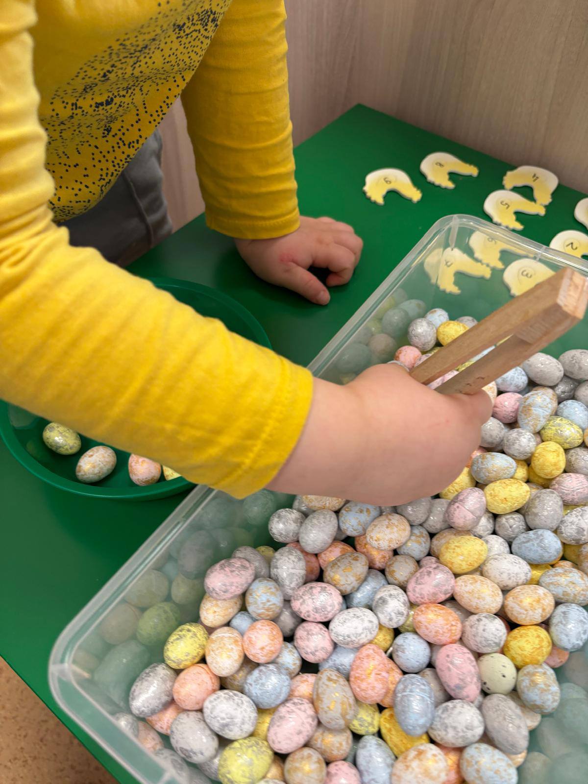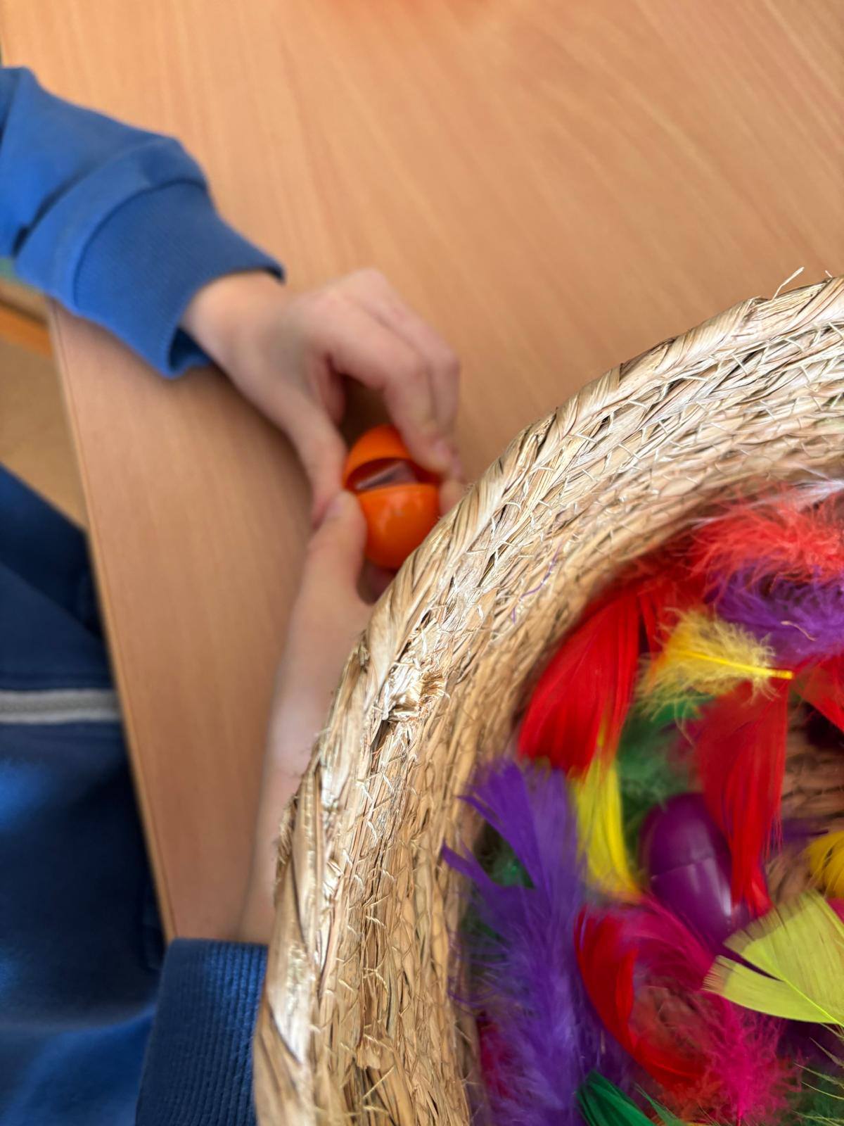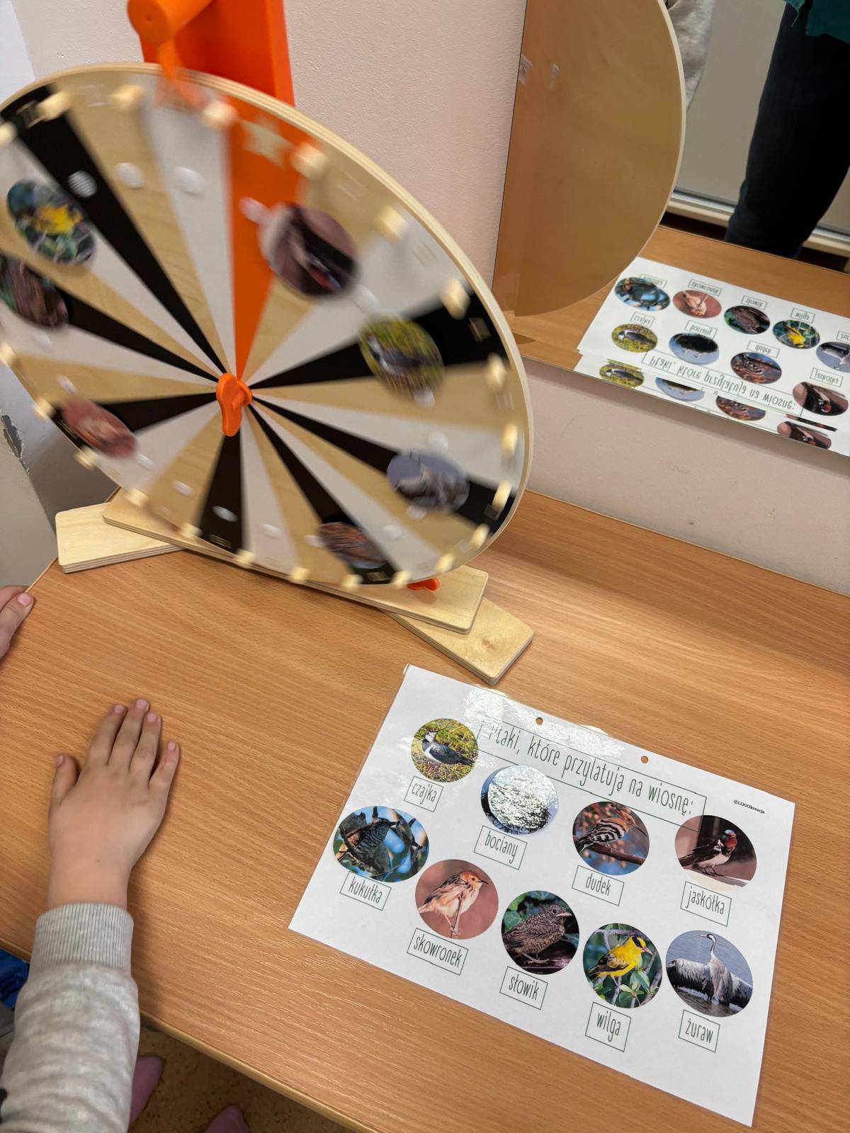 W trakcie zajęć dzieci poznawały nazwy ptaków powracających do Polski na wiosnę. Ćwiczyły również rytmizację, grając na bębenku, oraz rozwijały umiejętność dzielenia wyrazów na sylaby.