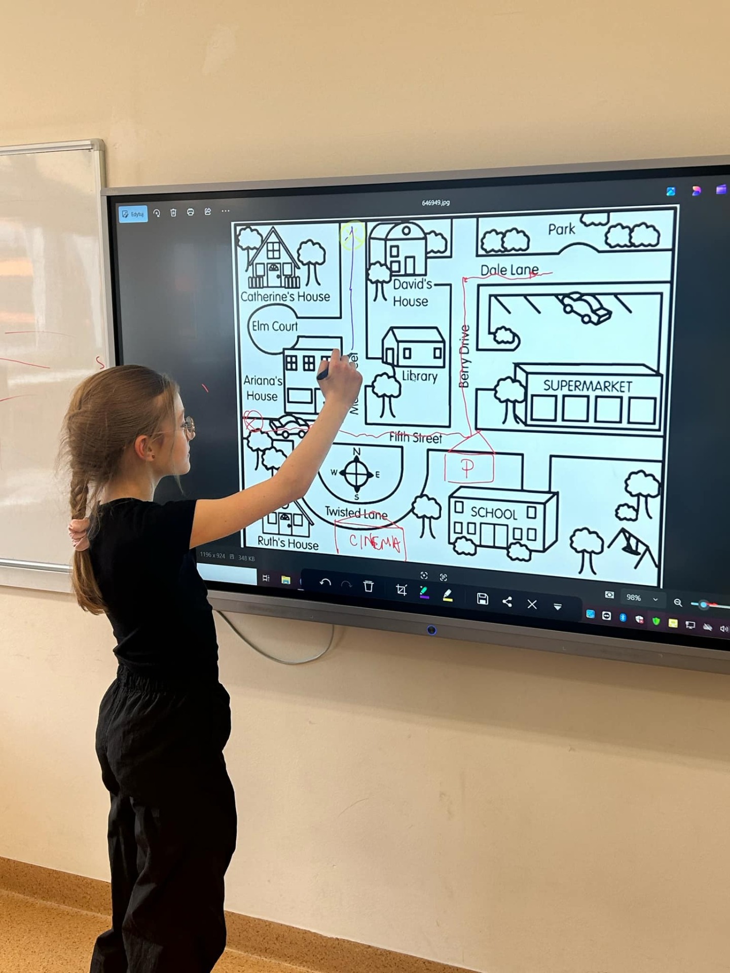 Gra miejska w szkole oraz wykorzystanie tablicy interaktywnej to idealny sposób na naukę kierunków w języku obcym! Uczniowie klasy 5 już wiedzą jak wskazywać drogę i podążać za wskazówkami, a Ty ??? Czy wiesz jak powiedzieć “skręć w lewo “ w języku angielskim?