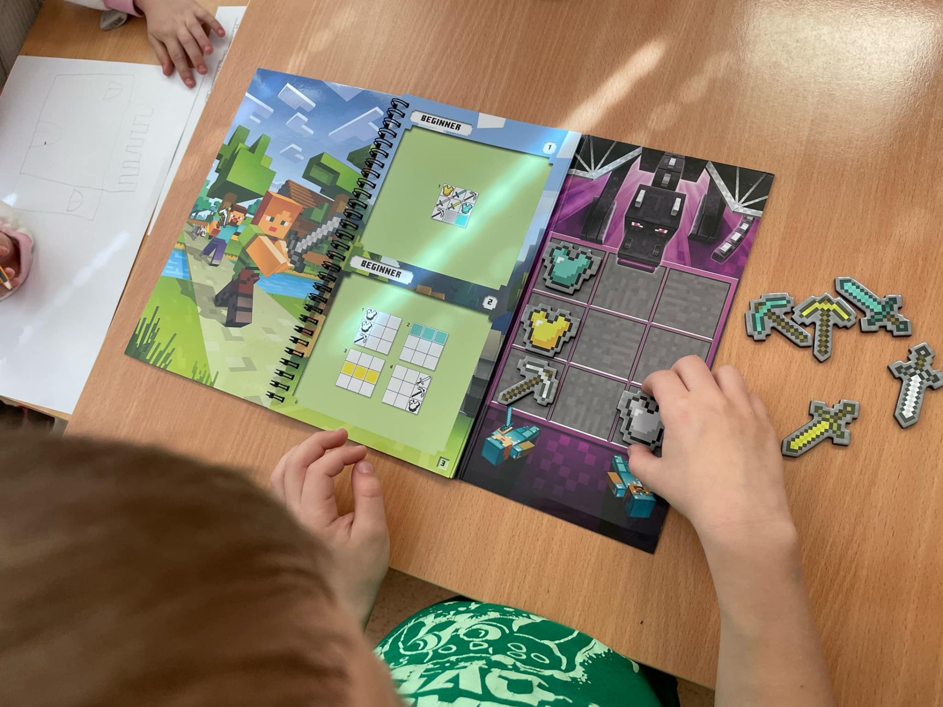 Podczas zajęć pozalekcyjnych uczniowie wzięli udział w Kreatywnym Treningu Umysłu, łącząc świat popularnej gry Minecraft z rozwijaniem kompetencji poznawczych – takich jak uważność, spostrzegawczość, logiczne myślenie i kreatywność. Dzieci losowały zadania związane z jedną z 10 tematycznych krain stworzenia świata Minecrafta. Każda kraina zawierała konkretne wyzwanie konstrukcyjne i problem do rozwiązania, rozwijając przy tym umiejętność planowania, współpracy i twórczego myślenia. Druga część zajęć opierała się na grze magnetycznej w tematyce Minecraft. Ćwiczenie rozwijało koncentrację, koordynację wzrokową oraz zdolność do logicznego wnioskowania. Zajęcia przebiegły w atmosferze twórczej zabawy, a dzieci aktywnie uczestniczyły w każdej części spotkania, z dużym zaangażowaniem i pomysłowością.