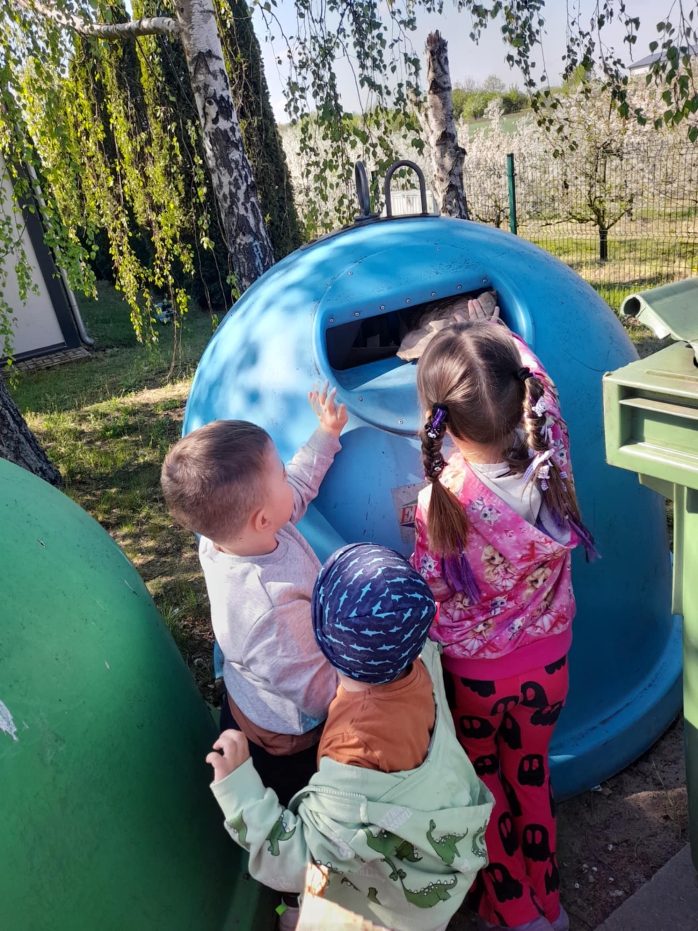Jakieś potwory, czy jakieś Trole wysypały śmieci pod naszym przedszkolem! Tam gdzie wczoraj było boisko, przedszkolaki znalazły wielkie śmietnisko! Nasze dzieci o świat czysty zadbały i wspólnie śmieci wysprzątały. I znów pod przedszkolem czyste jest wszystko, więc cieszą się wszyscy że mamy boisko!