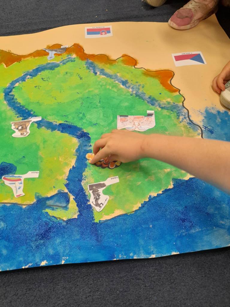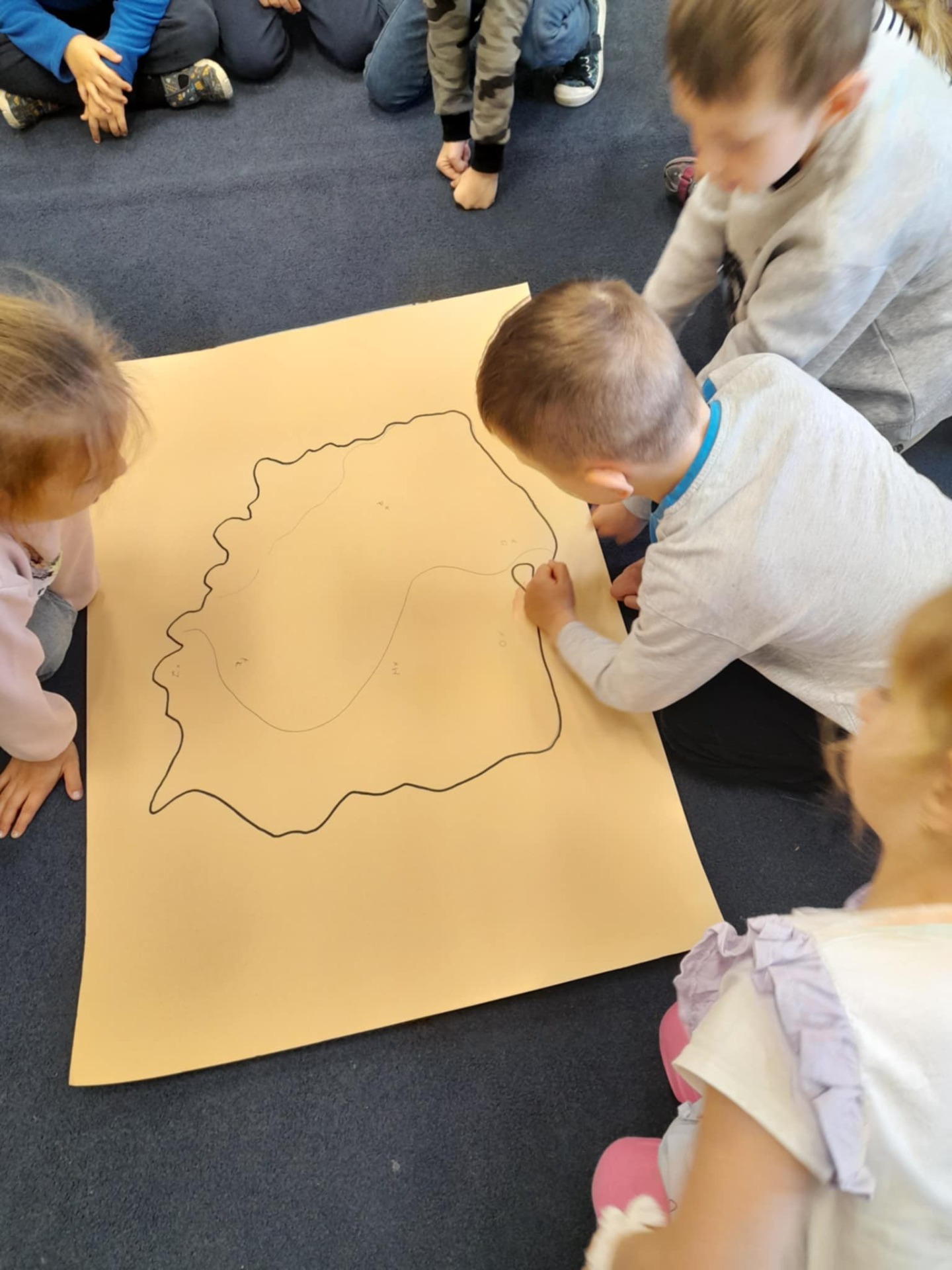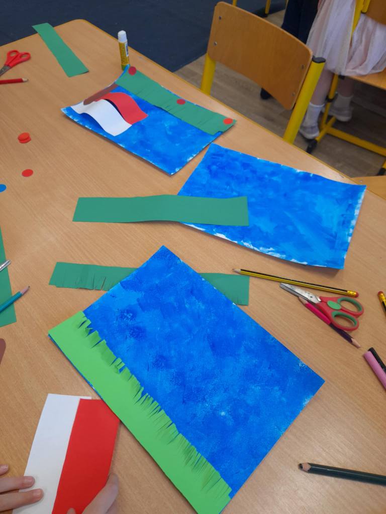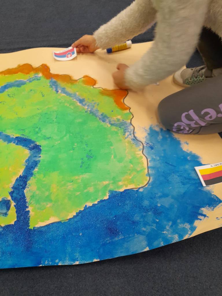 Powiewa flaga gdy wiatr się zerwie a na tej fladze biel jest i czerwień ... Dzieci z grupy Pszczółki poznawały legendy polskie, oraz symbole narodowe. Dzięki pracy zespolowej Pszczółki przygotowany mapę Polski, zaznaczyły na niej góry, jeziora i Wisłę. Nie zapomniały też o morzu Bałtyckim i naszych siedmiu sąsiadach.
