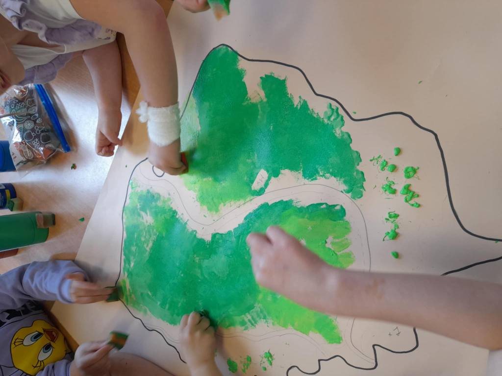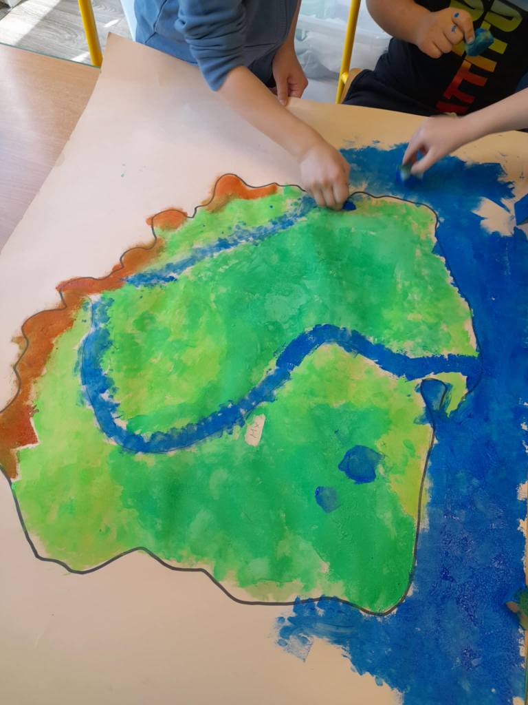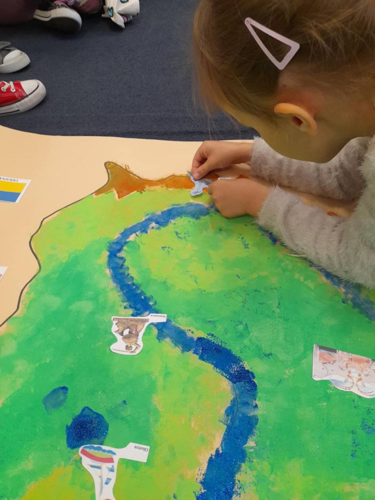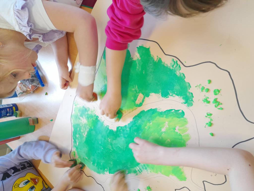 Powiewa flaga gdy wiatr się zerwie a na tej fladze biel jest i czerwień ... Dzieci z grupy Pszczółki poznawały legendy polskie, oraz symbole narodowe. Dzięki pracy zespolowej Pszczółki przygotowany mapę Polski, zaznaczyły na niej góry, jeziora i Wisłę. Nie zapomniały też o morzu Bałtyckim i naszych siedmiu sąsiadach.