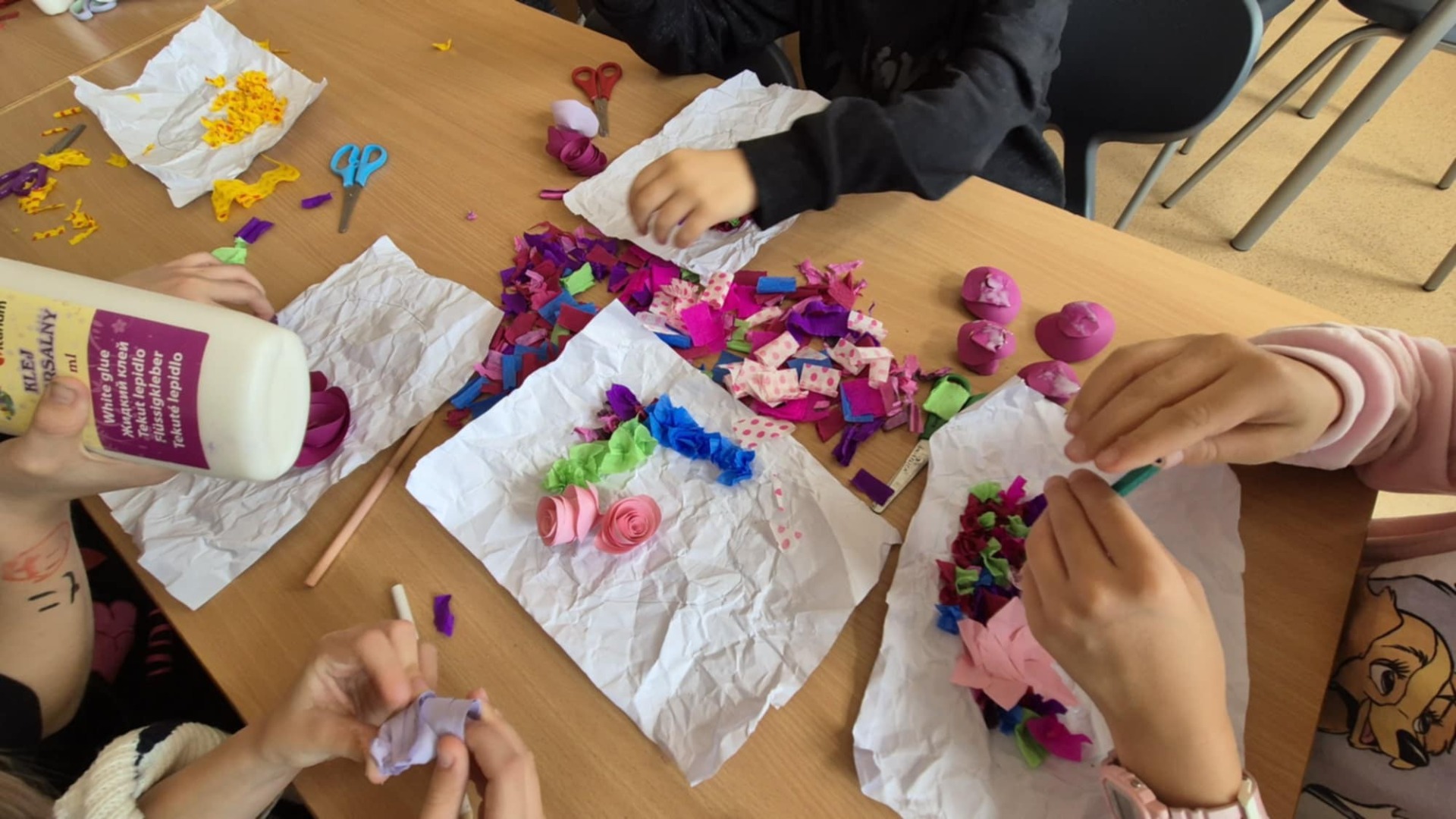 Zaangażowanie dzieci na zajęciach plastycznych było dziś zdecydowanie większe niż zazwyczaj. Wszystko to, wynikało z faktu, że prace, które wykonywaliśmy, były przeznaczone dla naszych mam. Uczniowie stworzyli piękne bukiety, które podarują z okazji Dnia Matki. To były zajęcia pełne ciepłych i miłych emocji. ❤️