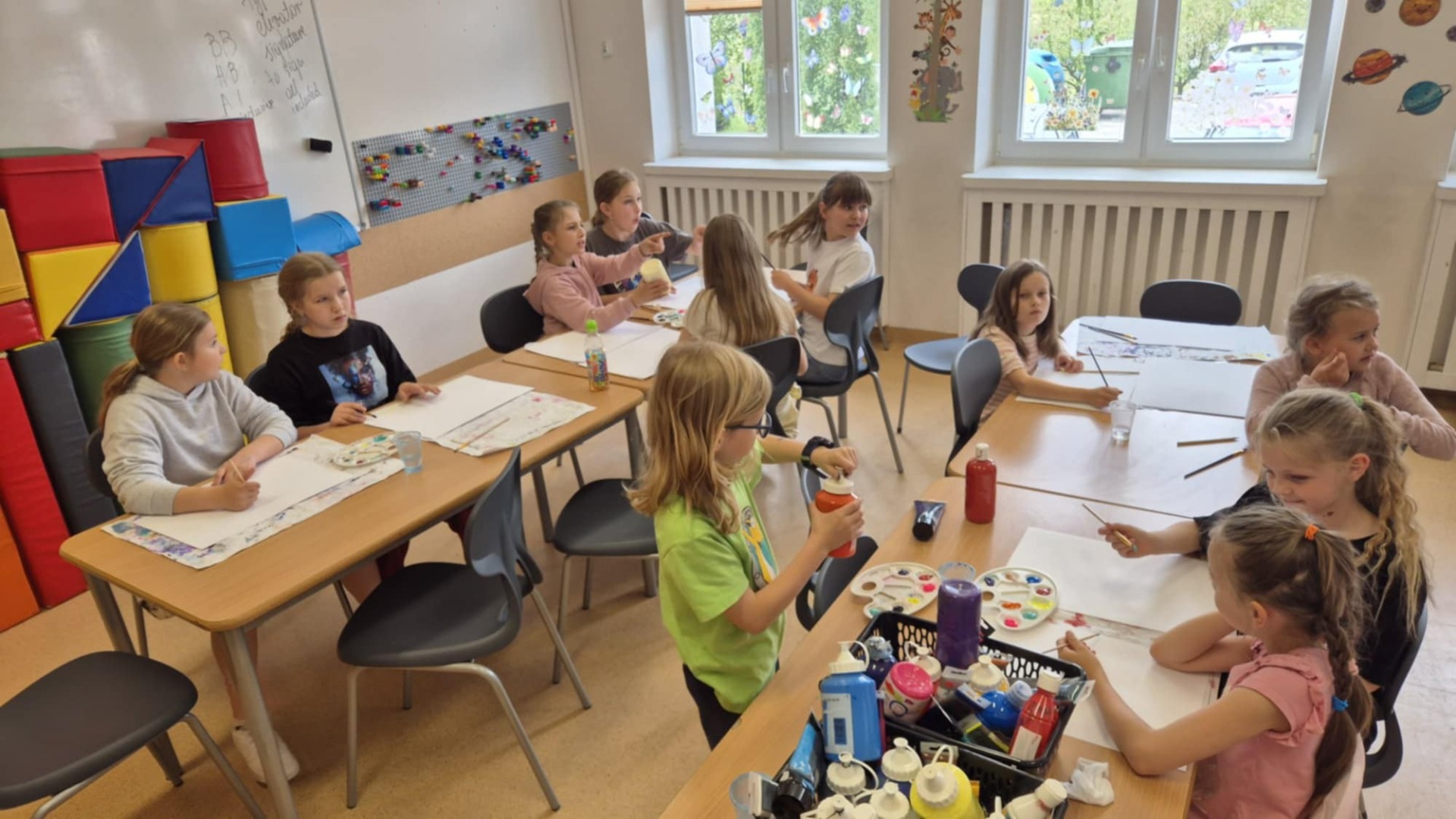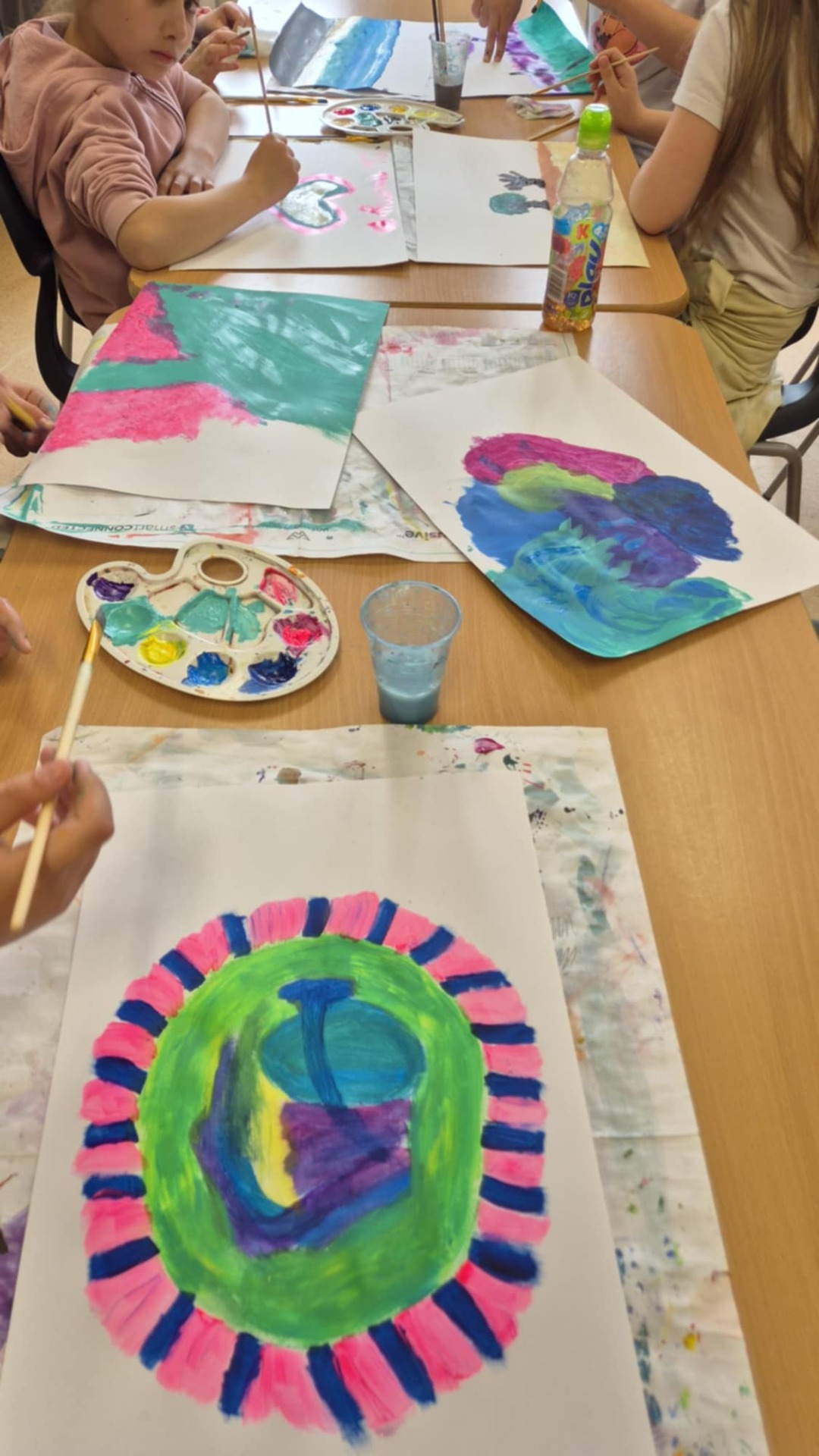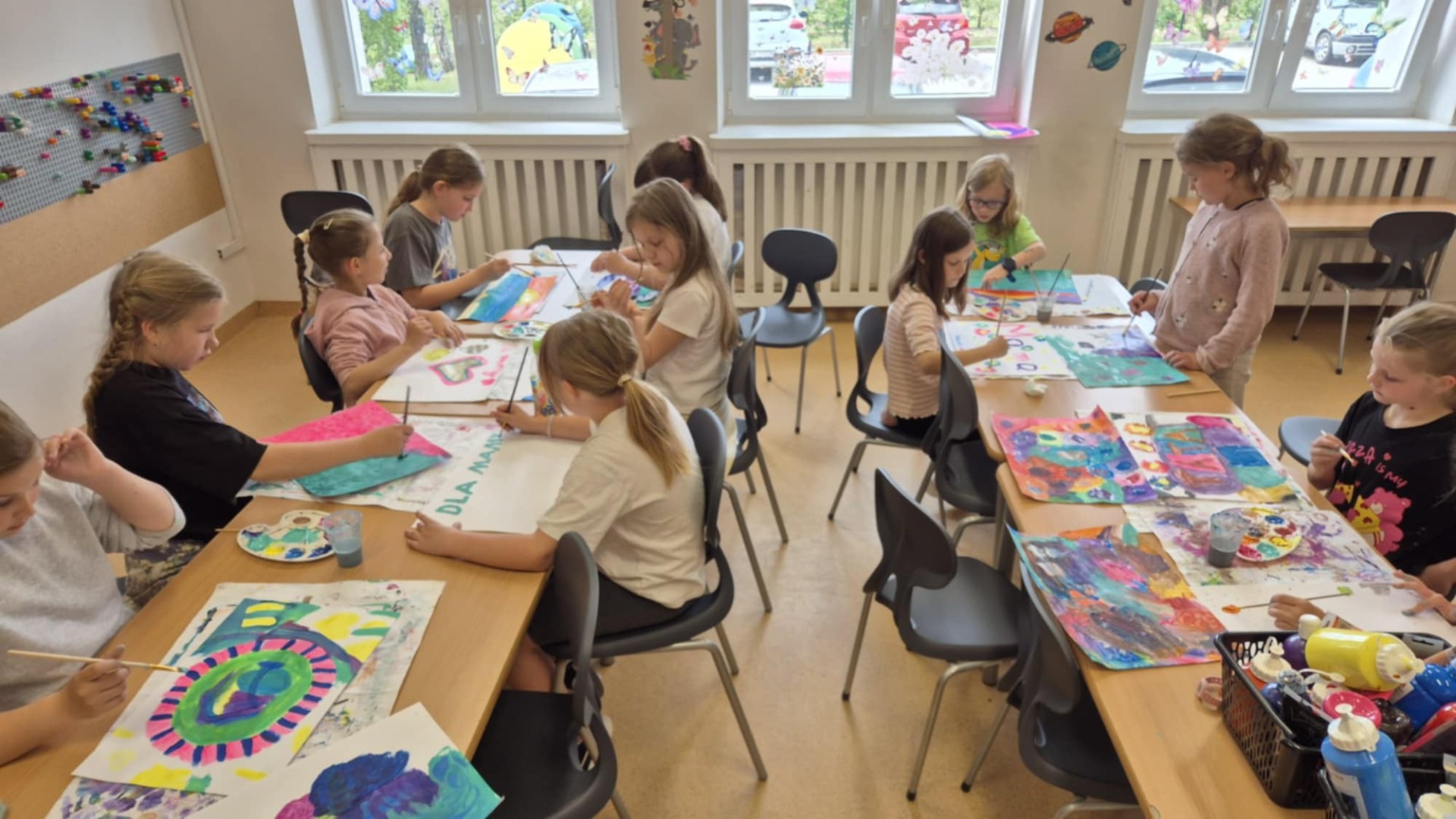 Podczas zajęć plastycznych malowaliśmy farbami do muzyki. Wspólnie wybierane utwory były inspiracją do wykonania prac.
