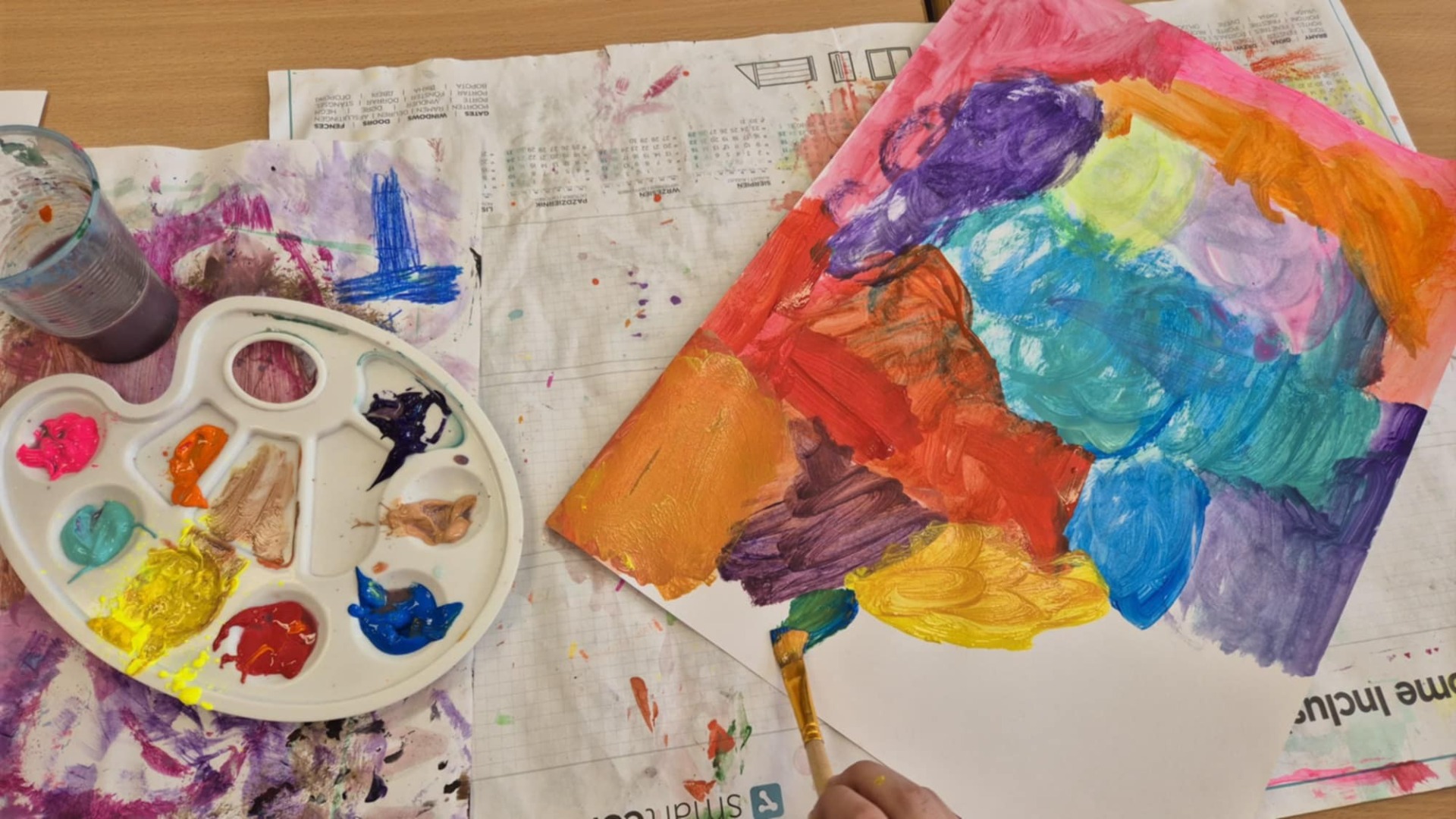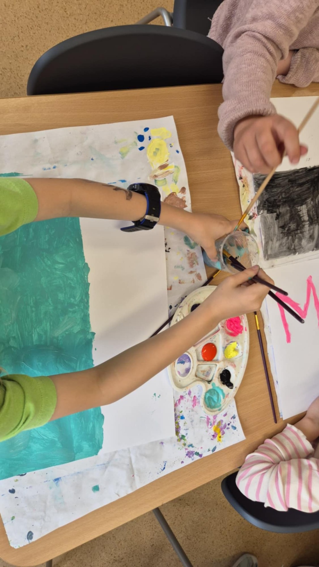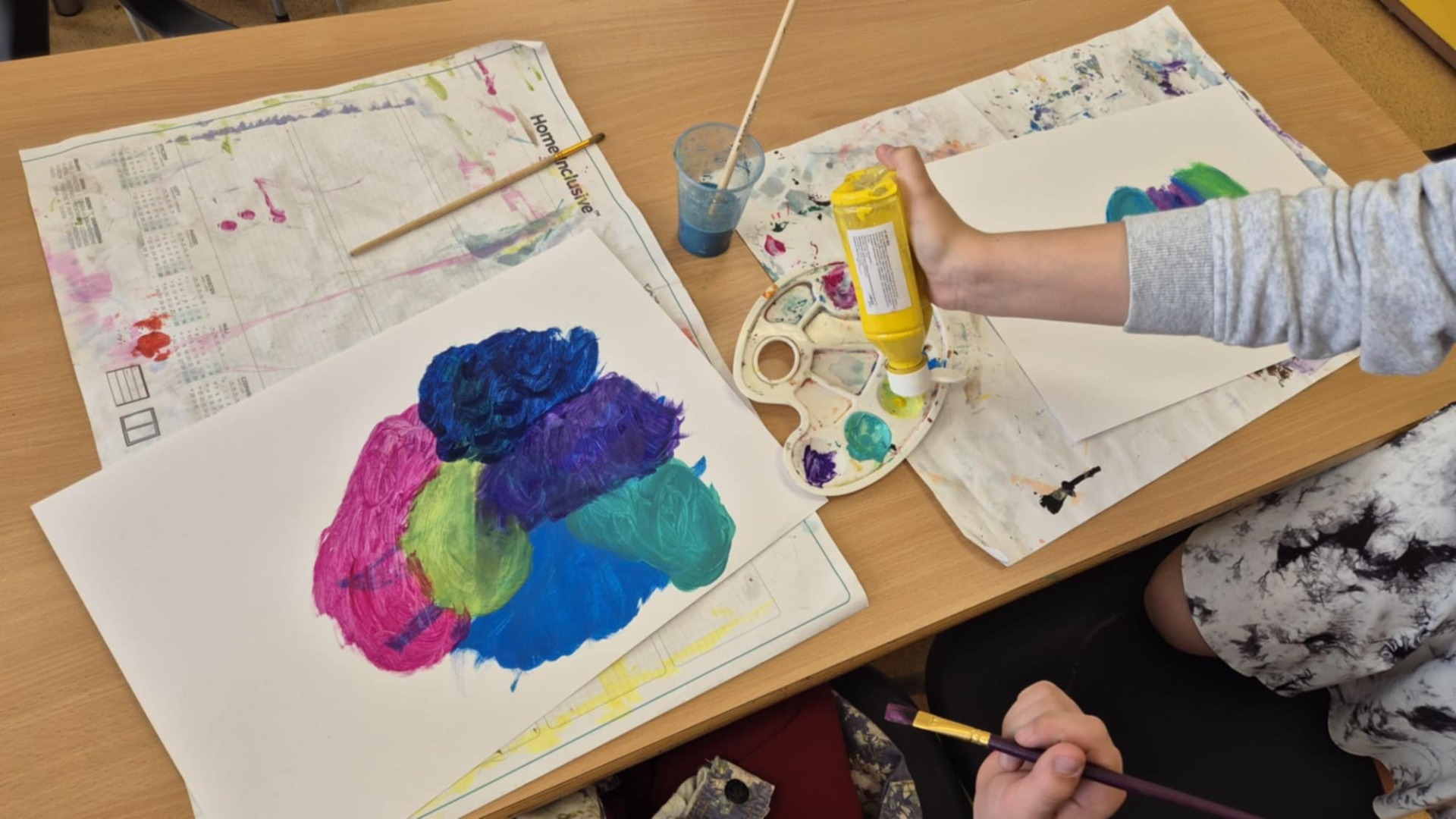 Podczas zajęć plastycznych malowaliśmy farbami do muzyki. Wspólnie wybierane utwory były inspiracją do wykonania prac.