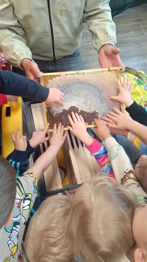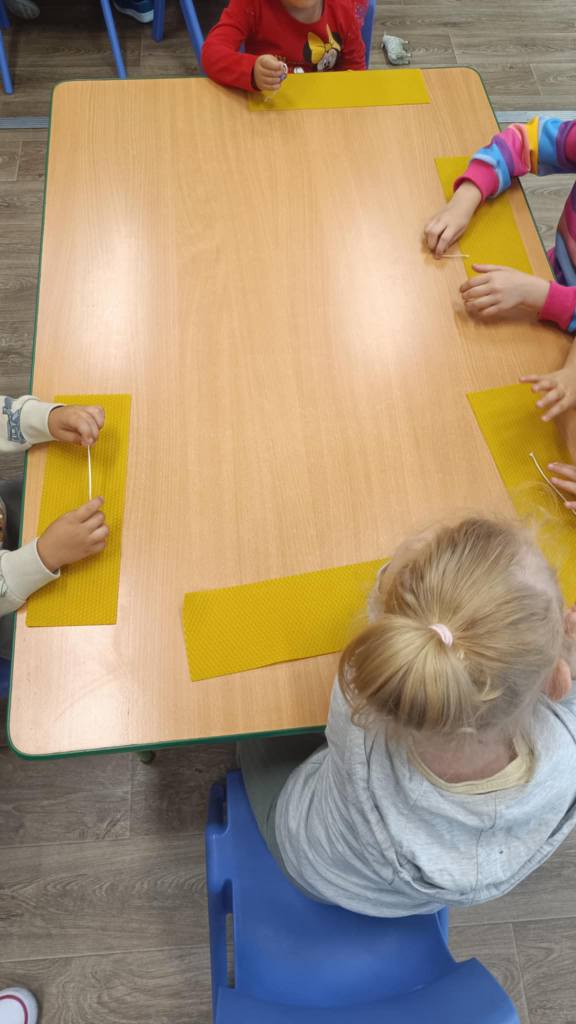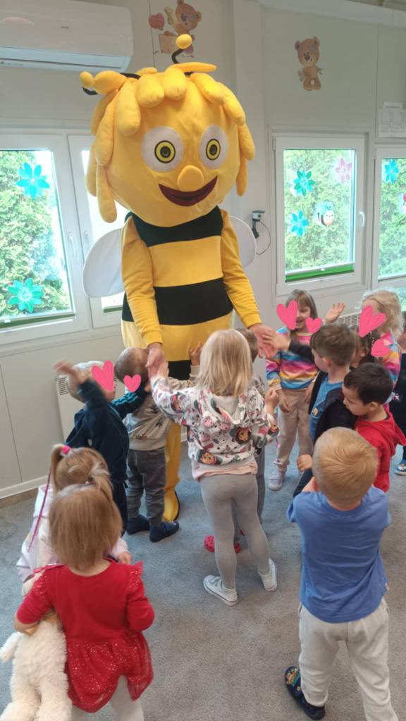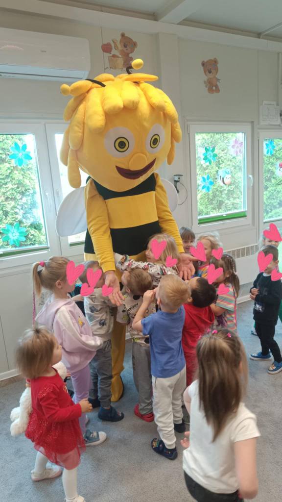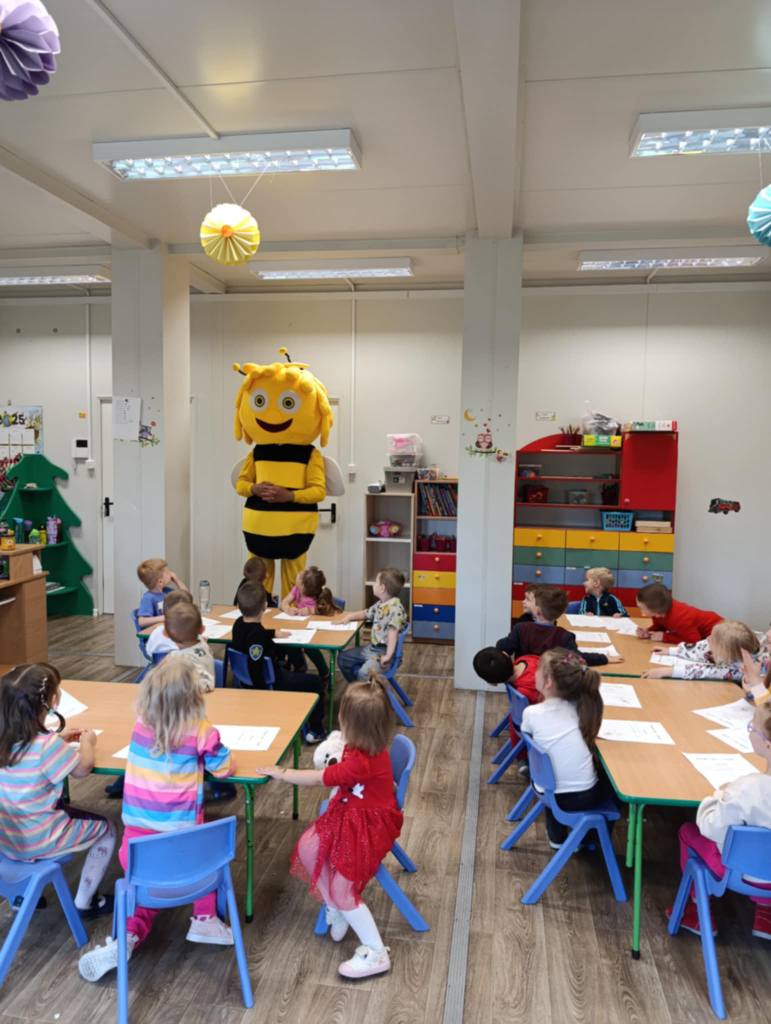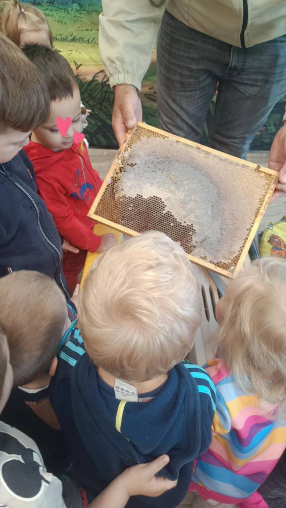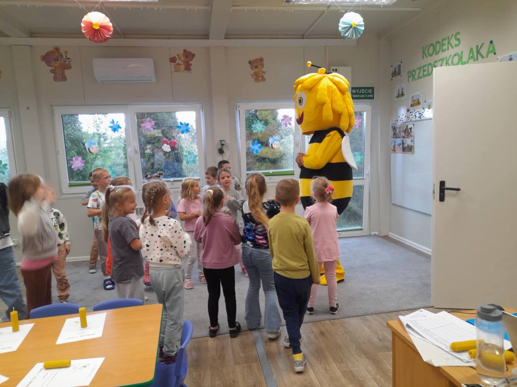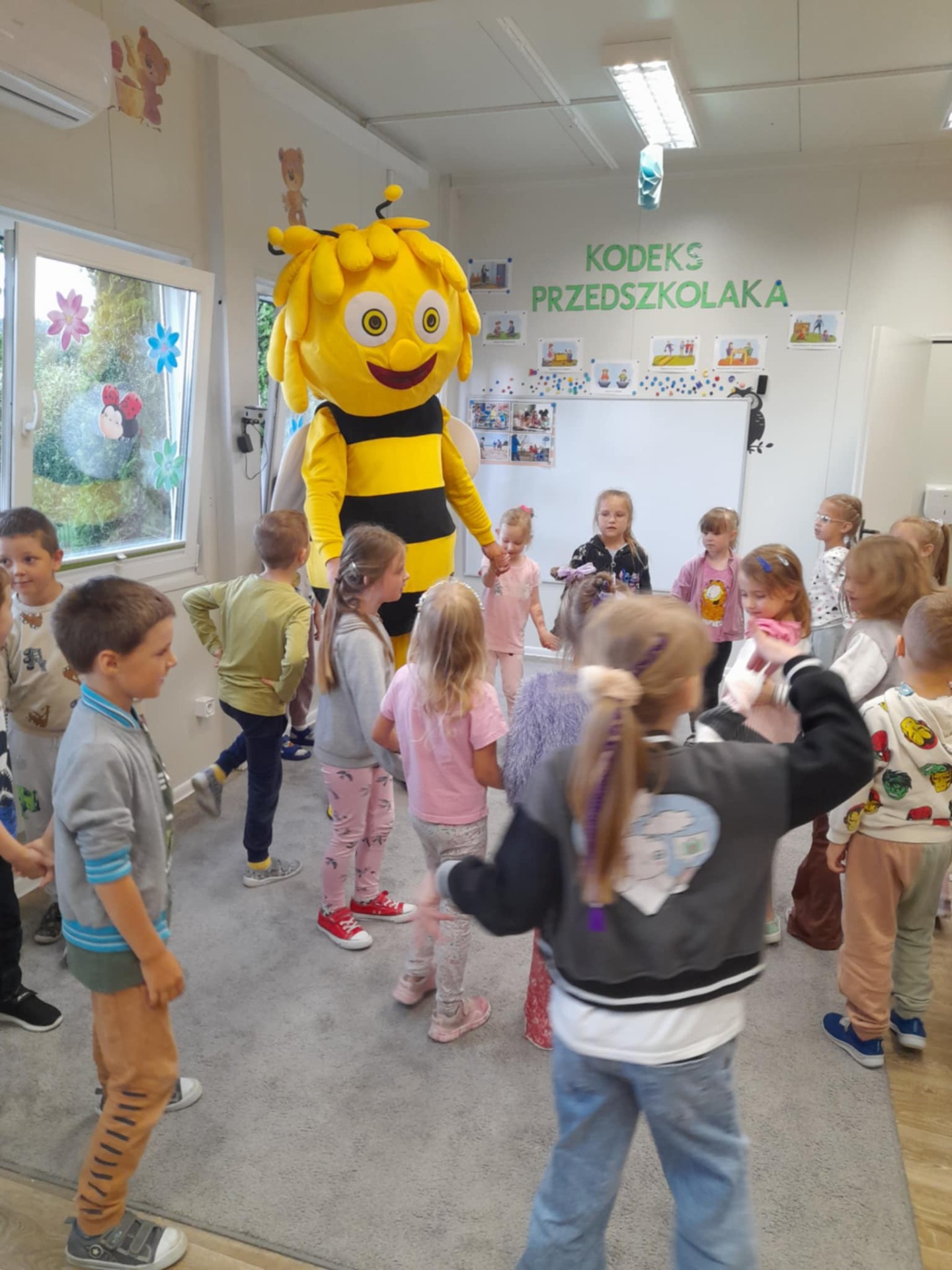 Nasze przedszkole odwiedził niezwykły gość – pan pszczelarz. Podczas pasjonującego spotkania opowiedział dzieciom o swojej pracy oraz zdradził wiele ciekawostek z życia ula. Przedszkolaki dowiedziały się, jak wygląda codzienne życie pszczół, jak powstaje miód, a także jak ważną rolę odgrywają pszczoły w przyrodzie. Dzieci miały również okazję samodzielnie wykonać świecę z wosku pszczelego, co sprawiło im ogromną radość. Na zakończenie wspólnie zatańczyły z Pszczółką Mają – było wesoło, kolorowo i miodowo!