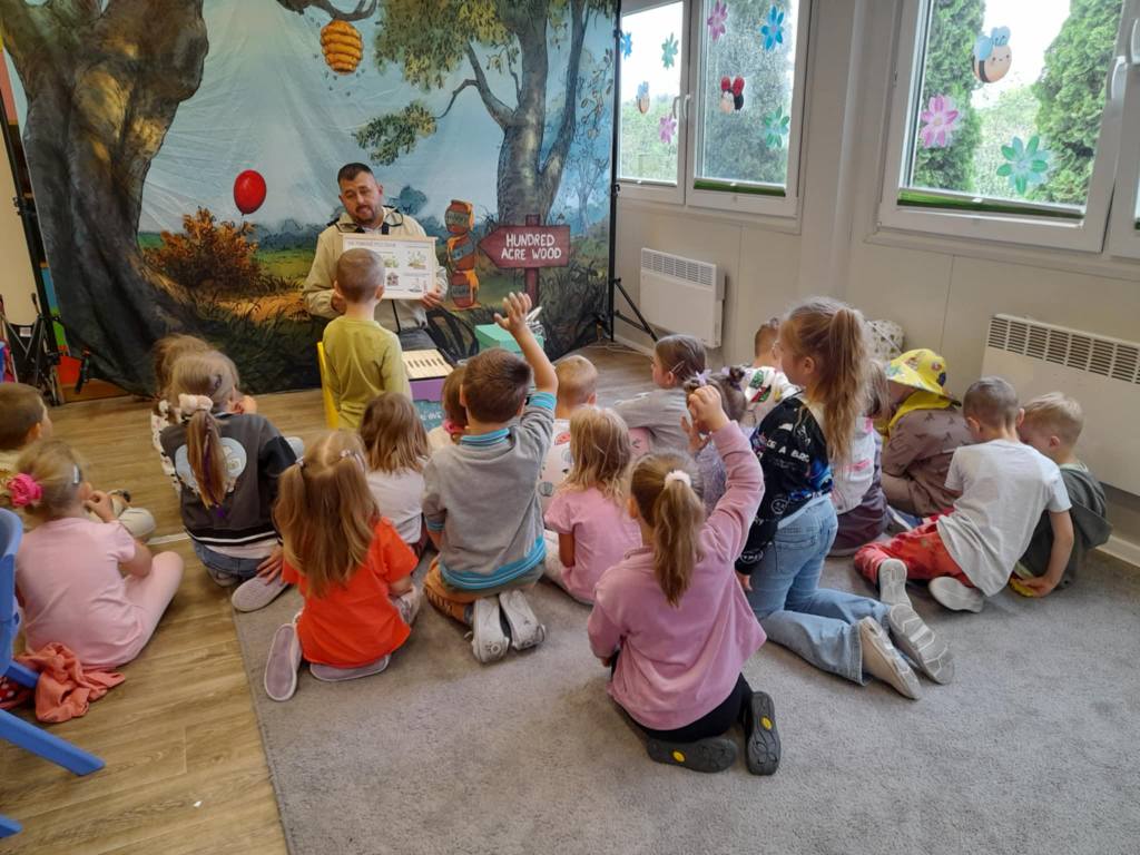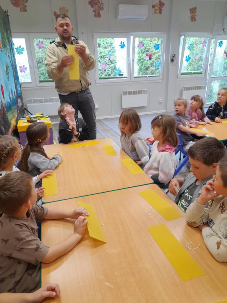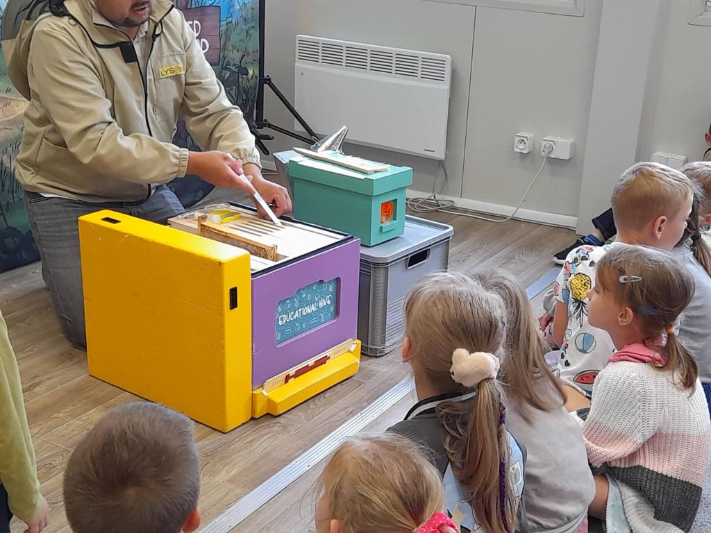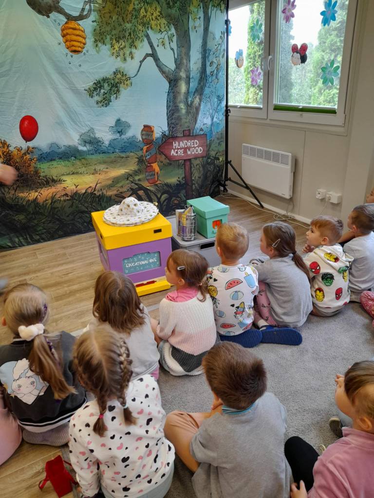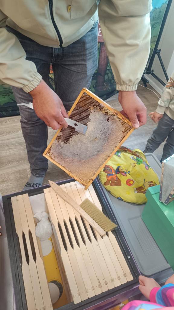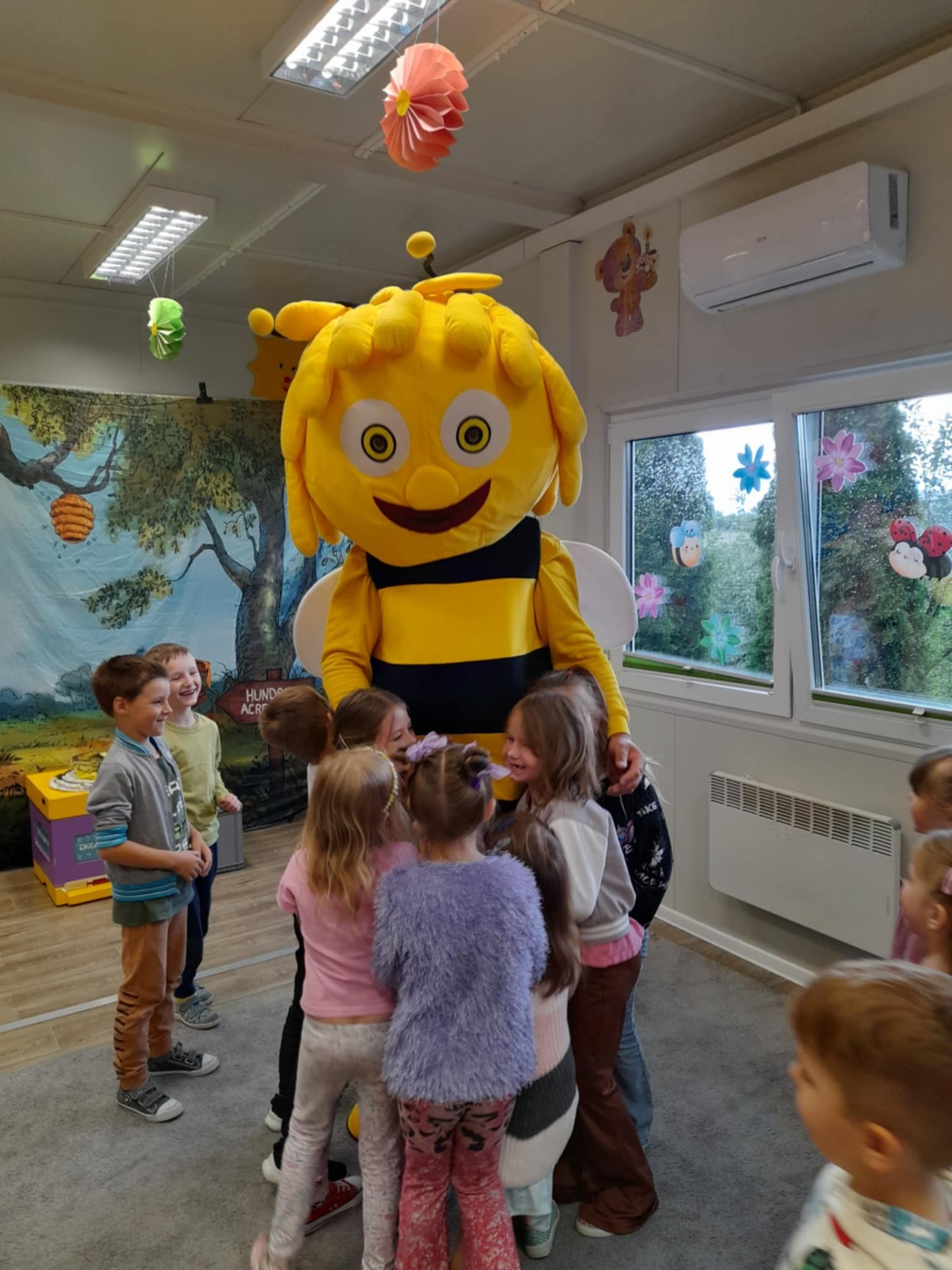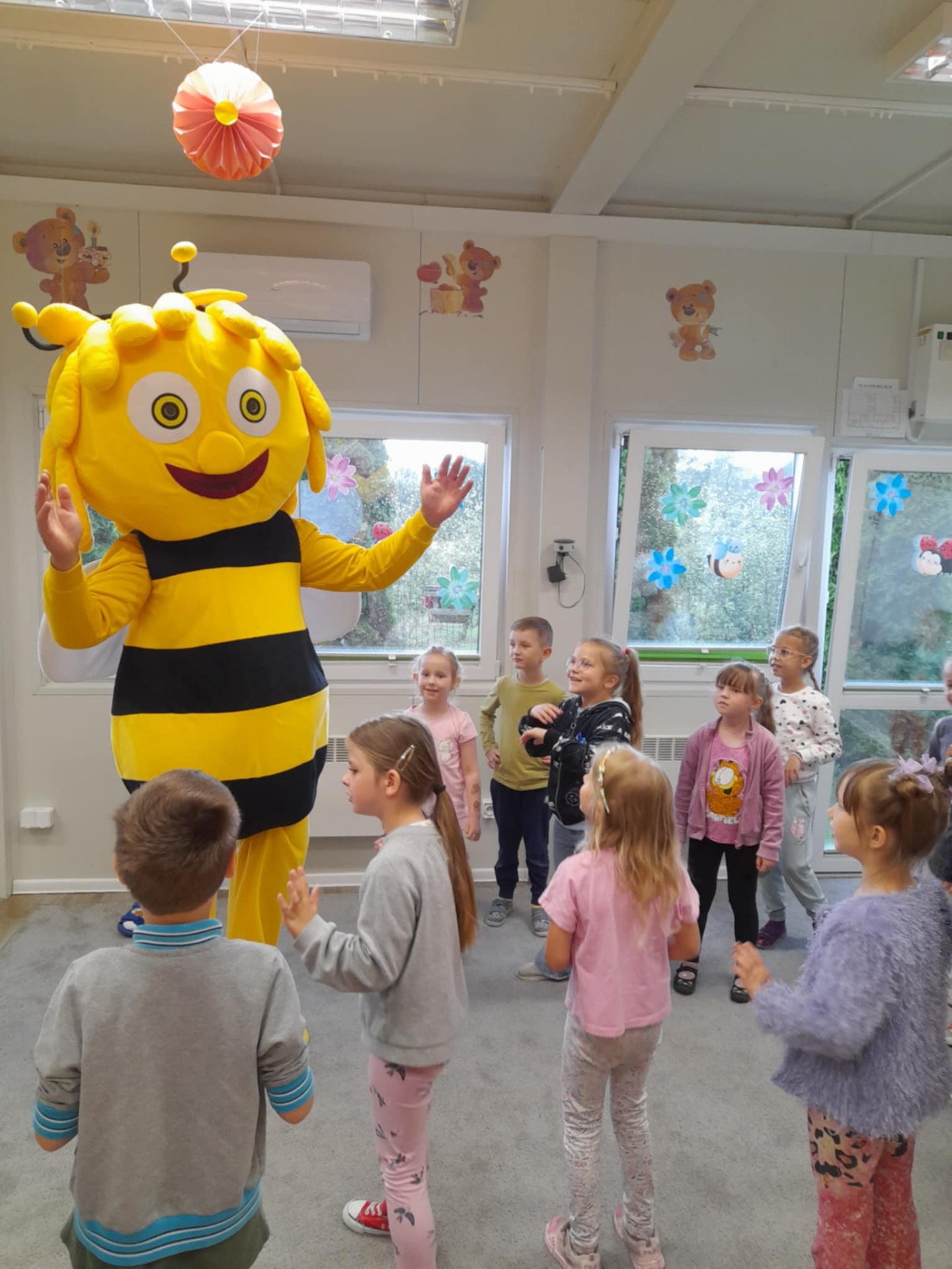 Nasze przedszkole odwiedził niezwykły gość – pan pszczelarz. Podczas pasjonującego spotkania opowiedział dzieciom o swojej pracy oraz zdradził wiele ciekawostek z życia ula. Przedszkolaki dowiedziały się, jak wygląda codzienne życie pszczół, jak powstaje miód, a także jak ważną rolę odgrywają pszczoły w przyrodzie. Dzieci miały również okazję samodzielnie wykonać świecę z wosku pszczelego, co sprawiło im ogromną radość. Na zakończenie wspólnie zatańczyły z Pszczółką Mają – było wesoło, kolorowo i miodowo!