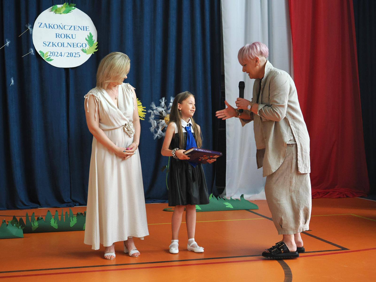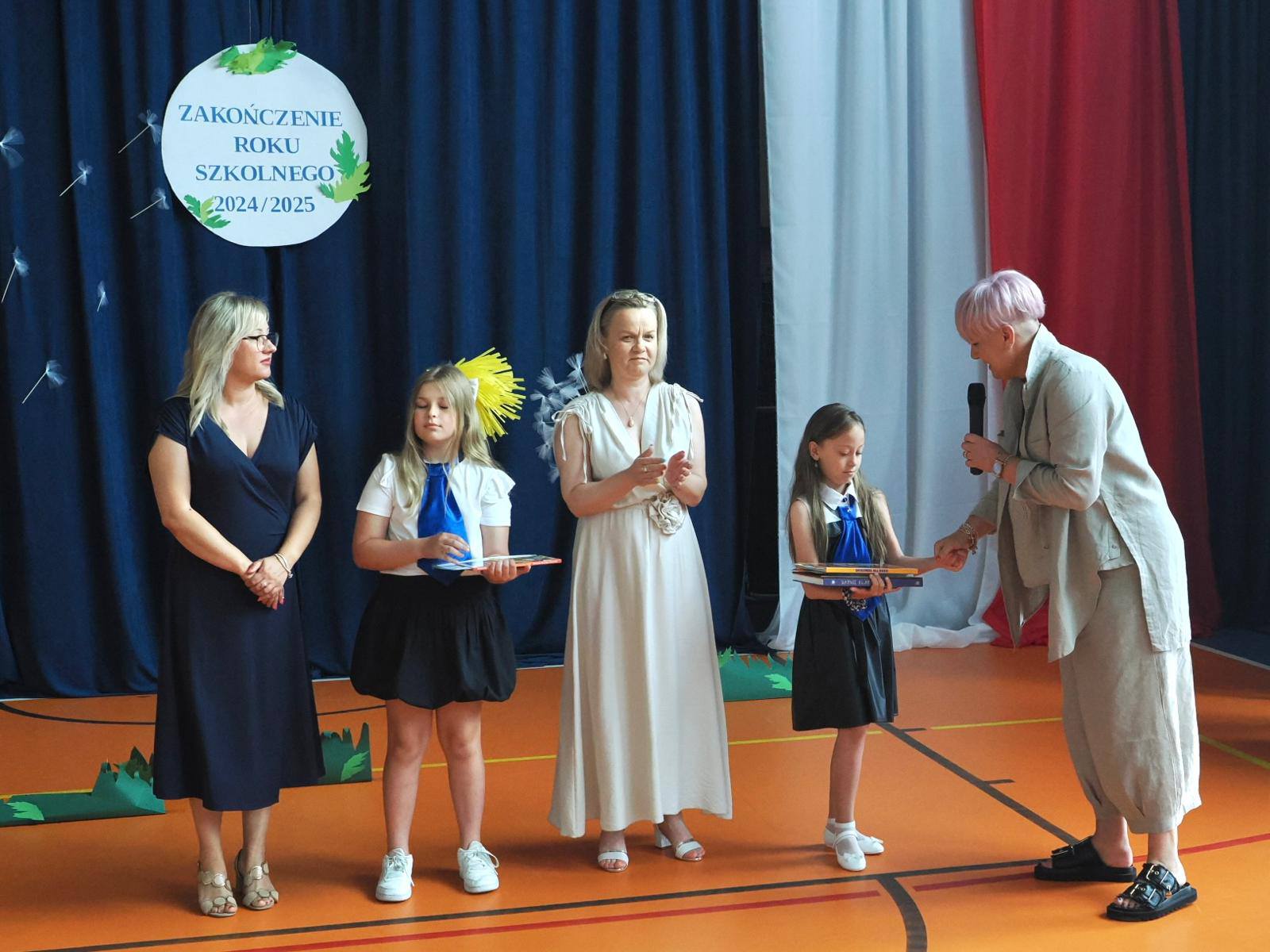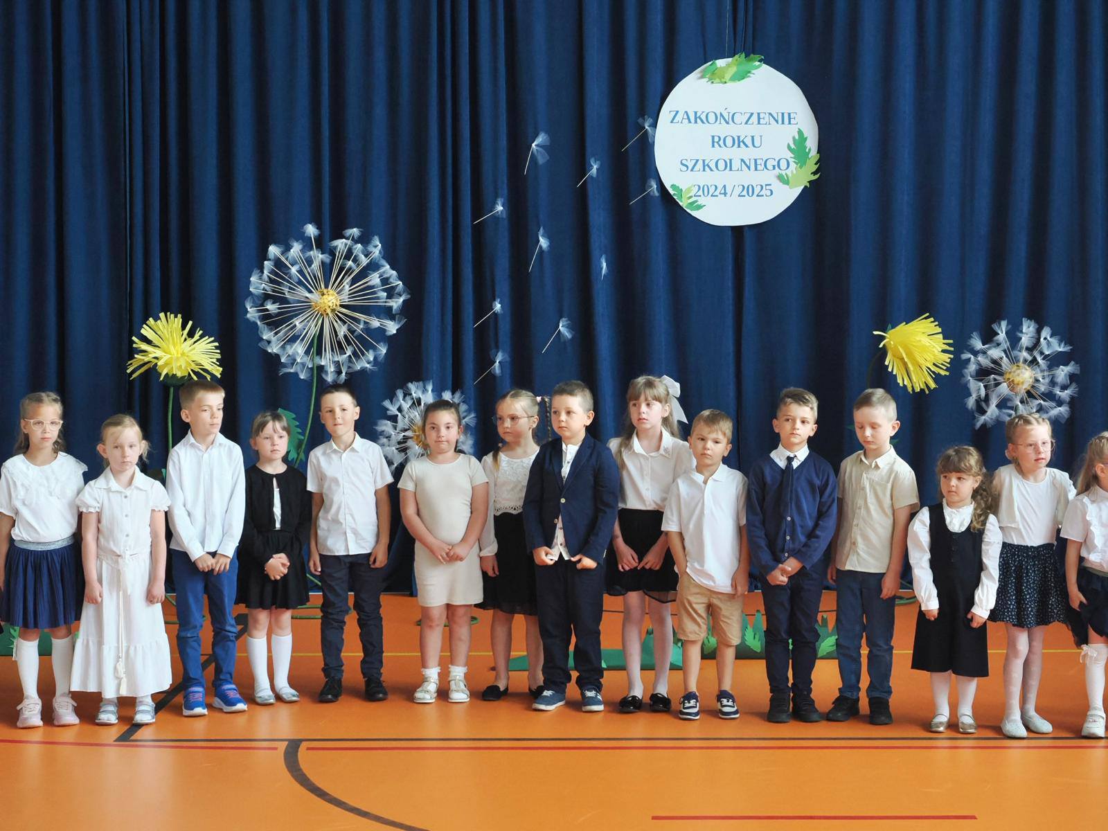 W letniej scenerii pełnej gigantycznych dmuchawców i mleczy, wśród dekoracji przypominających wakacyjną łąkę, odbyło się uroczyste zakończenie roku szkolnego dla uczniów klas 1–3 oraz przedszkolaków.