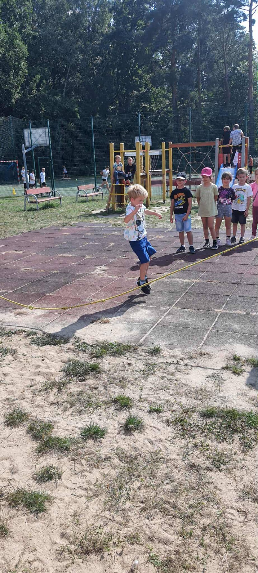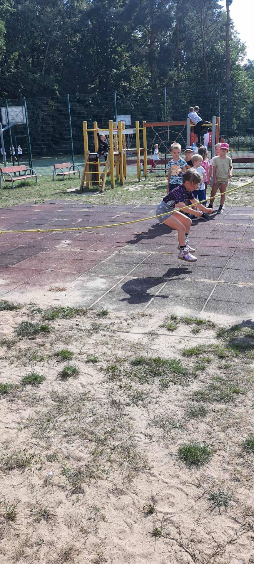 Podczas zajęć w świetlicy szkolnej wykorzystujemy piękna pogodę i dużo czasu spędzamy na świeżym powietrzu. Niezmiennie długa lina jest hitem naszych zabaw. Wystarczy tylko trochę wyobraźni i chęci i długi sznur zamienia się w najlepszą zabawkę😀