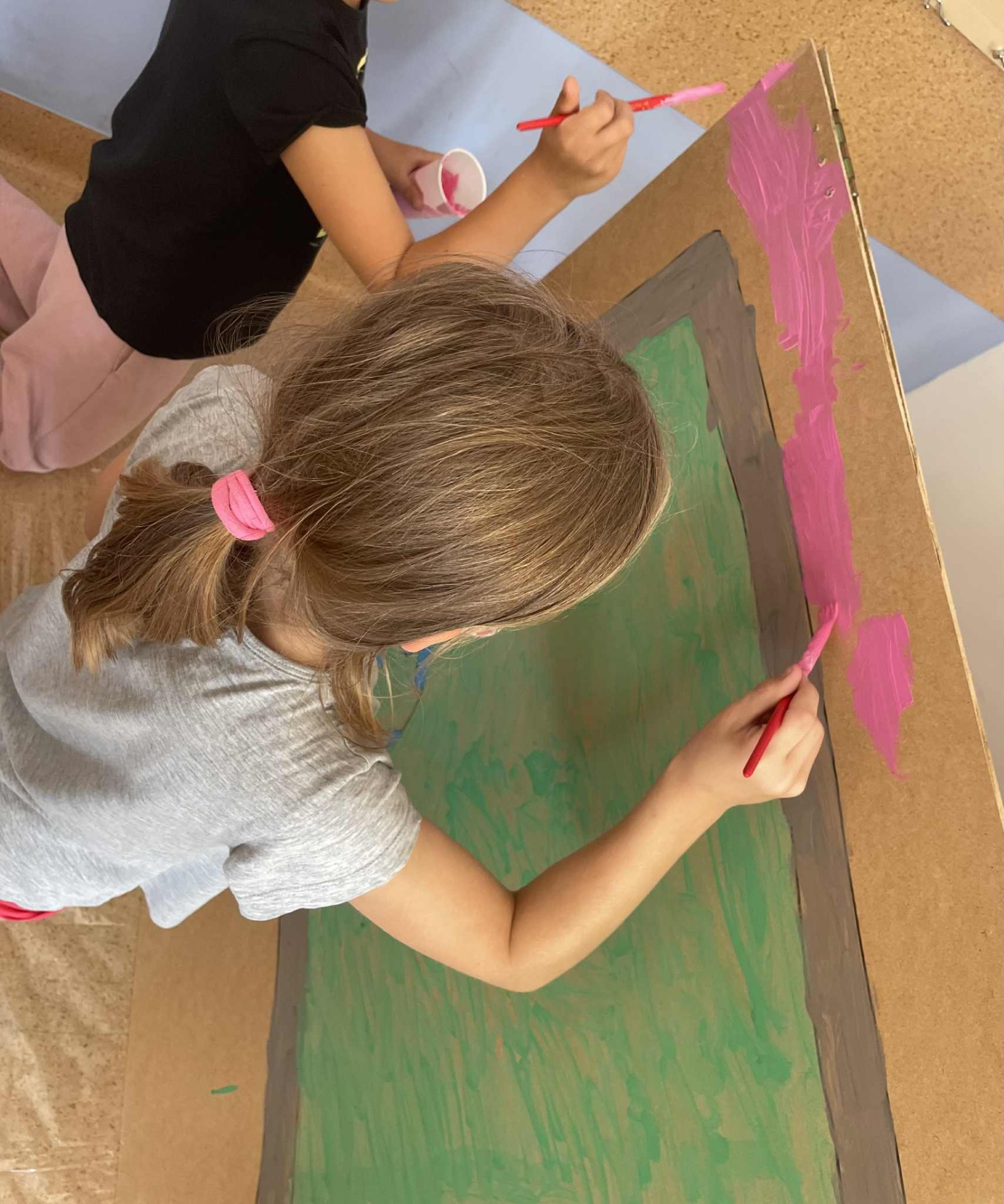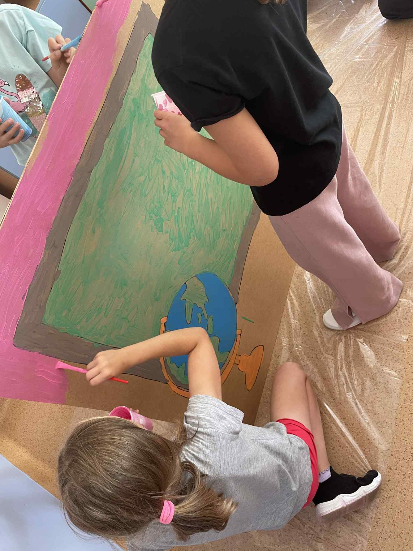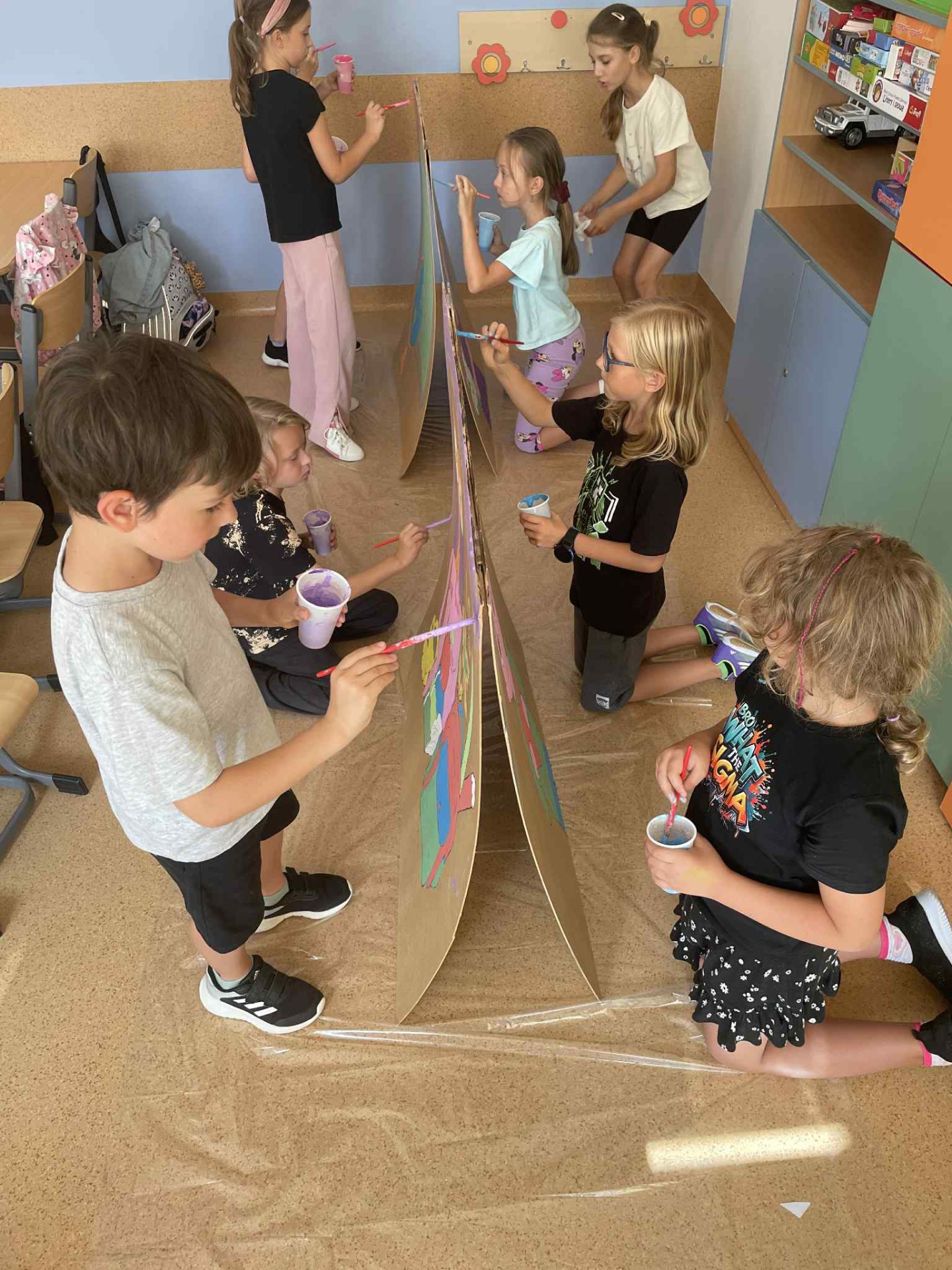Malowanie w tak dużej skali to coś więcej niż tylko praca plastyczna – to działanie zespołowe, które uczy współodpowiedzialności, planowania i współpracy przy jednym celu. Każdy pociągnięty pędzel staje się częścią większej całości, a efekt końcowy jest możliwy tylko dzięki wspólnemu wysiłkowi. To niezwykle cenne doświadczenie, szczególnie gdy wiemy, że dekoracje będą elementem naszych własnych prezentacji scenicznych – dzieci widzą, że to, co tworzą, ma realne zastosowanie i wpływa na odbiór ich występów.