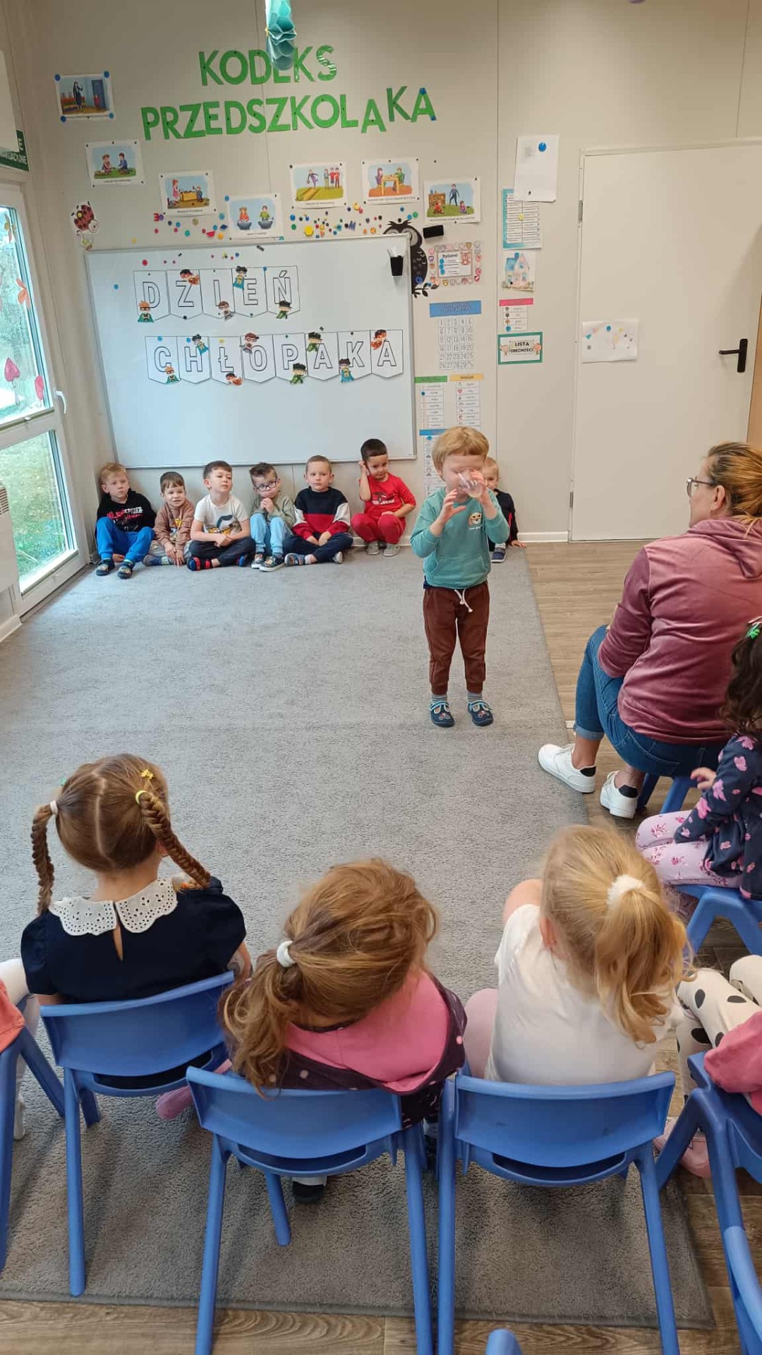 Ten tydzień był dla naszych przedszkolaków pełen radości i pięknych przeżyć. Świętowaliśmy Dzień Chłopaka w wesołej atmosferze — chłopcy zdawali test na prawdziwego dżentelmena ☺️! Na zakończenie wszystkie dzieci otrzymały drobne upominki, które sprawiły im wiele radości. Przedszkolaki poznawały warzywa i tajemnice ogrodu. Dzięki przetworom przyniesionym przez rodziców rozmawialiśmy o tym, na czym polega wekowanie — co można zawekować i dlaczego to dobry sposób przechowywania żywności. Nie zabrakło również działań plastycznych — zwiędłe warzywa, zamiast trafić do kosza, wykorzystaliśmy do stemplowania i tworzenia kolorowych, jesiennych prac. Kulminacyjnym punktem tygodnia był teatrzyk „Na straganie” Jana Brzechwy 🎭. Najpierw dzieci obejrzały przedstawienie, a następnie same wcieliły się w role warzywnych bohaterów, inscenizując wiersz i pokazując swoje aktorskie talenty. Było twórczo, zabawnie i z dużą dawką dziecięcej wyobraźni. ☺️