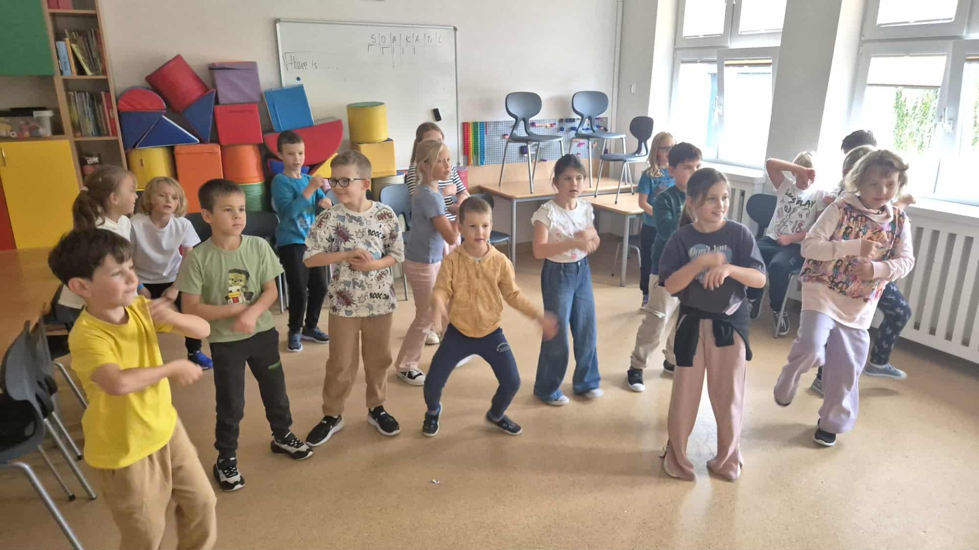 Dziś w świetlicy było dużo ruchu. Zaczęliśmy od zabaw przy muzyce (wszystkie choreografie wychodziły nam fantastycznie) a później graliśmy w naszą ulubioną grę "oczko"👀
