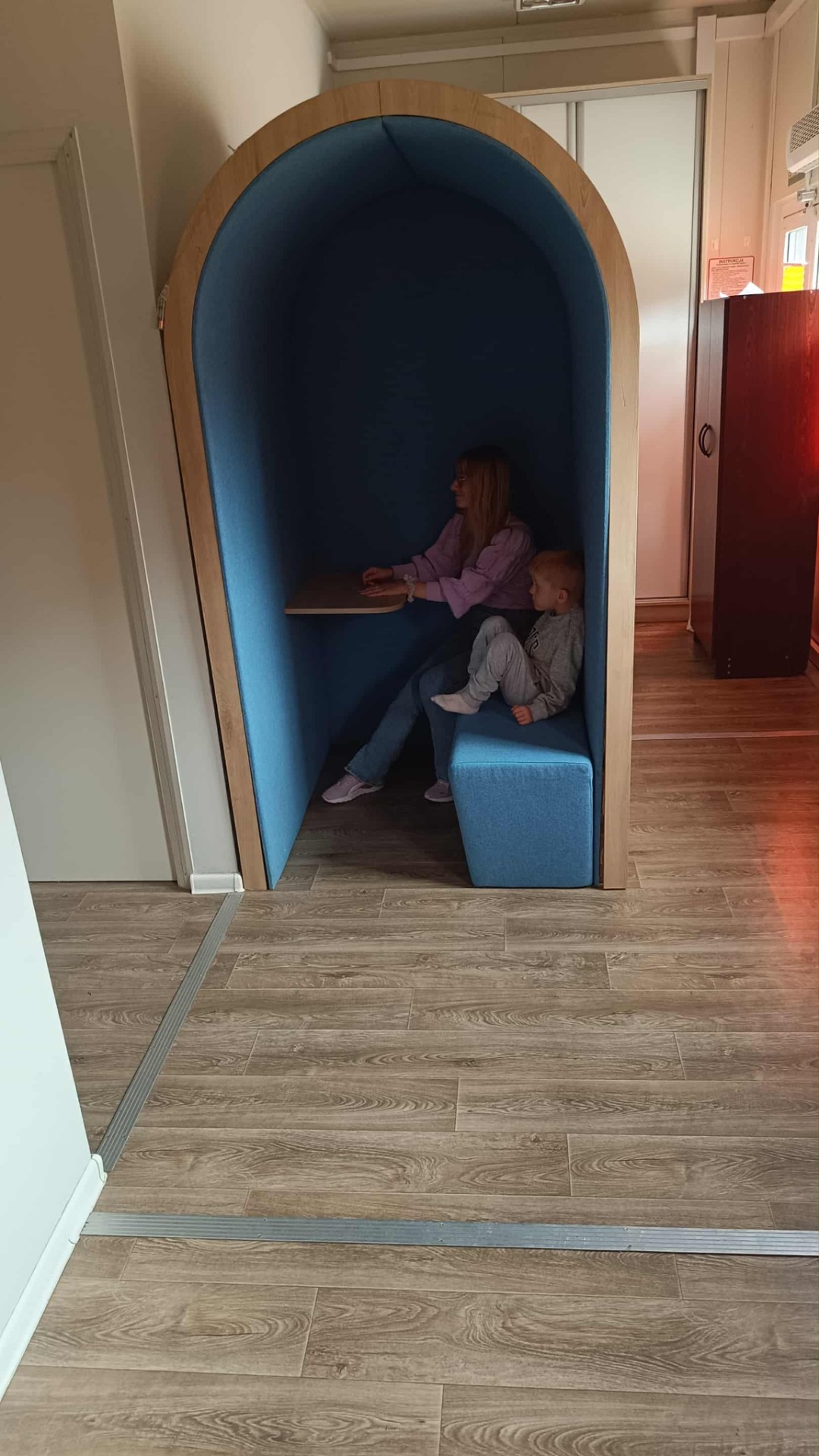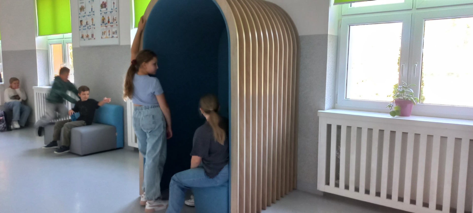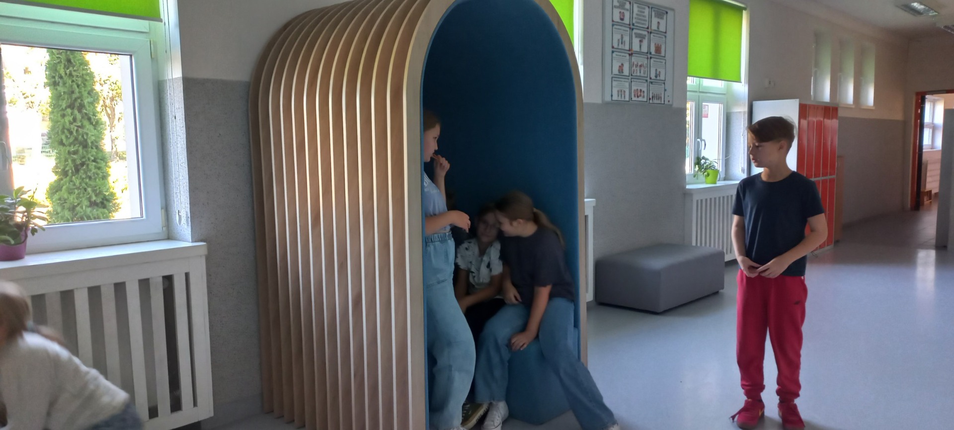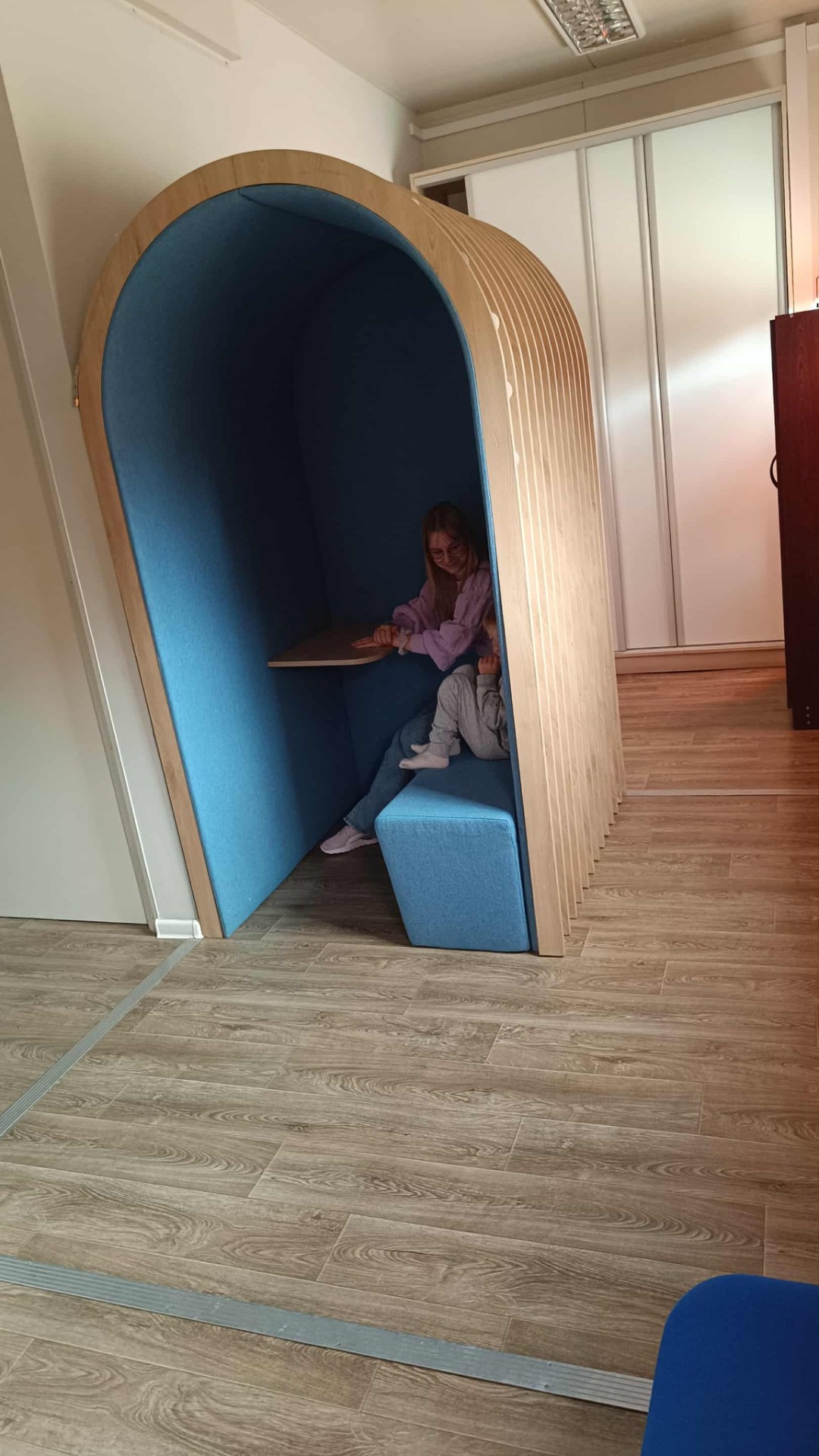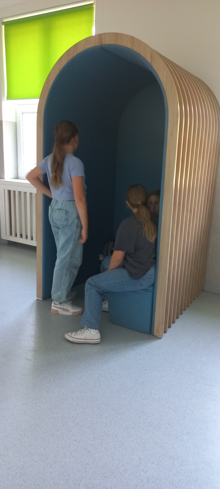 🎧 Nowość w naszej szkole! 🏫💬 Z radością informujemy, że w naszej szkole oraz w oddziale przedszkolnym pojawiły się budki wyciszające! 💙 To wyjątkowe miejsca, w których uczniowie i przedszkolaki mogą na chwilę się wyciszyć, odpocząć od szkolnego zgiełku, skupić się lub po prostu pobyć w spokoju. 🧘‍♀️📖 Budki pomagają tworzyć przyjazną przestrzeń sprzyjającą koncentracji, relaksowi i dobremu samopoczuciu. Cieszymy się, że możemy wspierać naszych uczniów nie tylko w nauce, ale także w dbaniu o komfort psychiczny. 💫